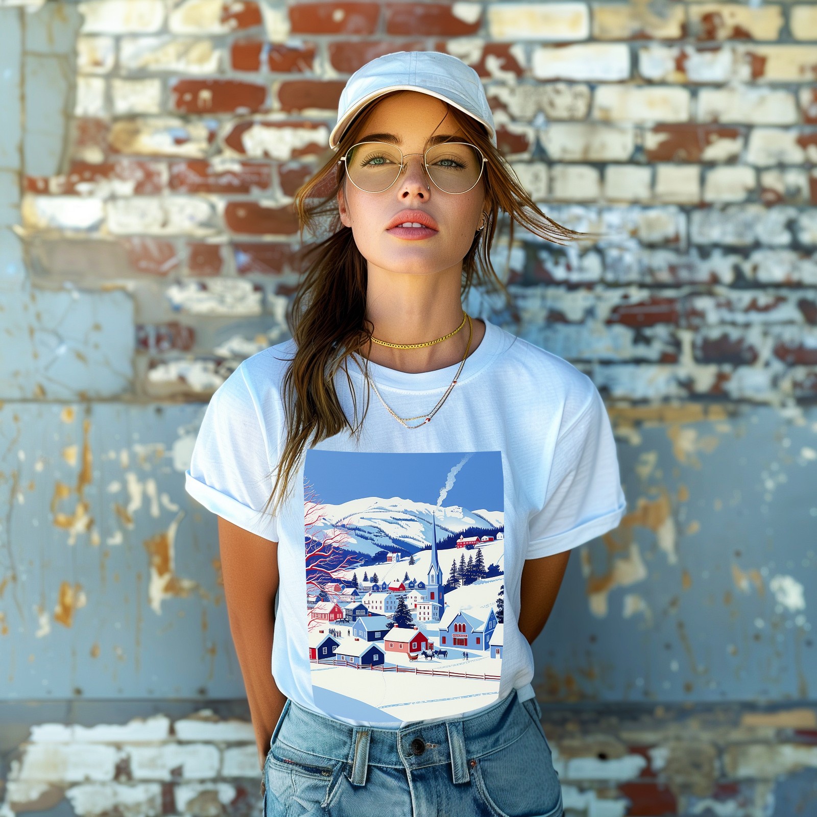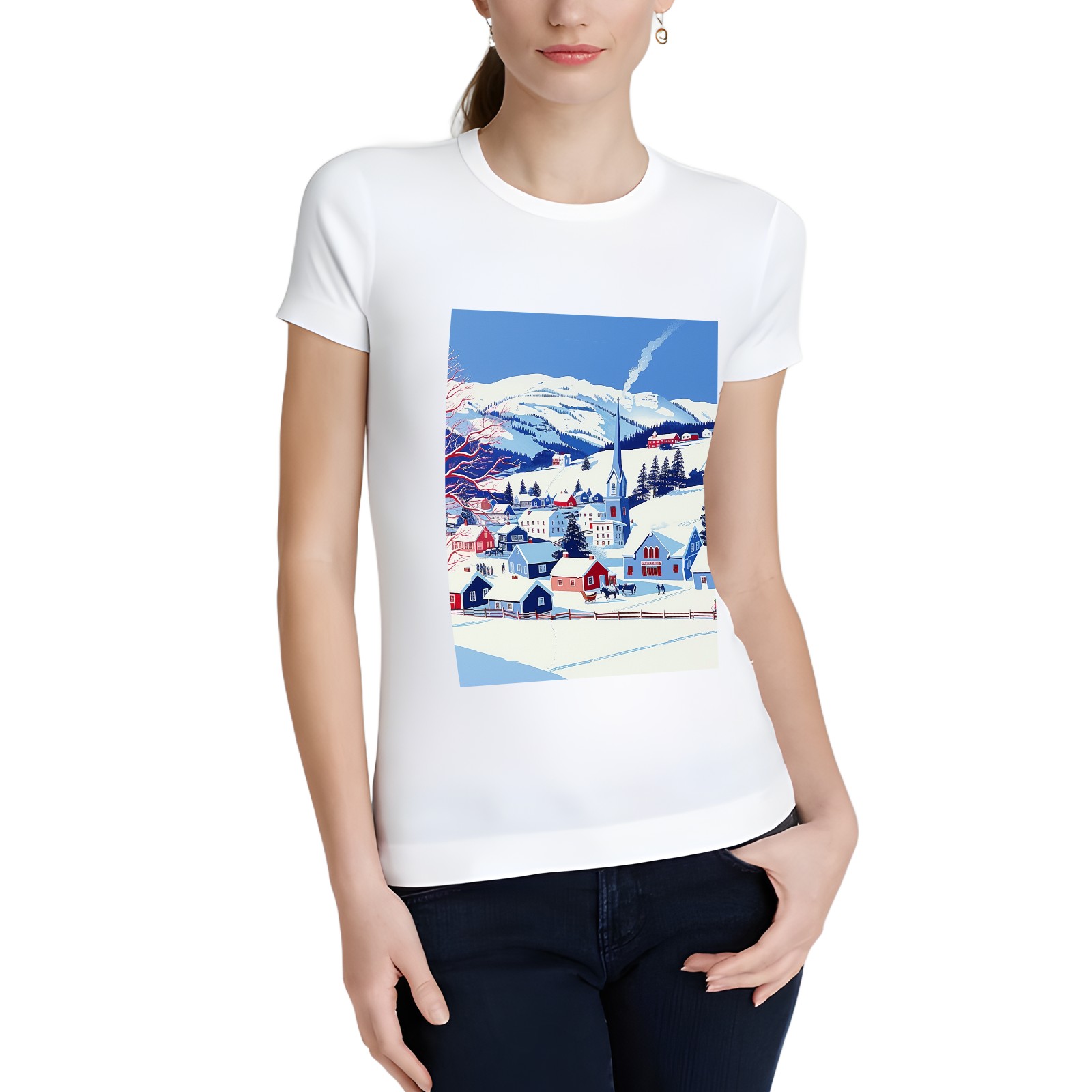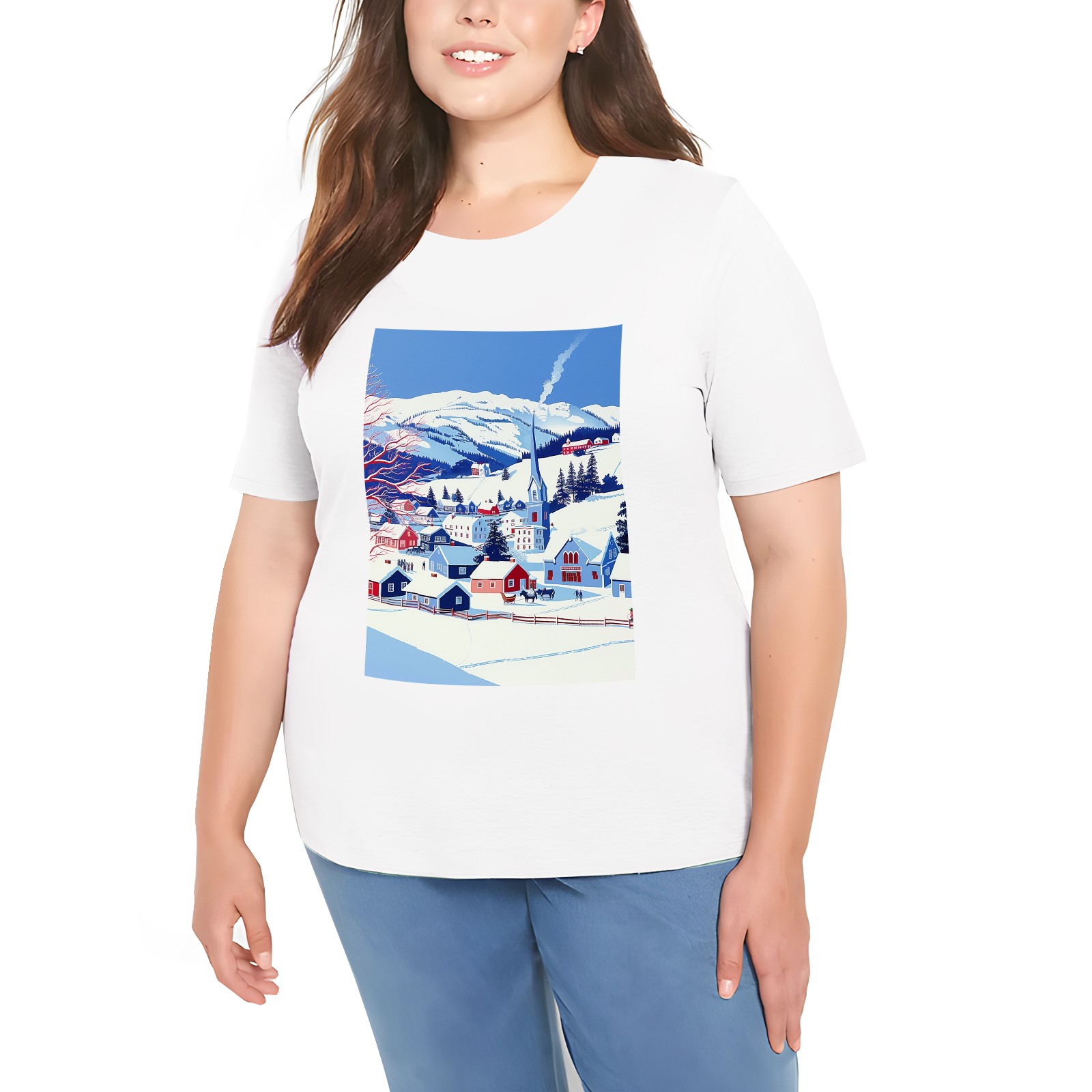 Basic Oversize Tees For WomenSnow Mountain Loose Boyfriend Shirts Casual Blouse round neck