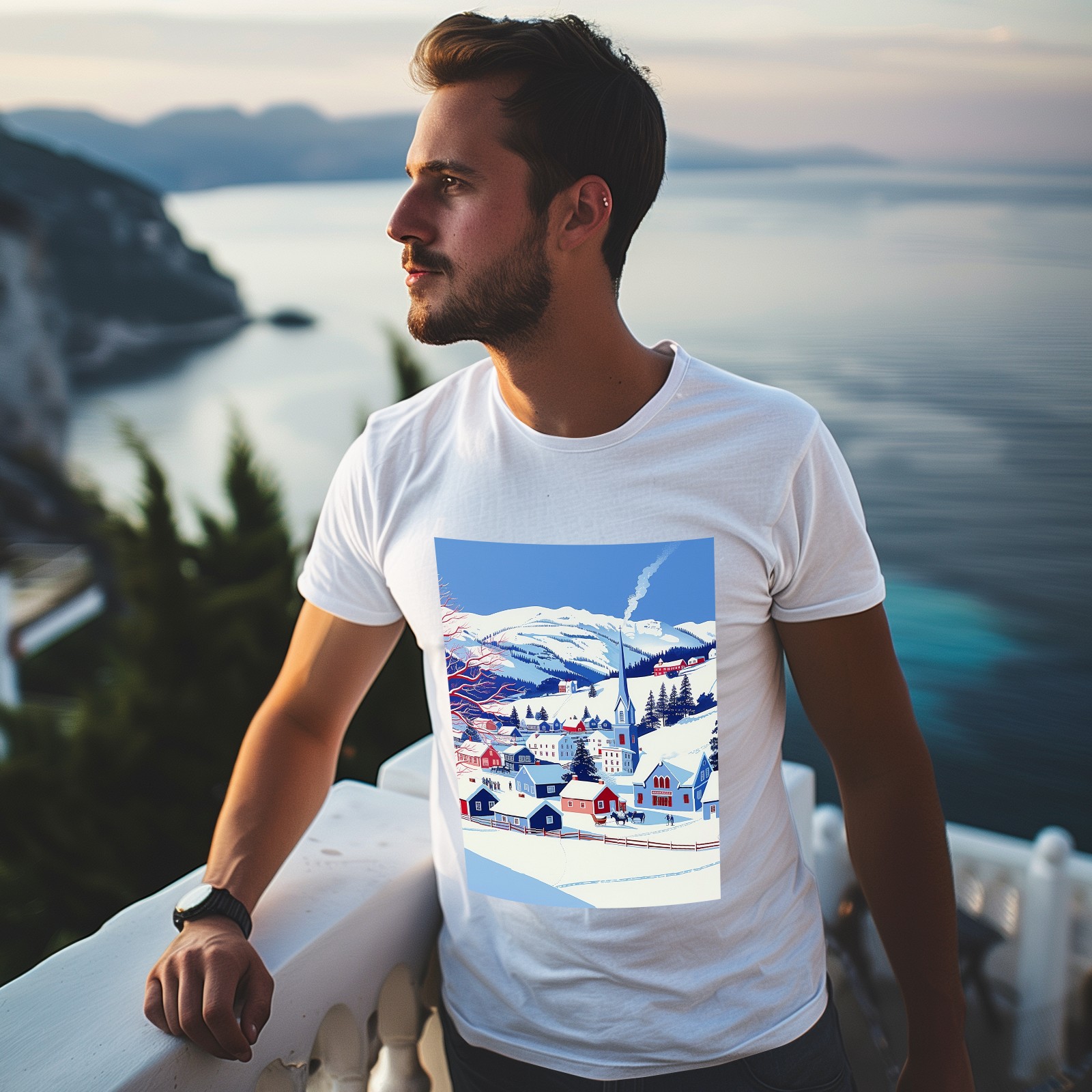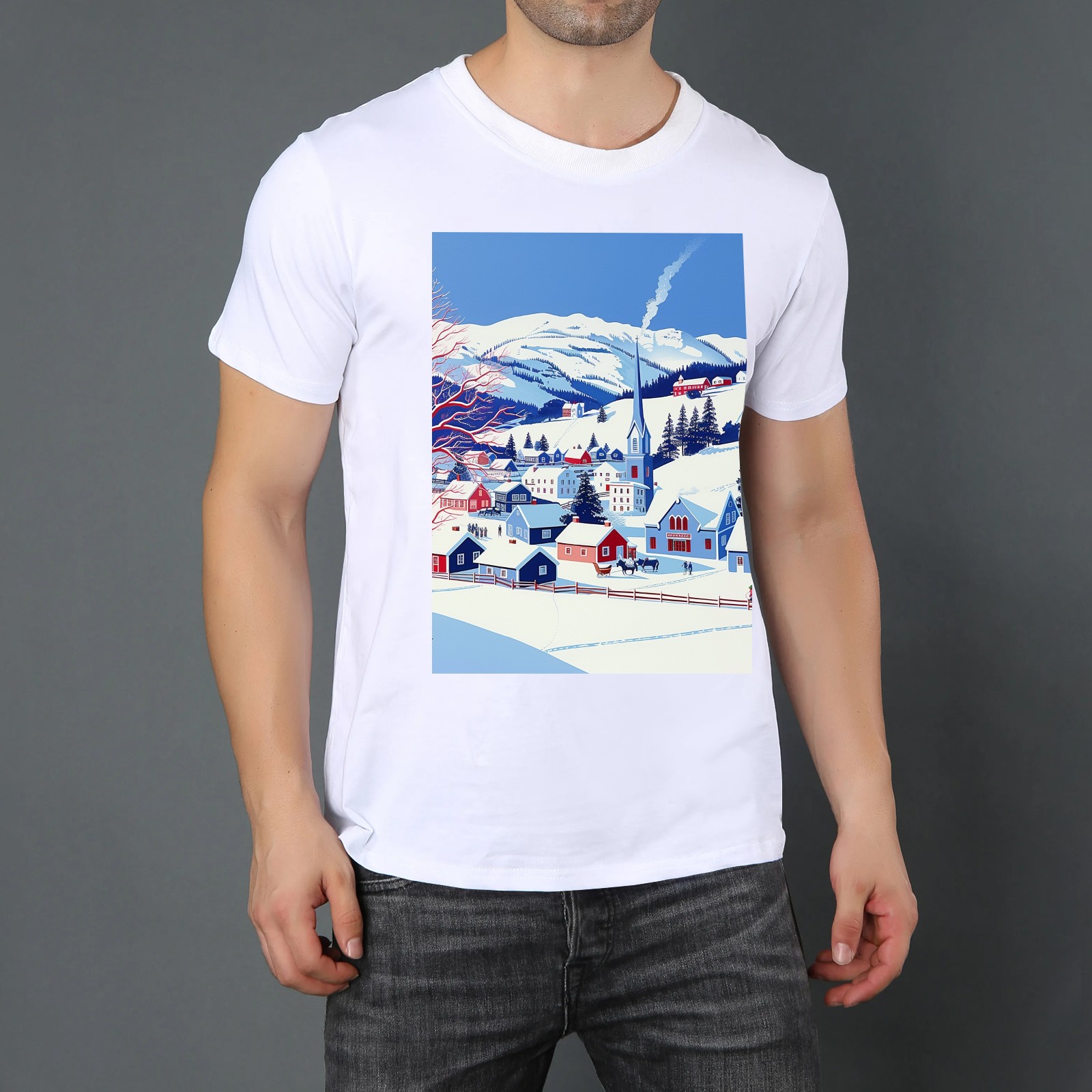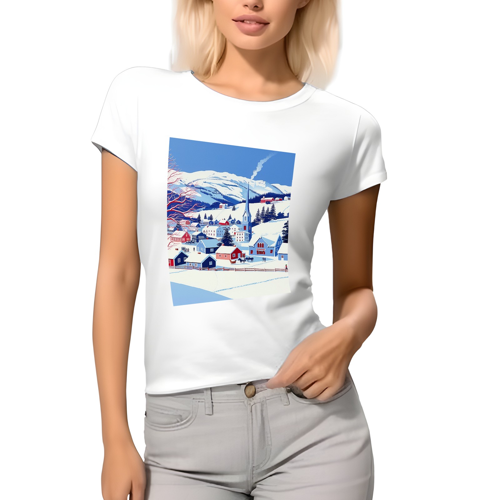 Basic Oversize Tees For WomenSnow Mountain Loose Boyfriend Shirts Casual Blouse round neck