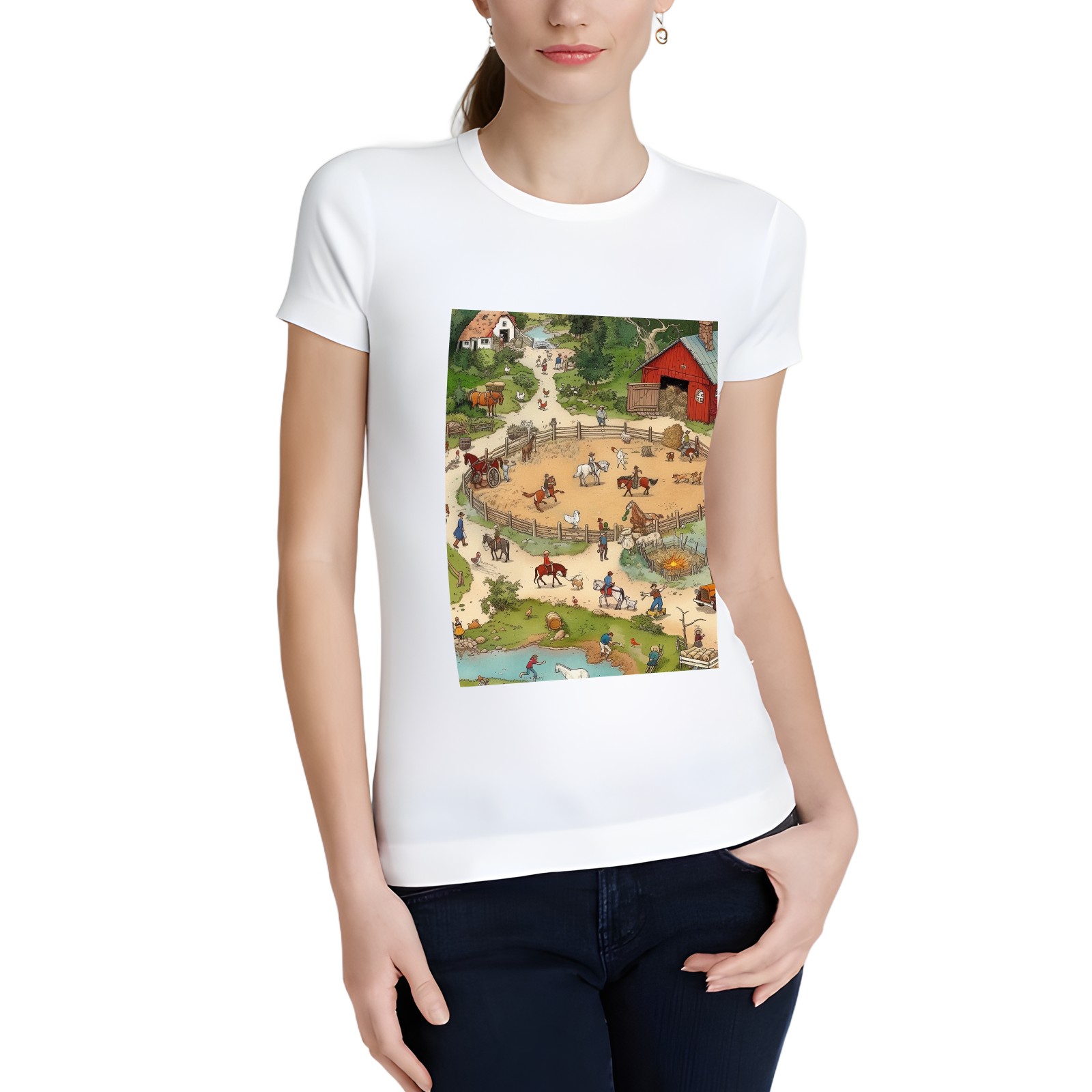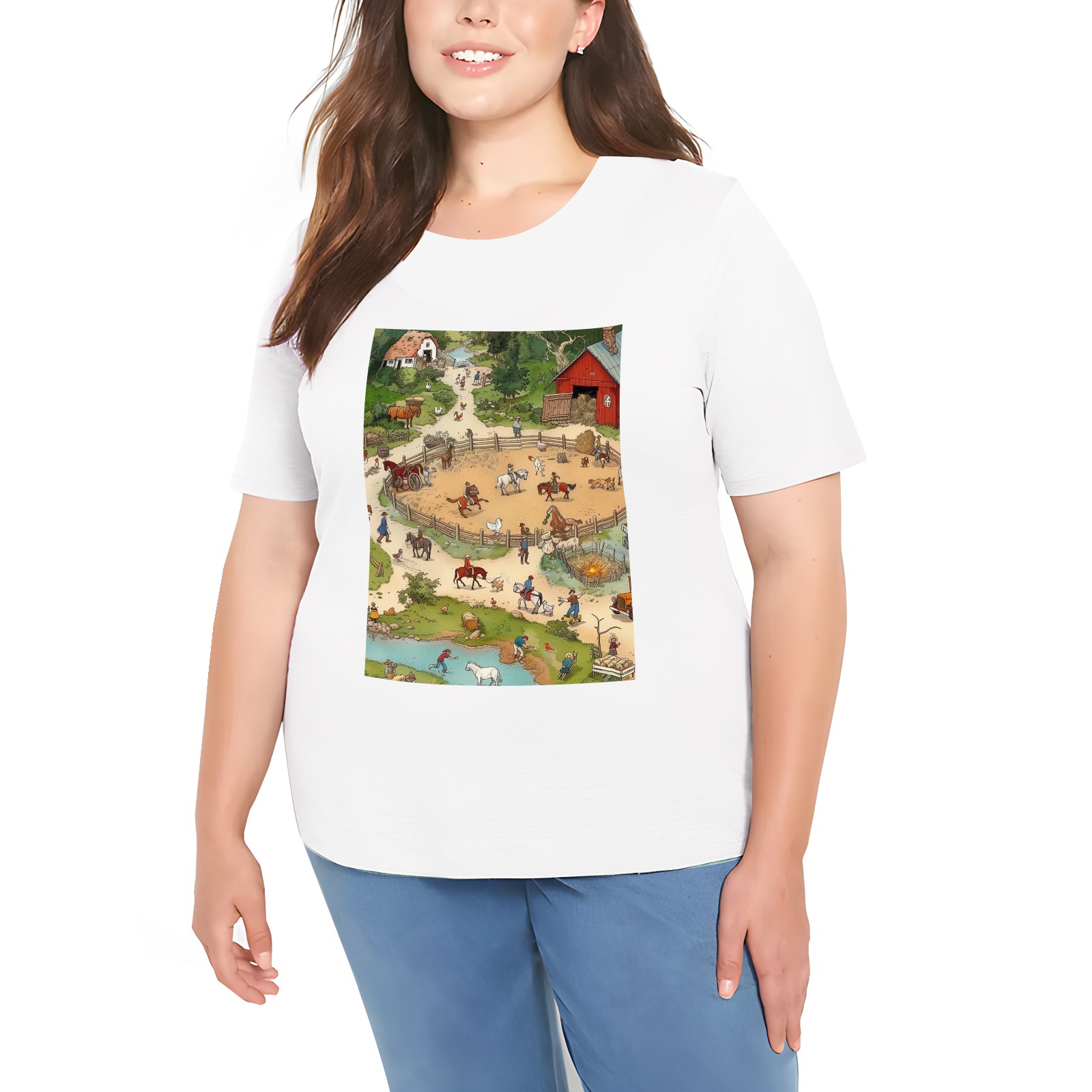 Basic Oversize Tees For WomenHorse Loose Boyfriend Shirts Casual Blouse round neck