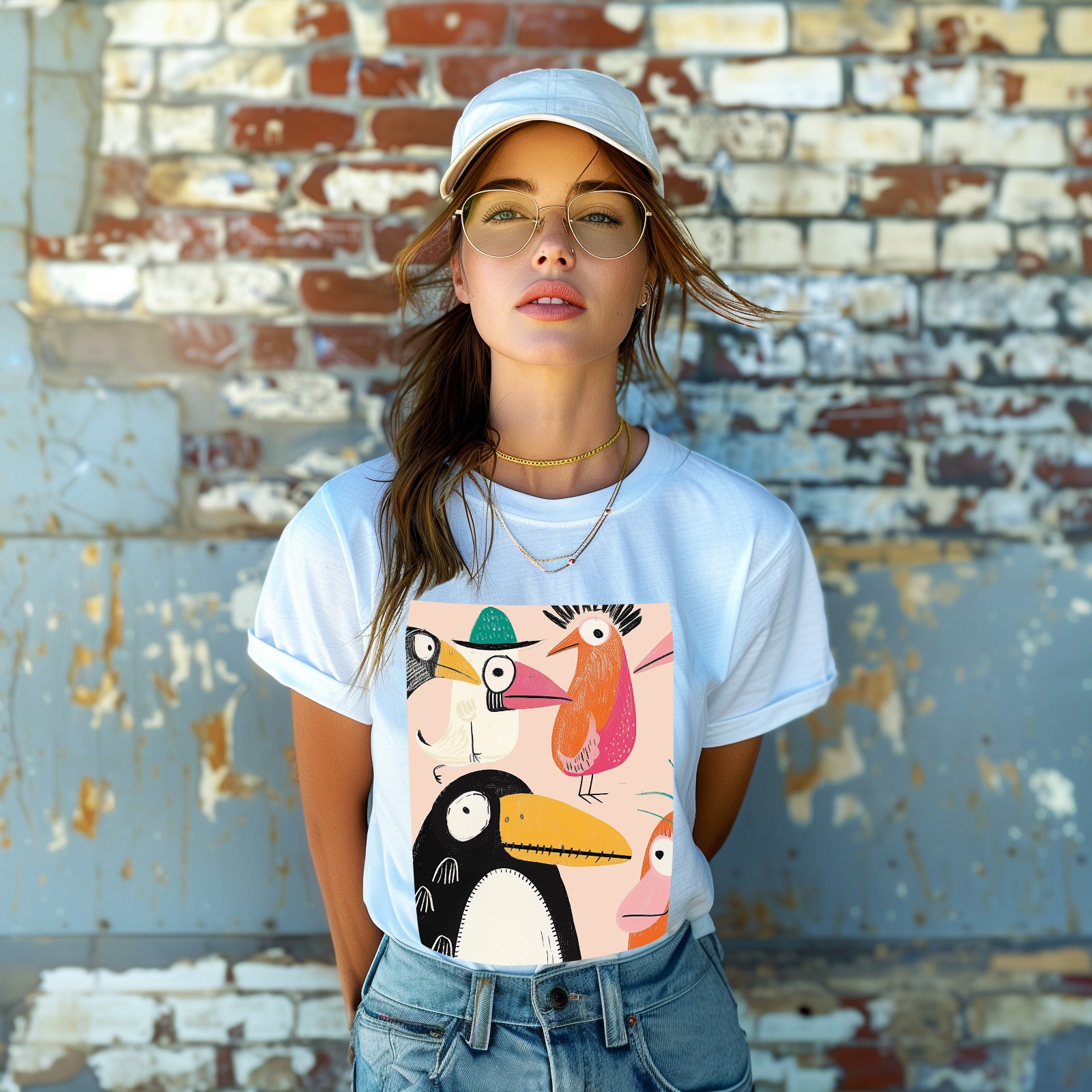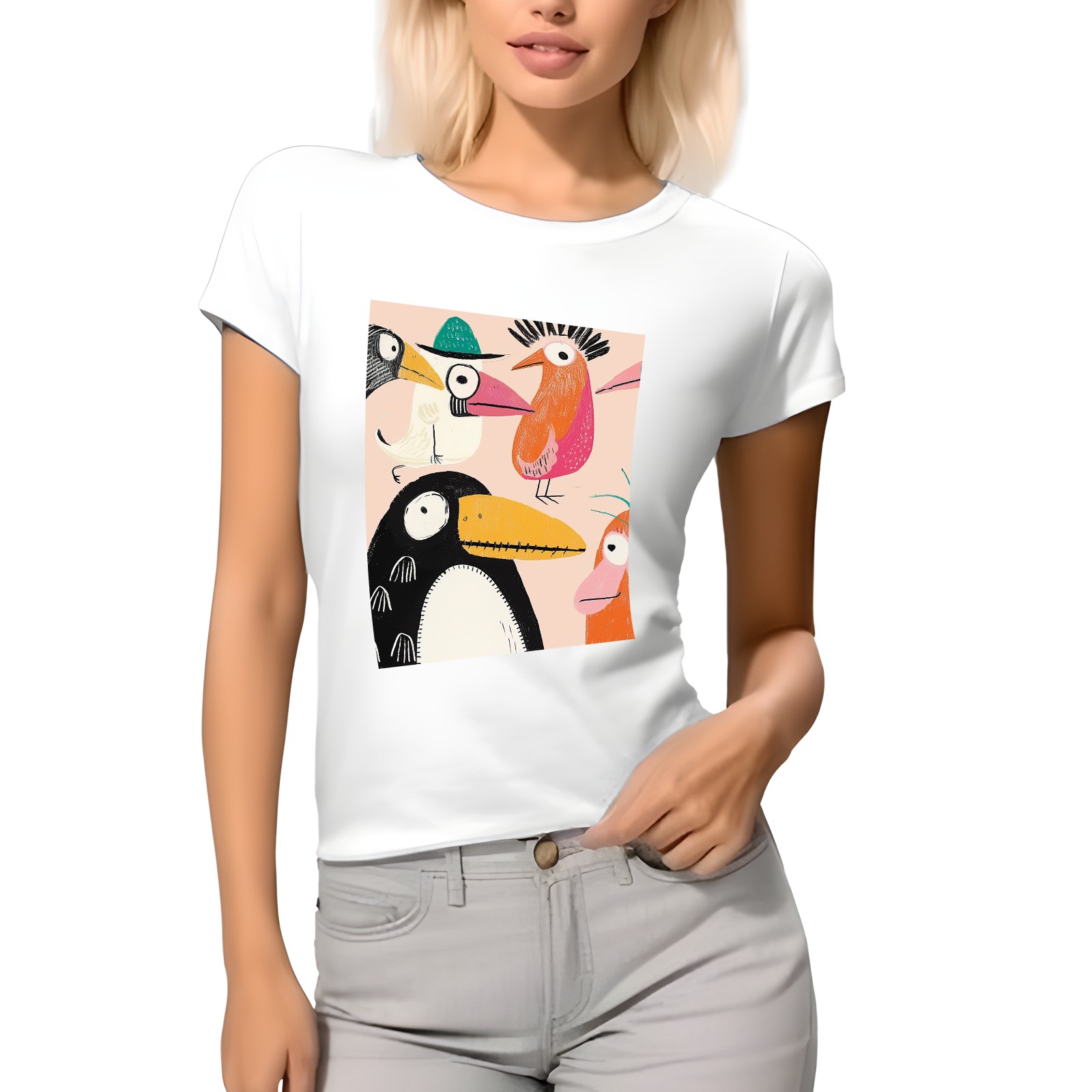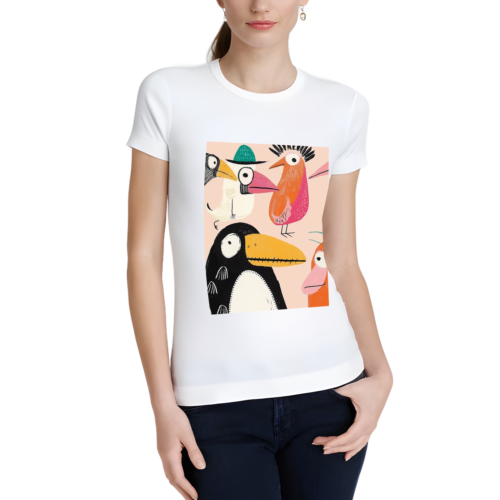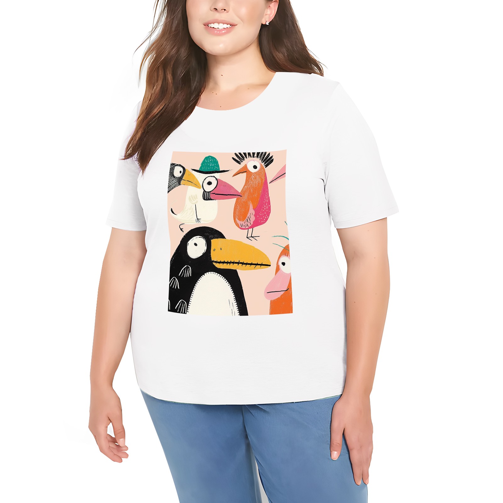 Basic Oversize Tees For WomenChicken Loose Boyfriend Shirts Casual Blouse round neck
