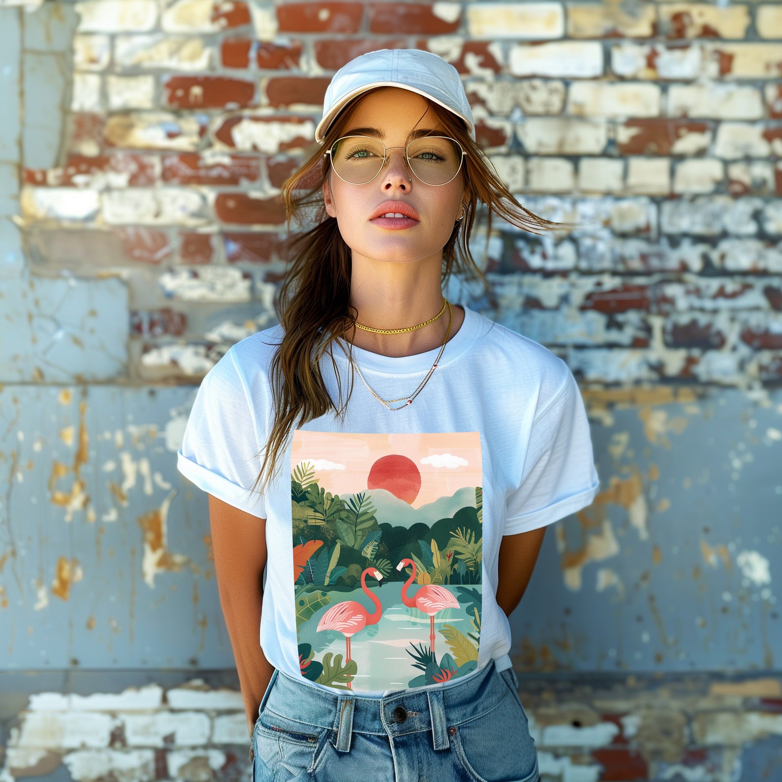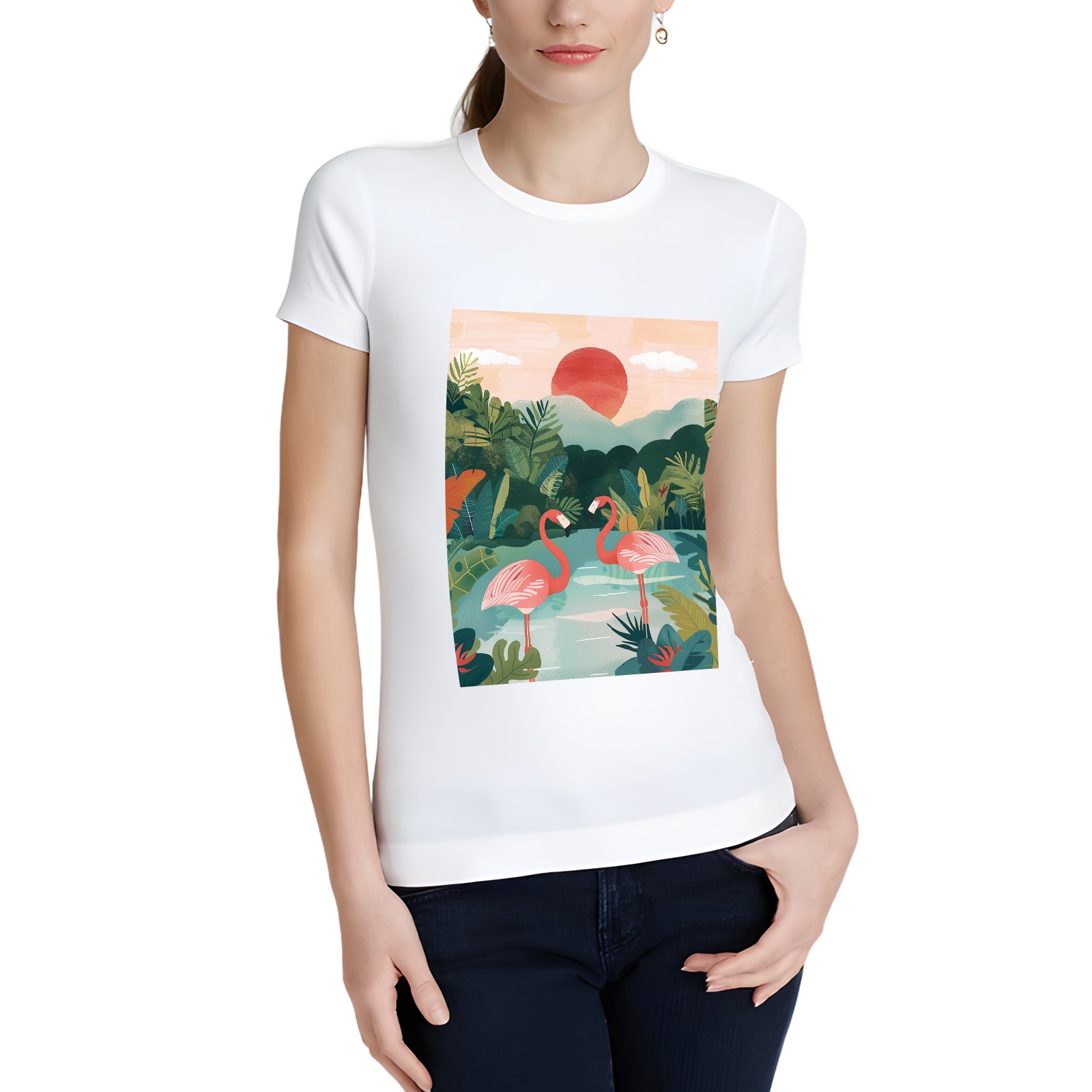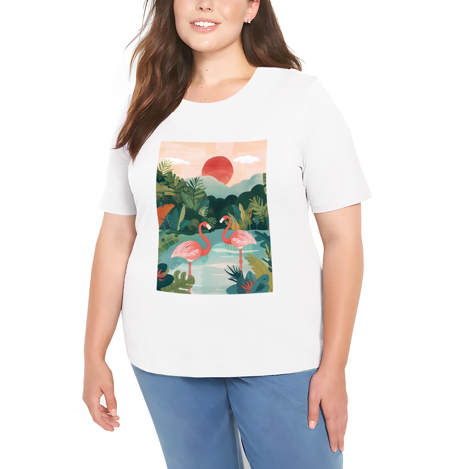 Basic Oversize Tees For WomenCrane Loose Boyfriend Shirts Casual Blouse round neck