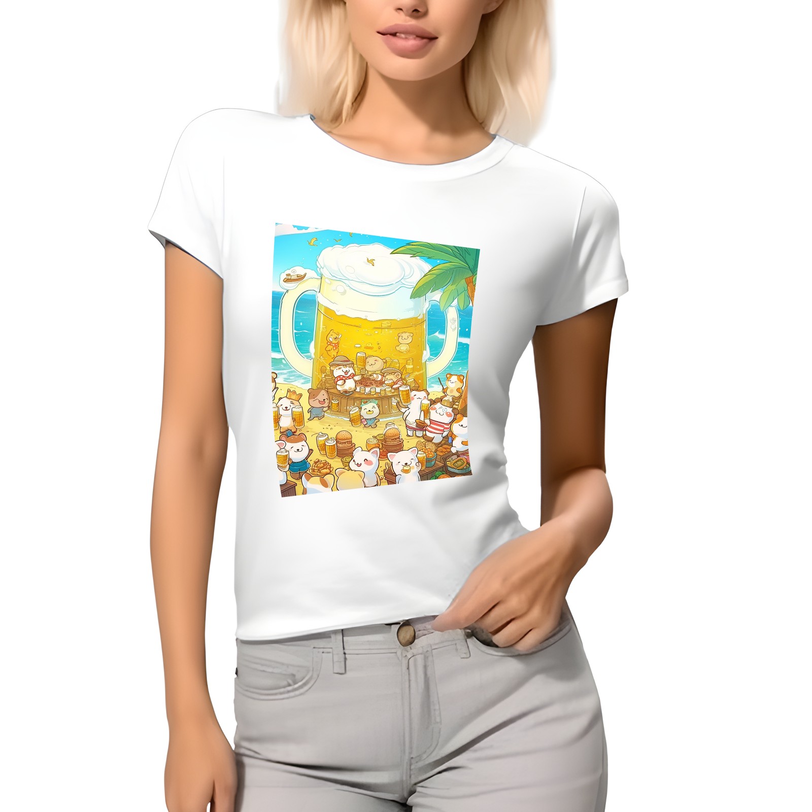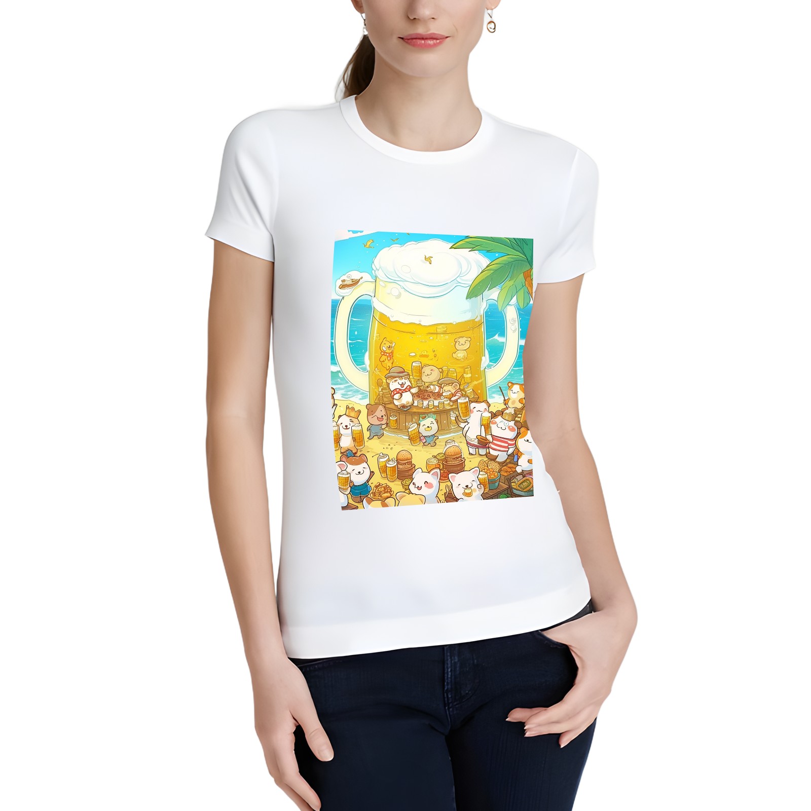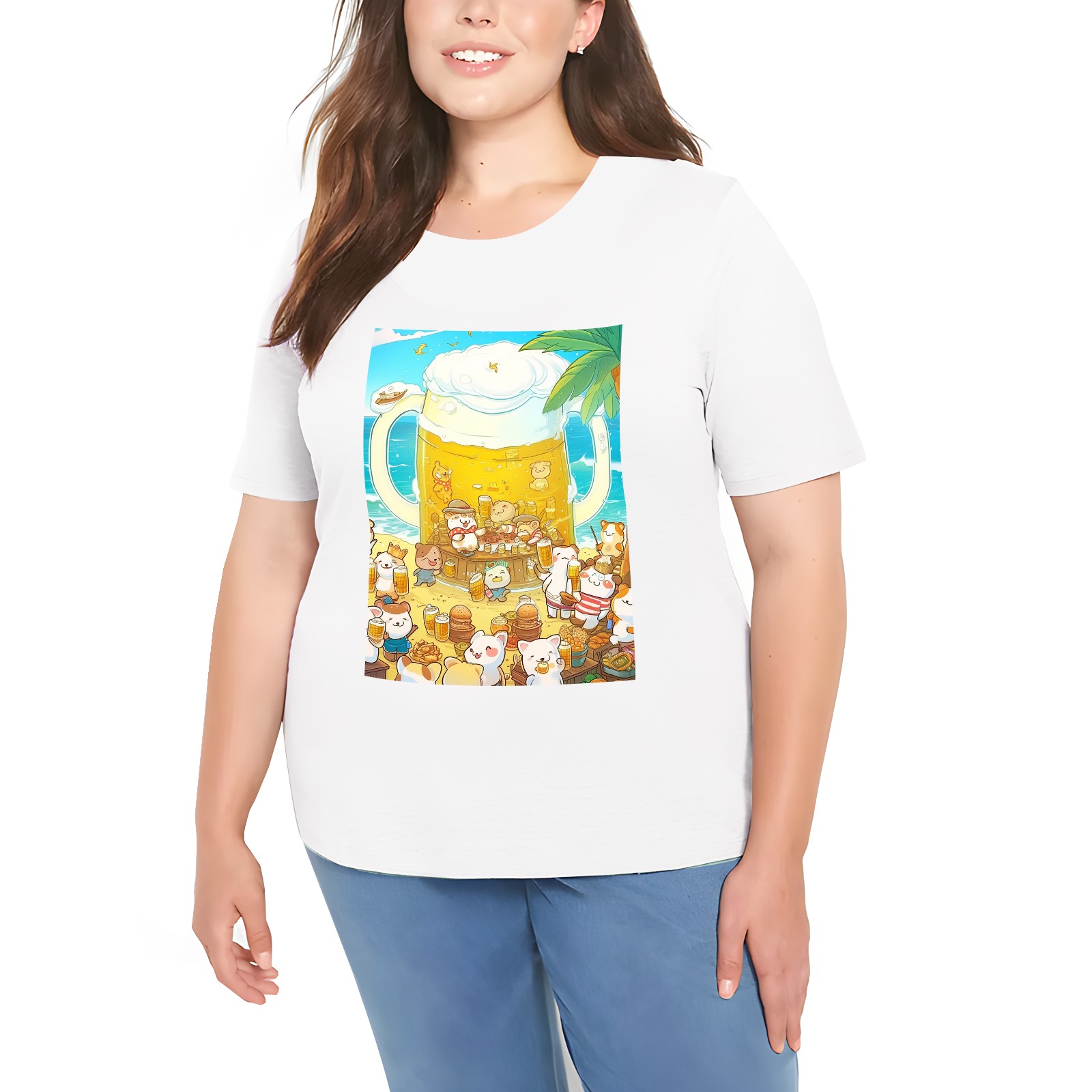 Basic Oversize Tees For WomenBeer Loose Boyfriend Shirts Casual Blouse round neck