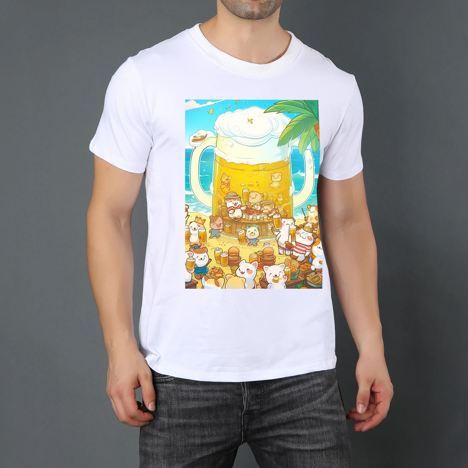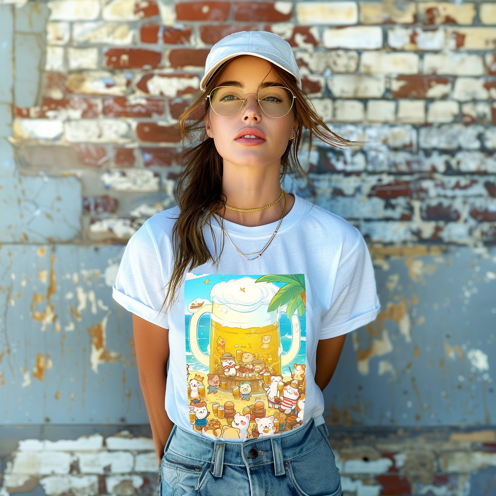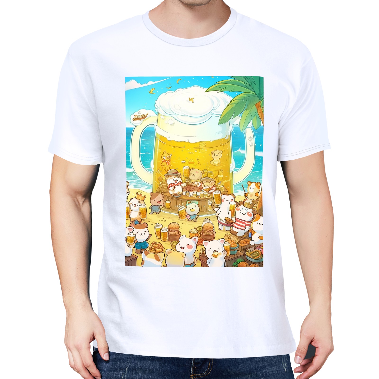Basic Oversize Tees For WomenBeer Loose Boyfriend Shirts Casual Blouse round neck
