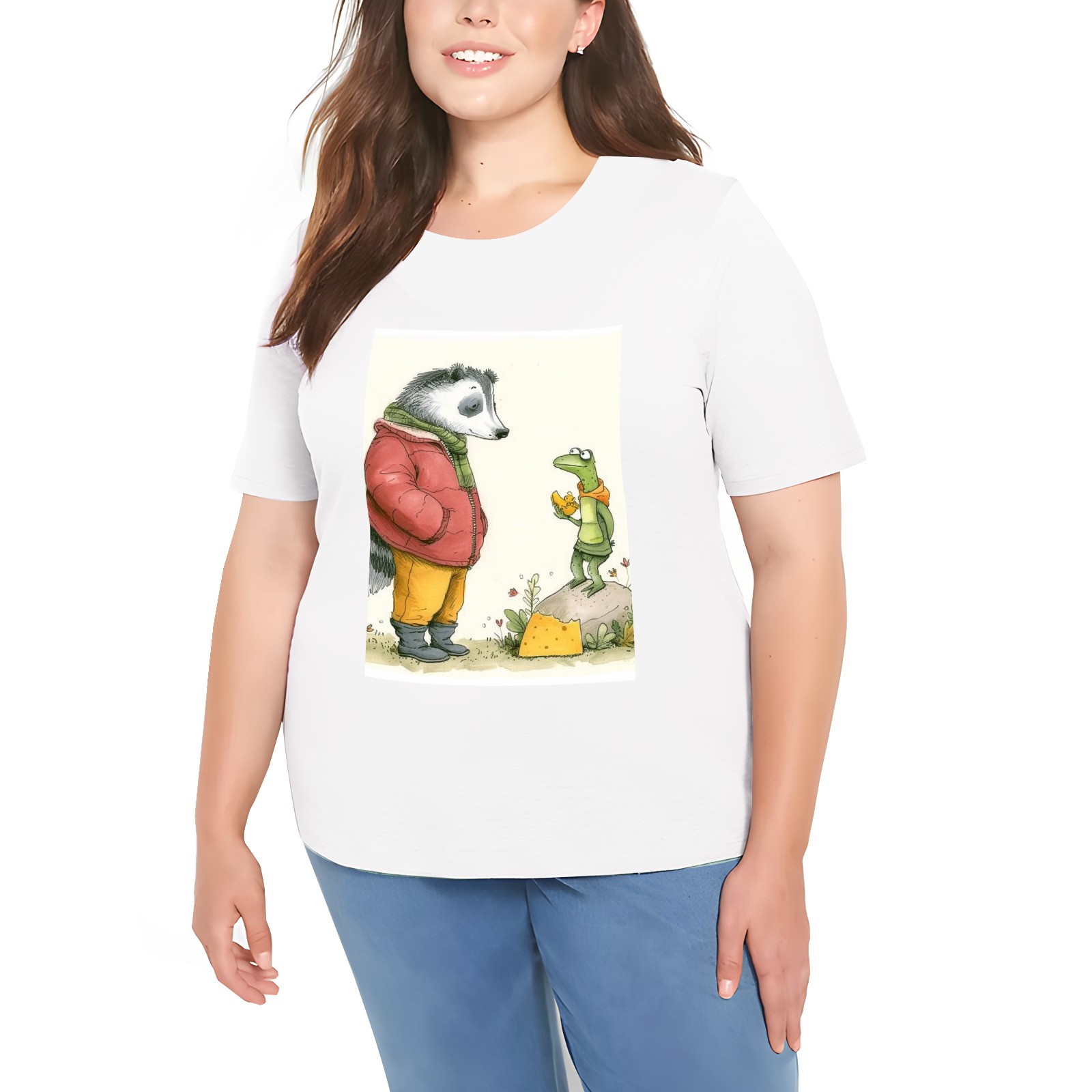 Basic Oversize Tees For WomenAnimal Loose Boyfriend Shirts Casual Blouse round neck