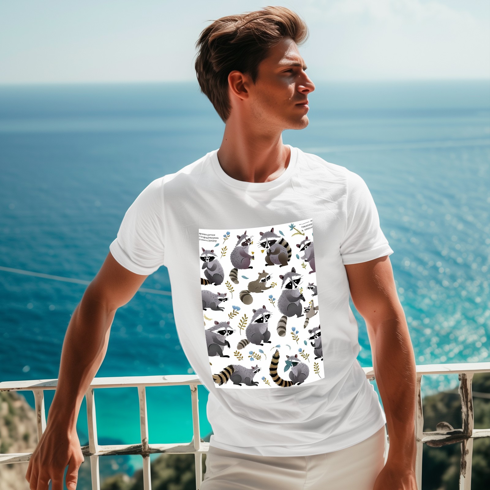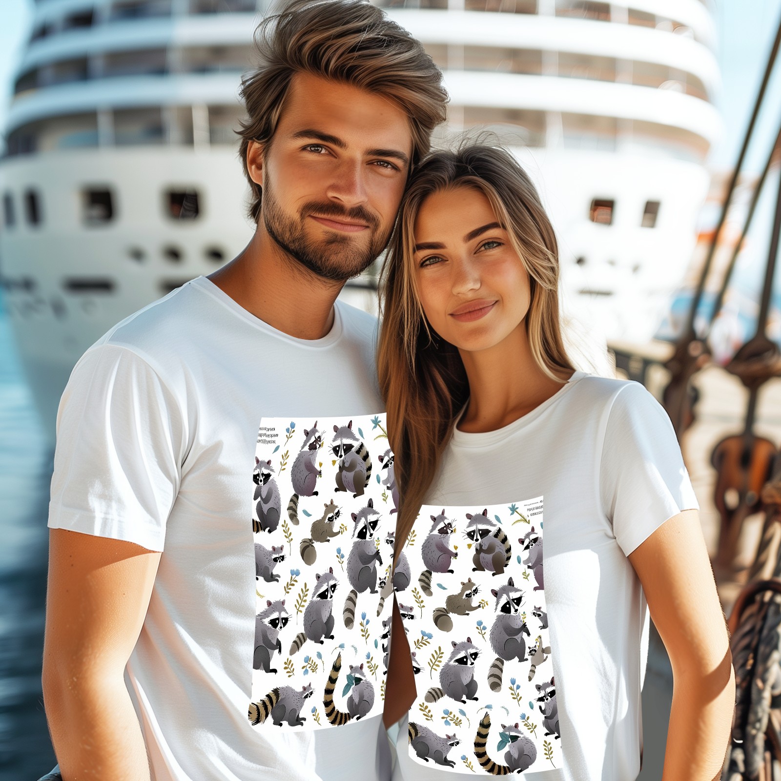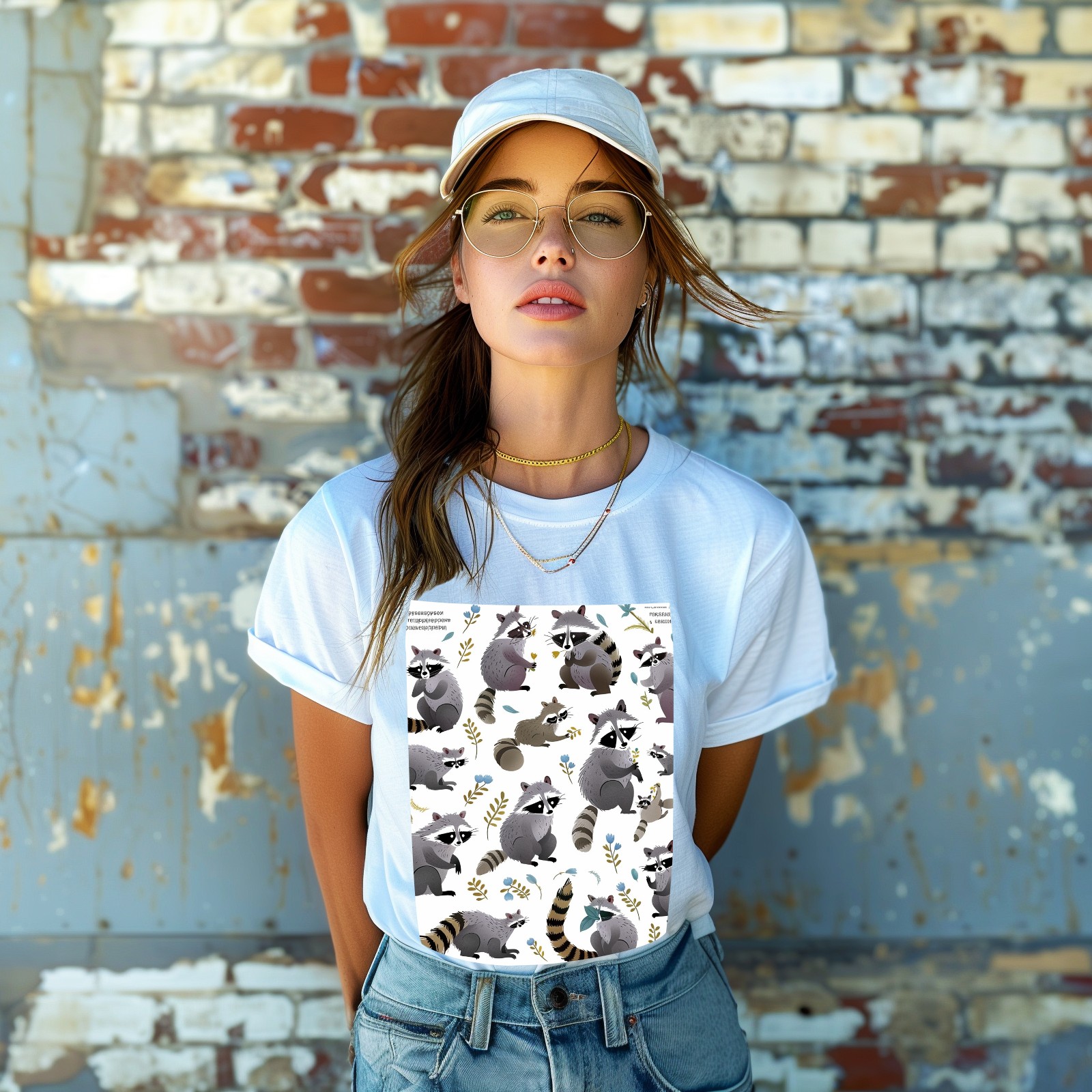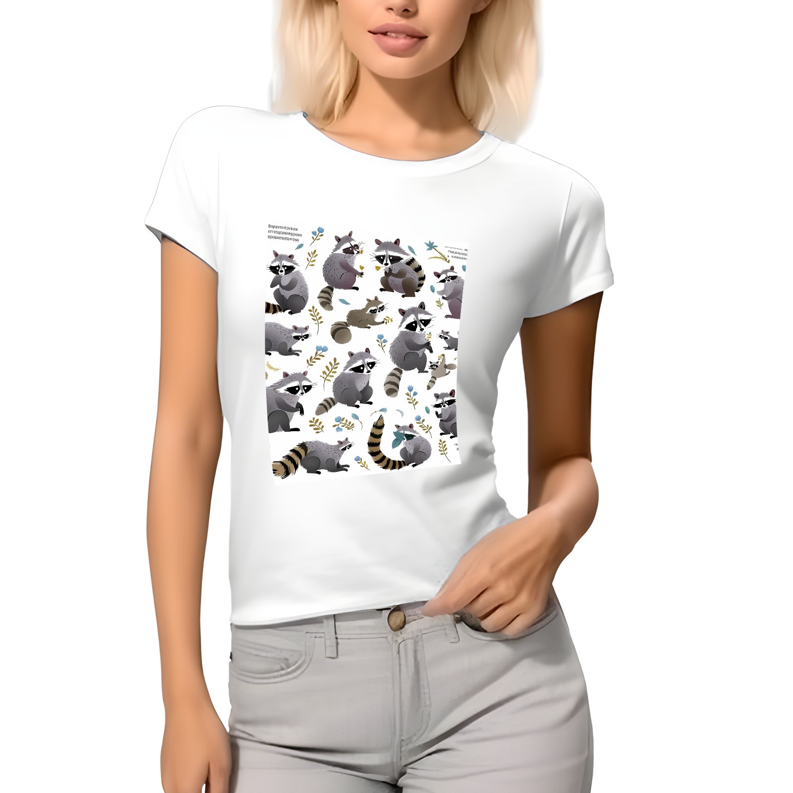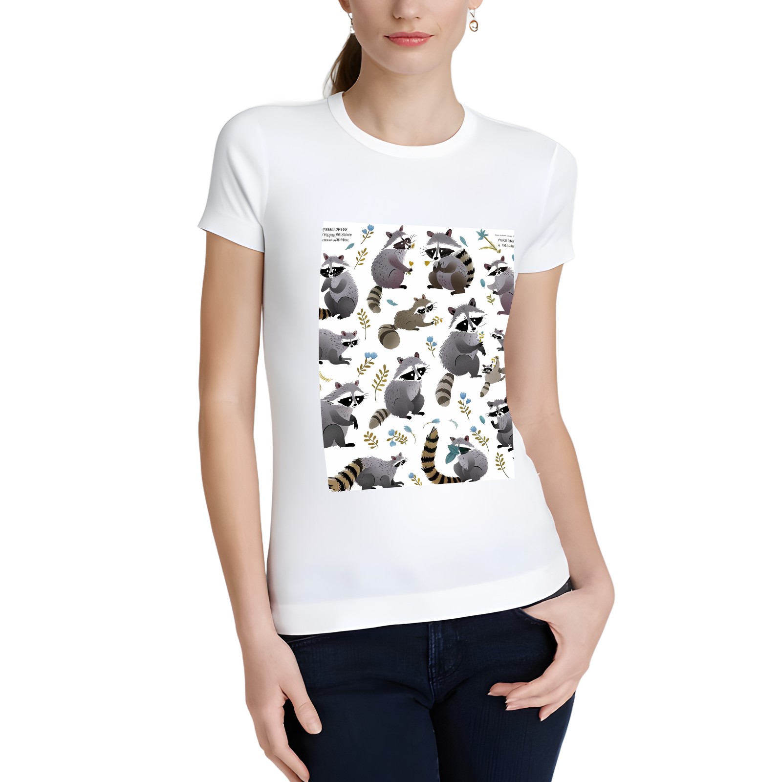 Basic Oversize Tees For WomenRaccoon Loose Boyfriend Shirts Casual Blouse round neck