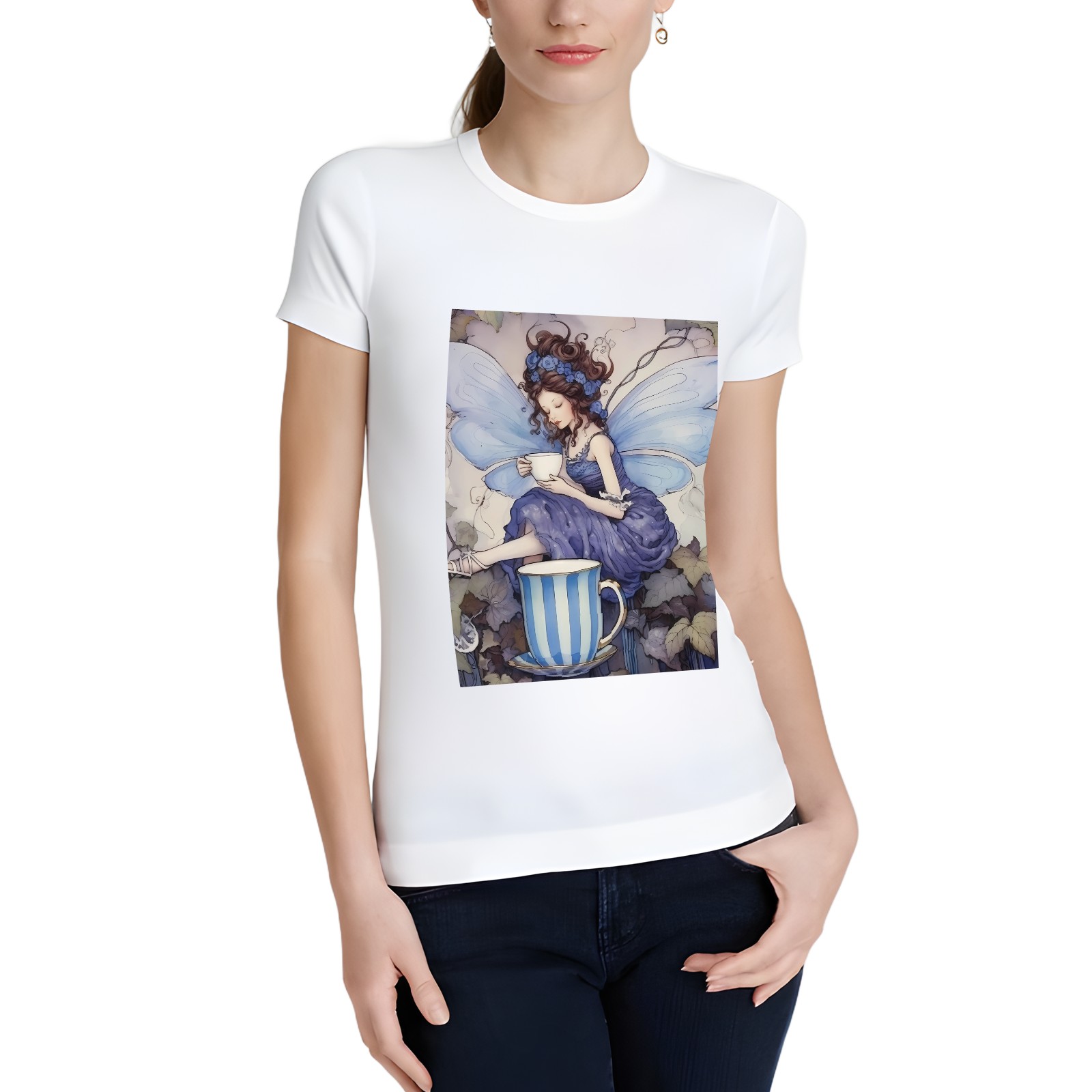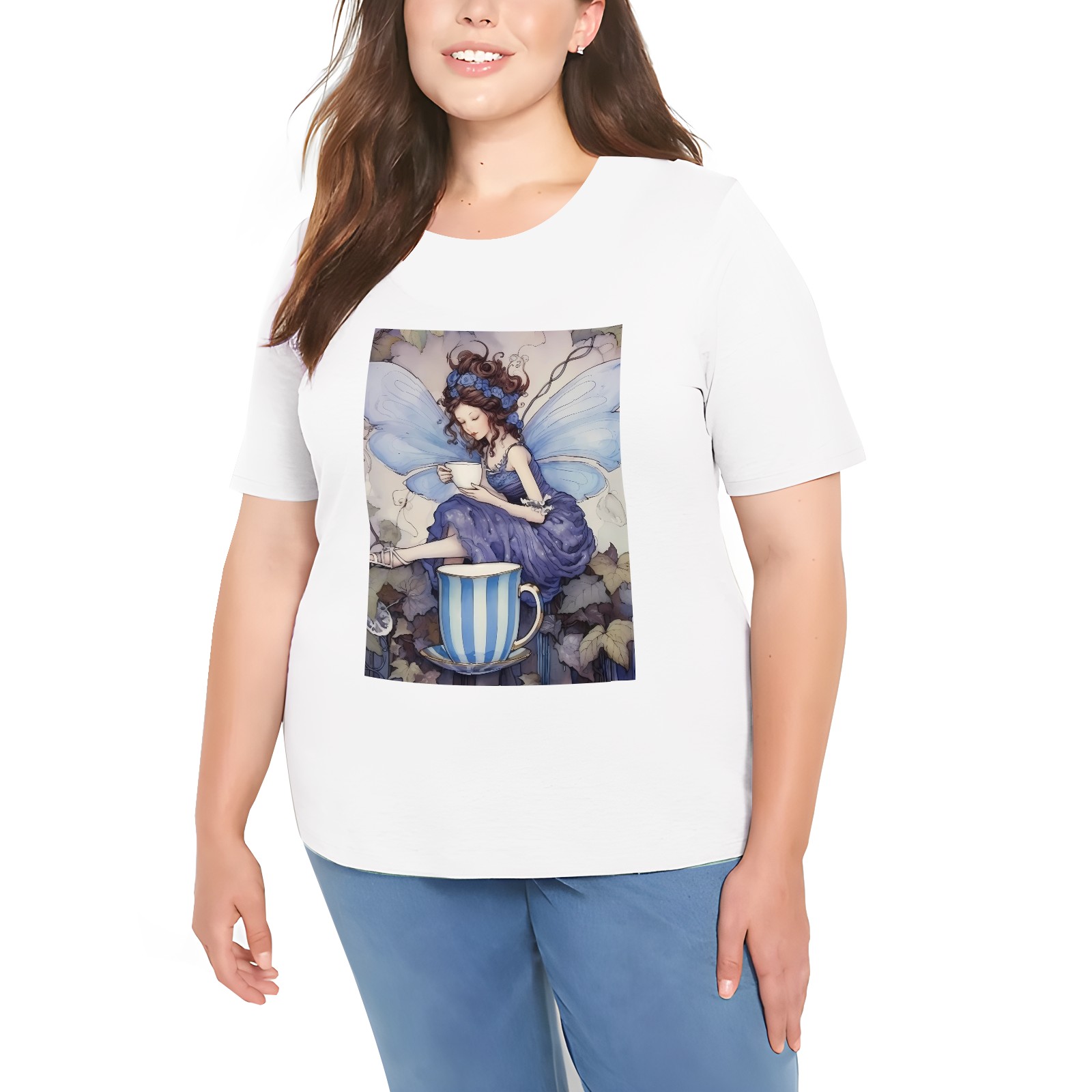 Basic Oversize Tees For Women天使 Loose Boyfriend Shirts Casual Blouse round neck