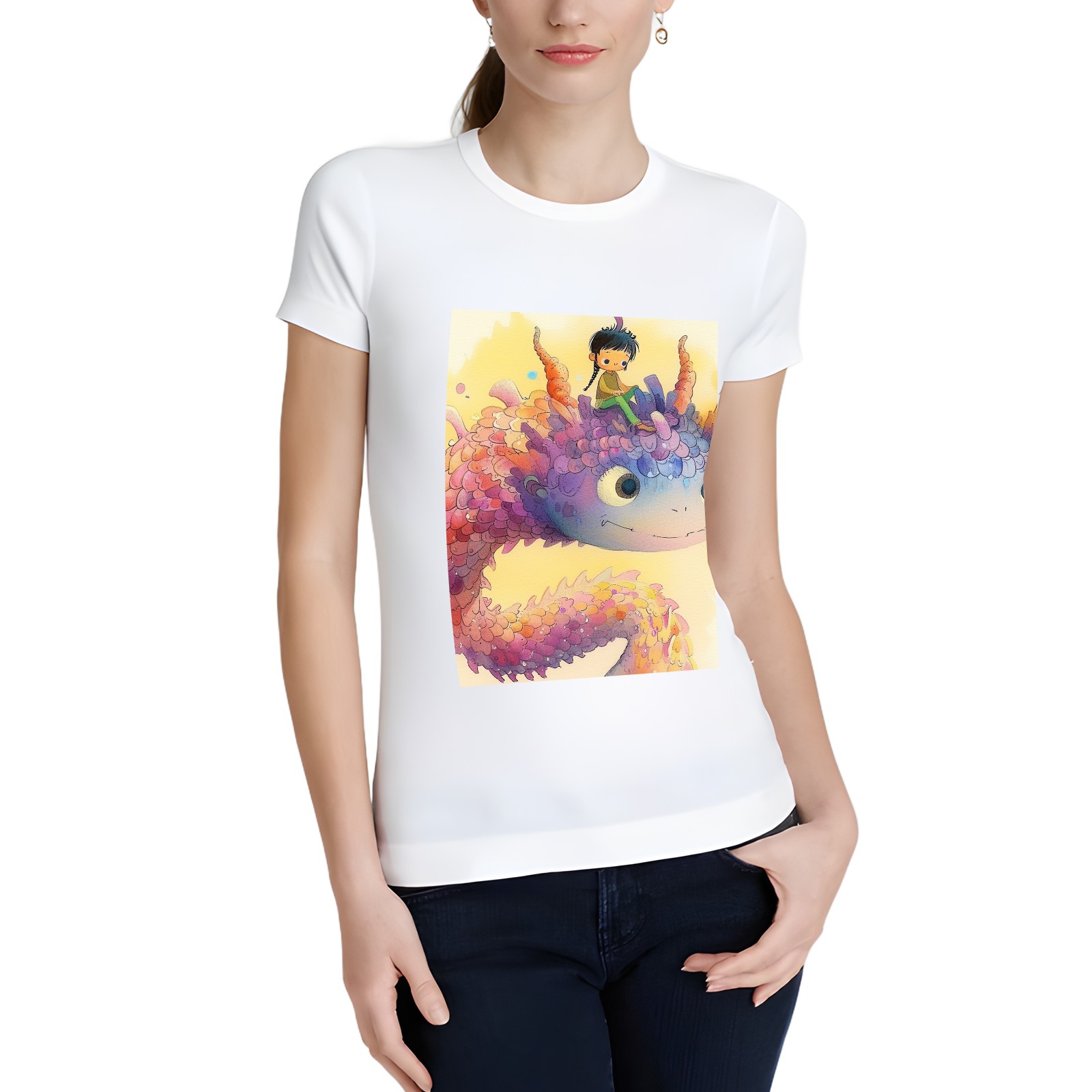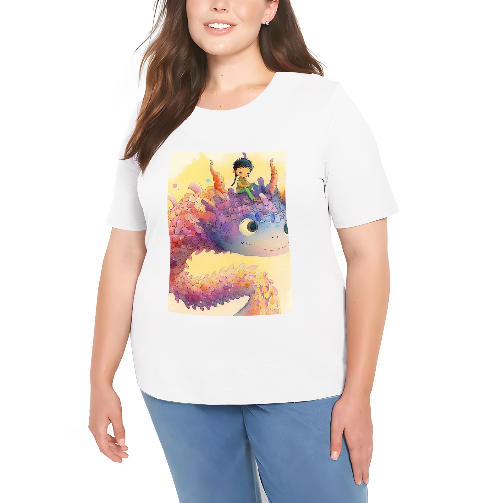 Basic Oversize Tees For WomenDinosaur Loose Boyfriend Shirts Casual Blouse round neck