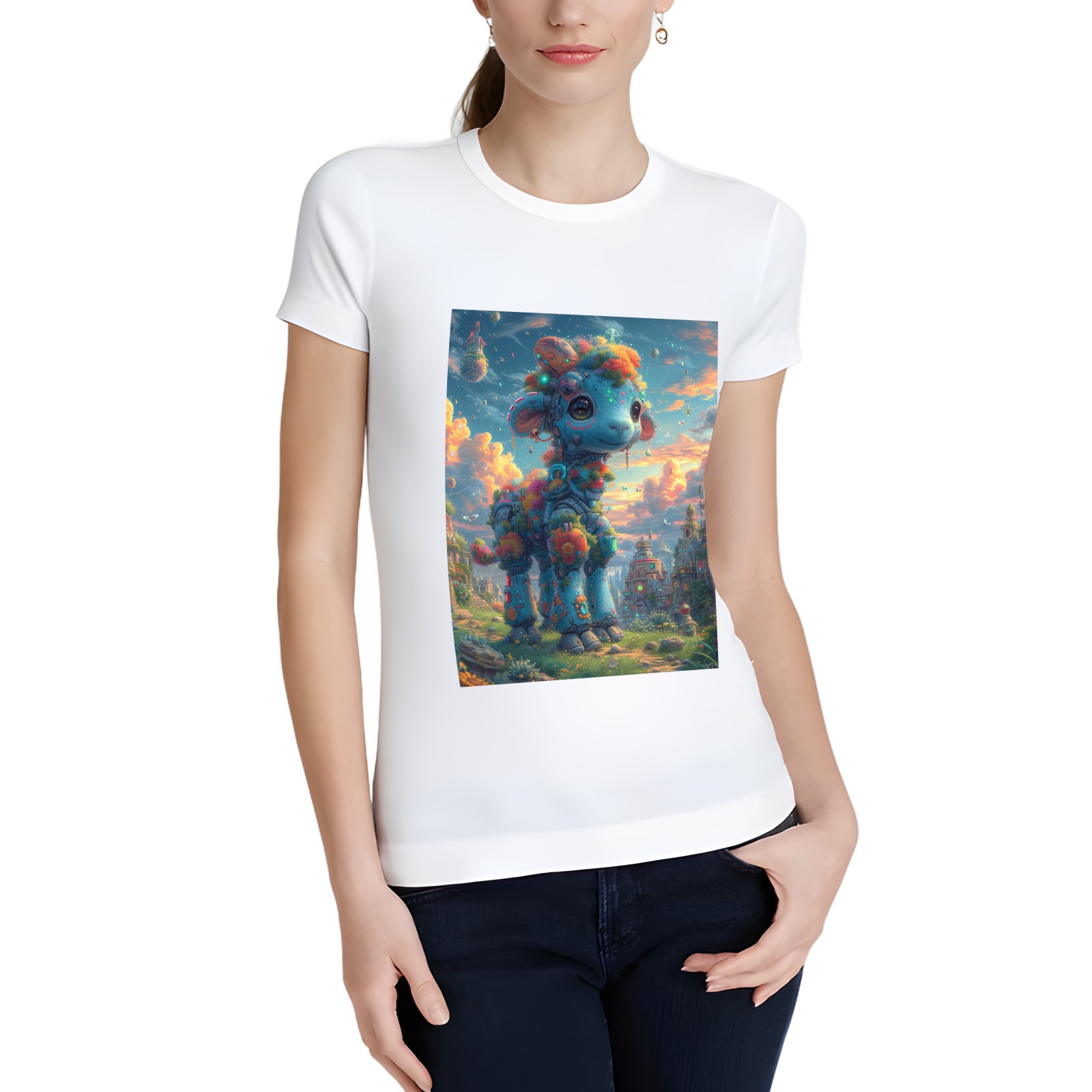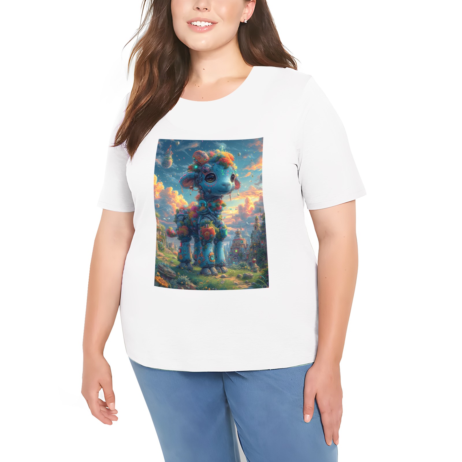 Basic Oversize Tees For WomenFairy Tale Loose Boyfriend Shirts Casual Blouse round neck