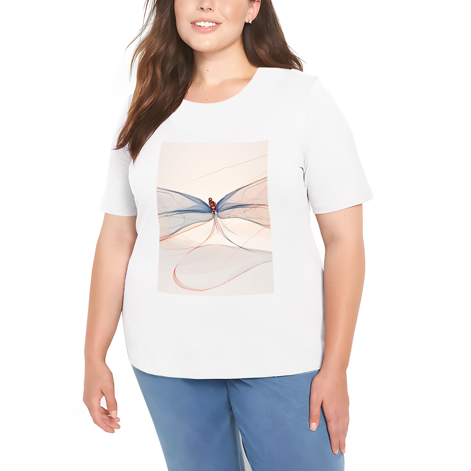 Basic Oversize Tees For WomenDragonfly (44) Loose Boyfriend Shirts Casual Blouse round neck