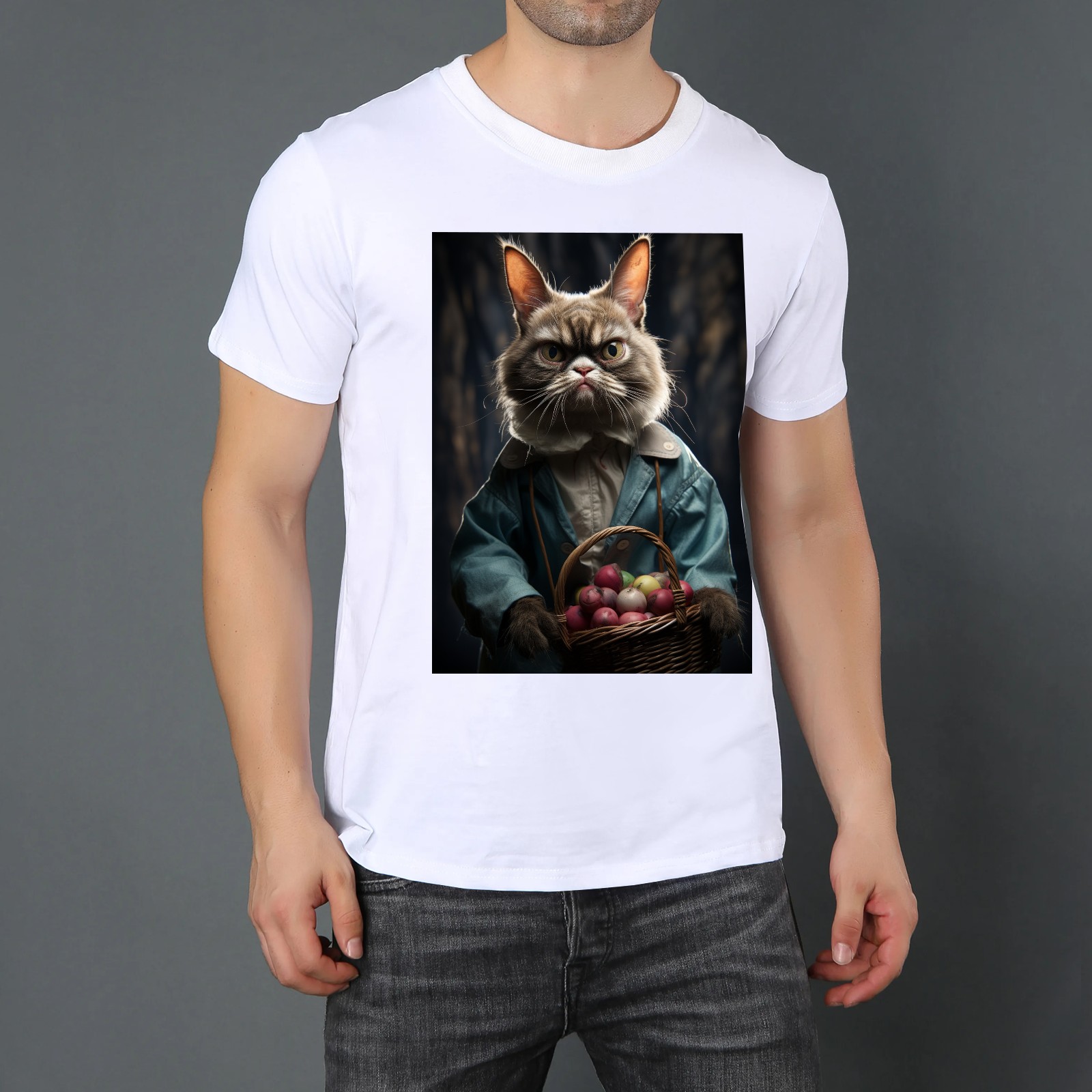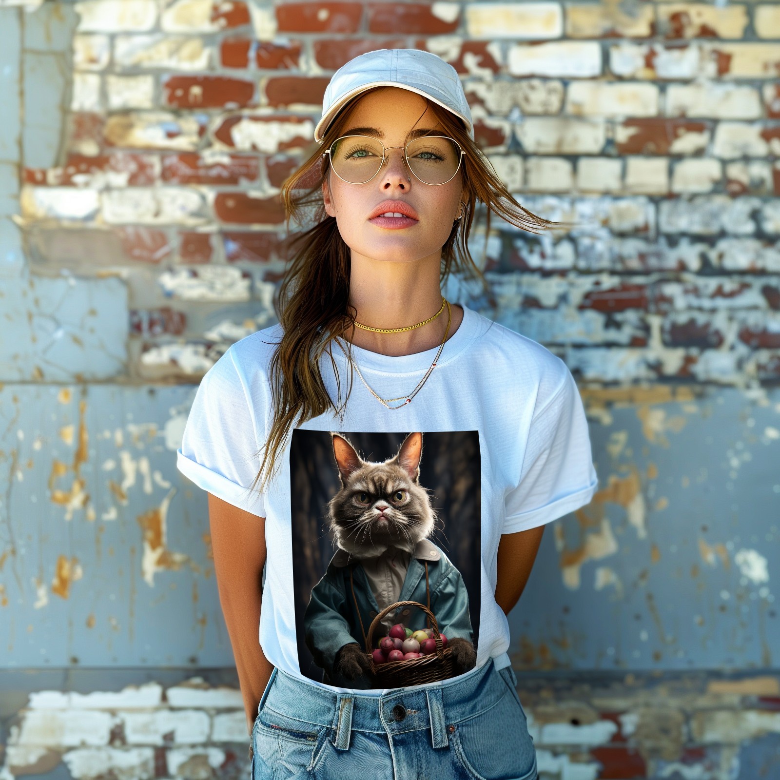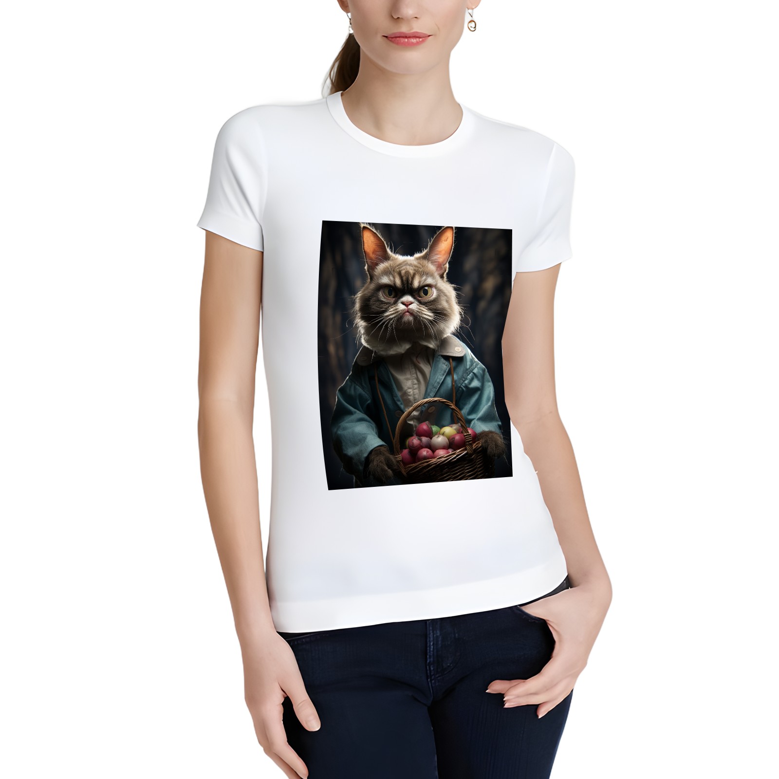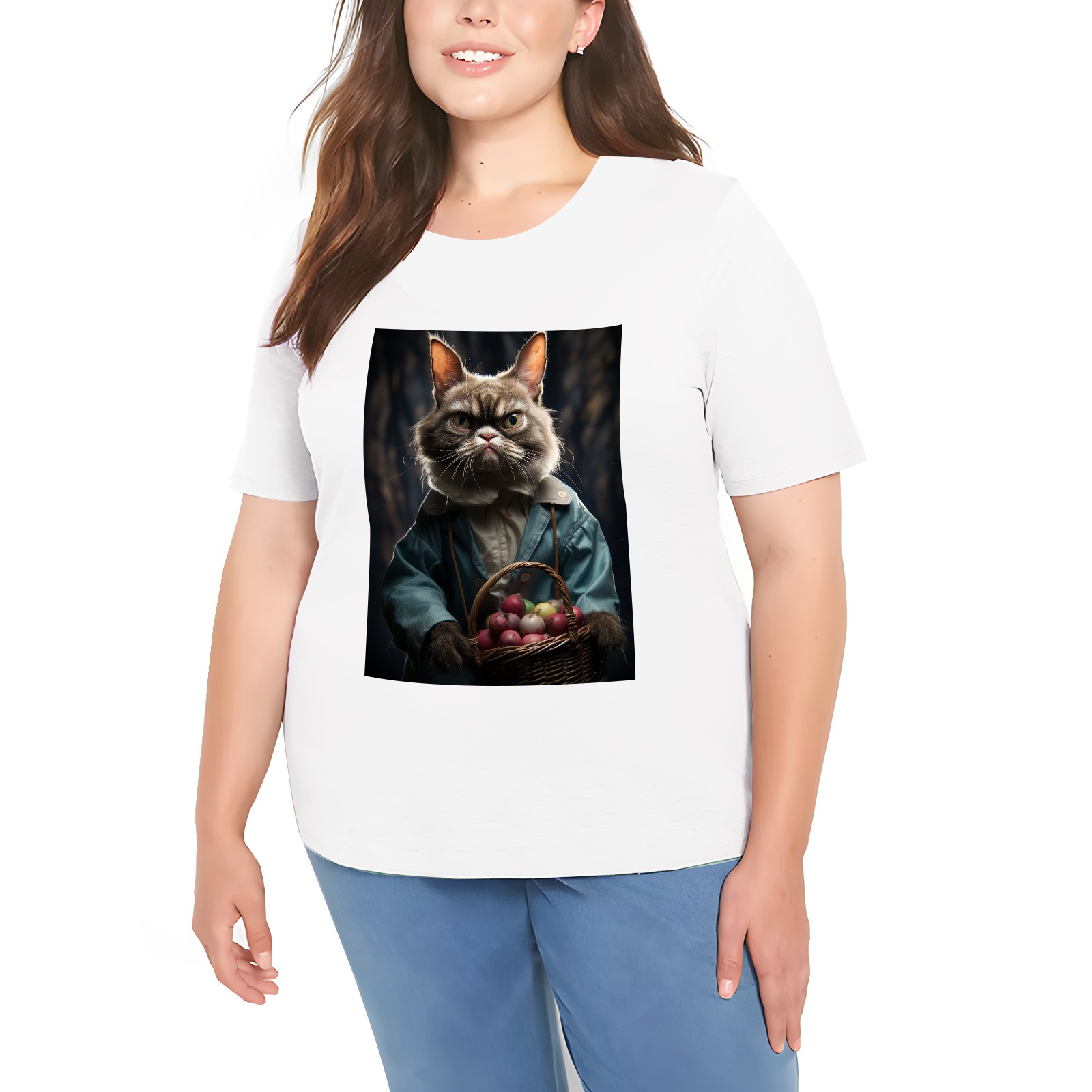 Basic Oversize Tees For WomenGrumpy Cat Loose Boyfriend Shirts Casual Blouse round neck