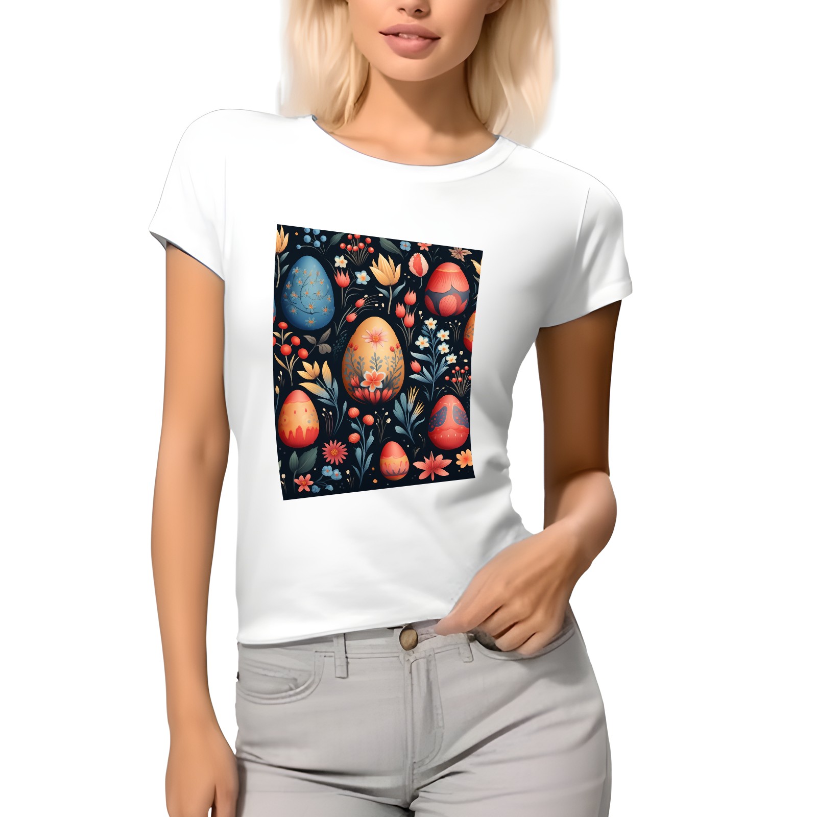 Basic Oversize Tees For WomenEaster Eggs Loose Boyfriend Shirts Casual Blouse round neck