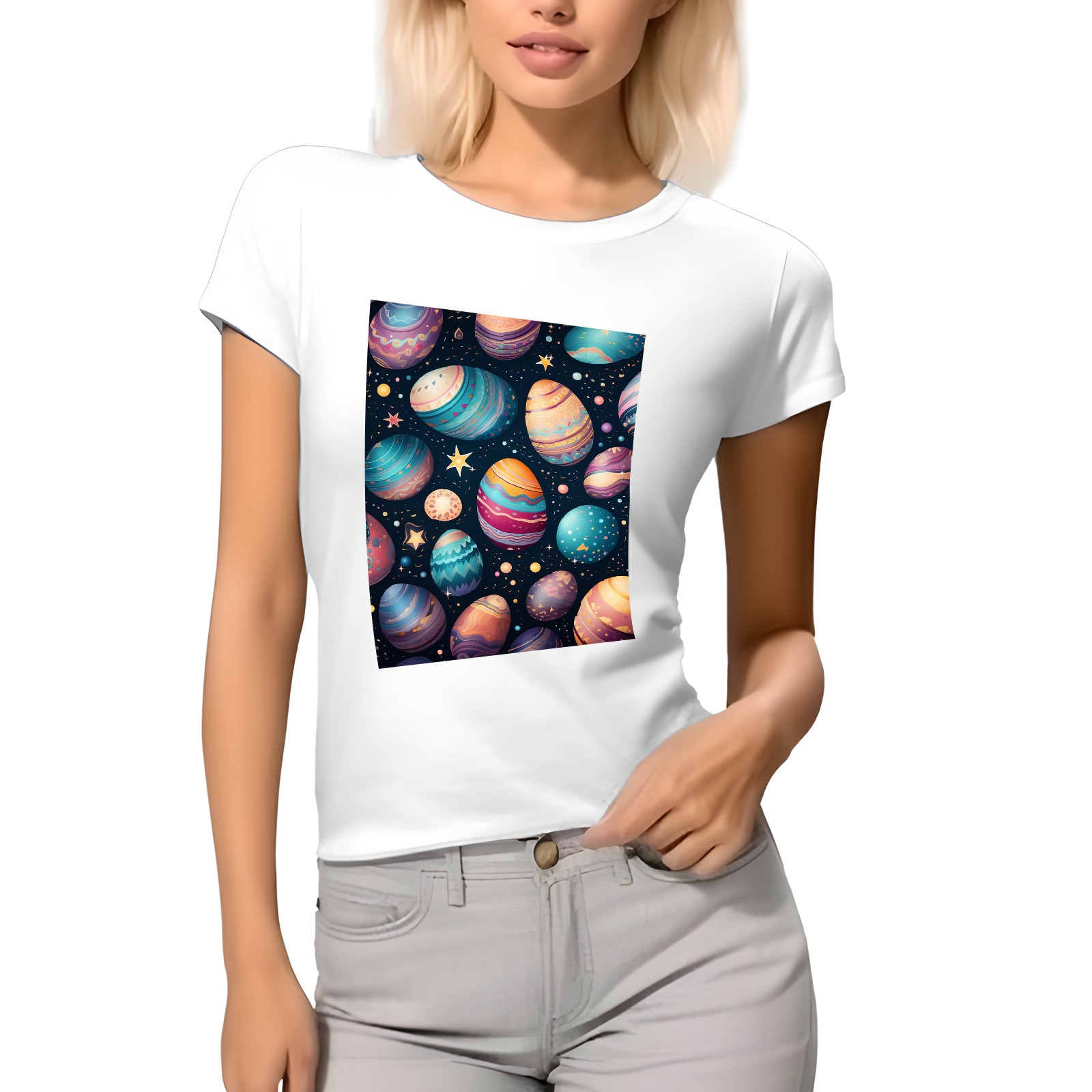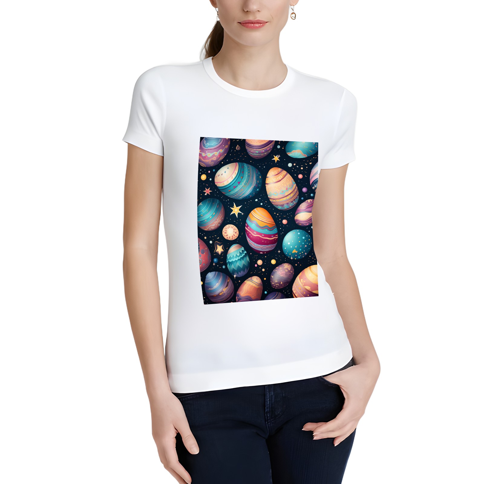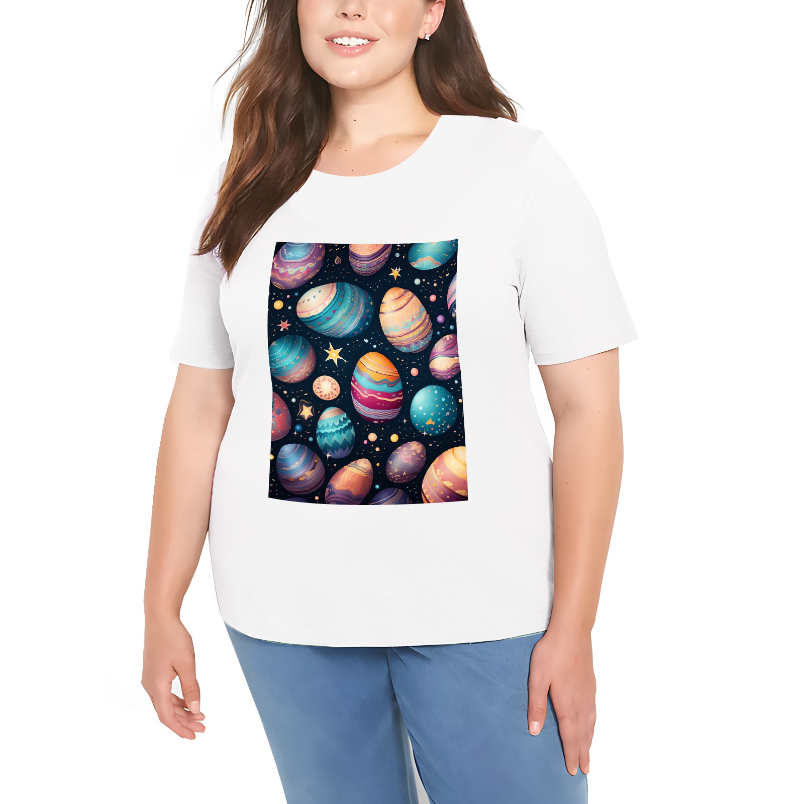Basic Oversize Tees For WomenEaster Eggs (49) Loose Boyfriend Shirts Casual Blouse round neck