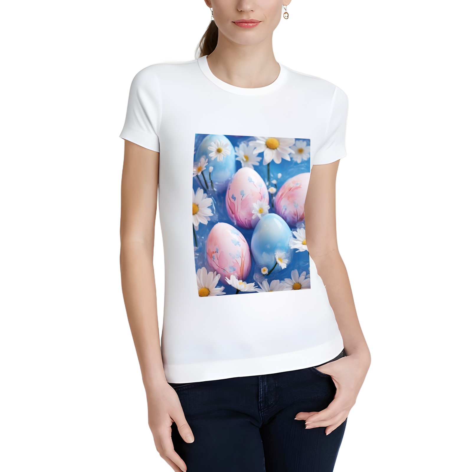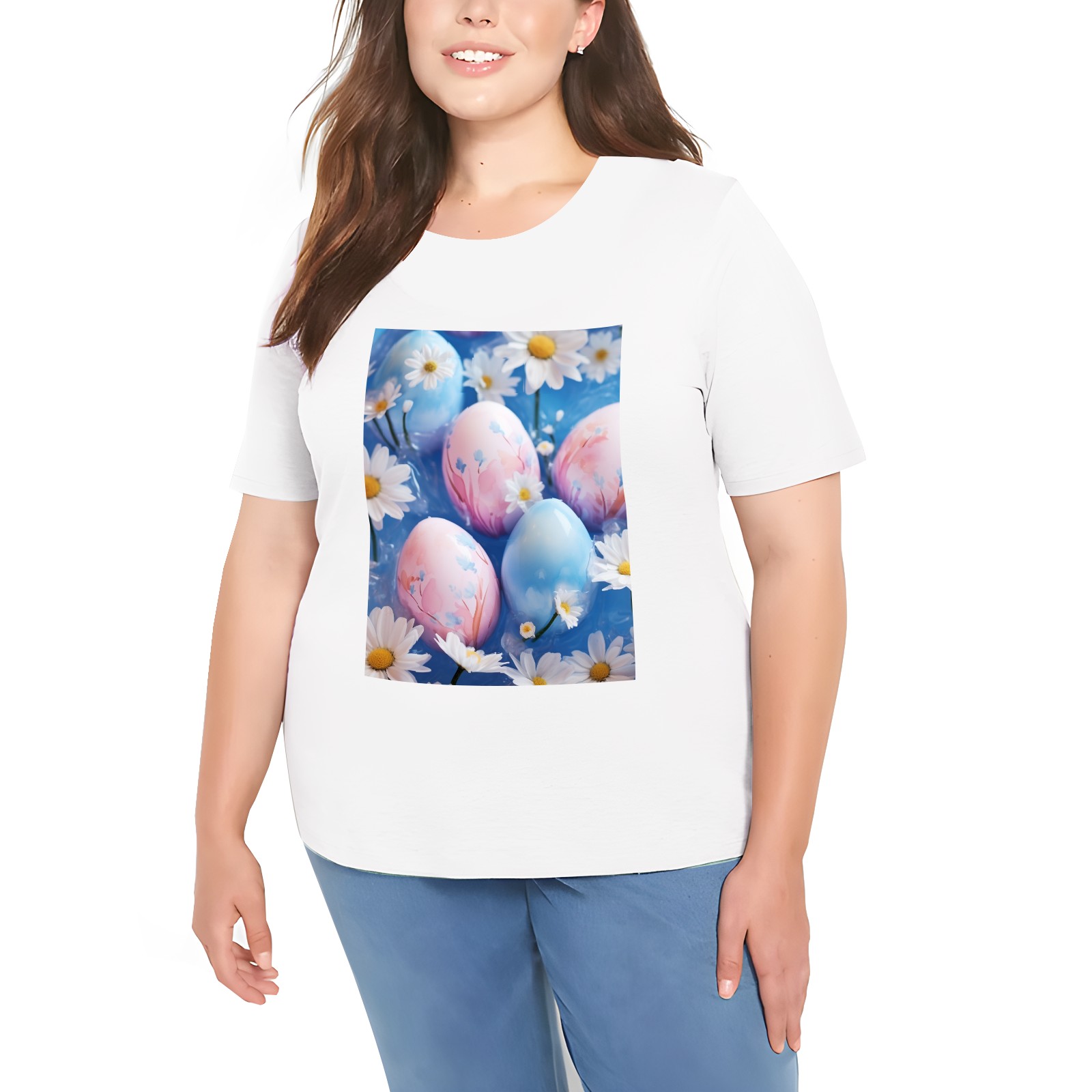 Basic Oversize Tees For WomenEaster Eggs (45) Loose Boyfriend Shirts Casual Blouse round neck