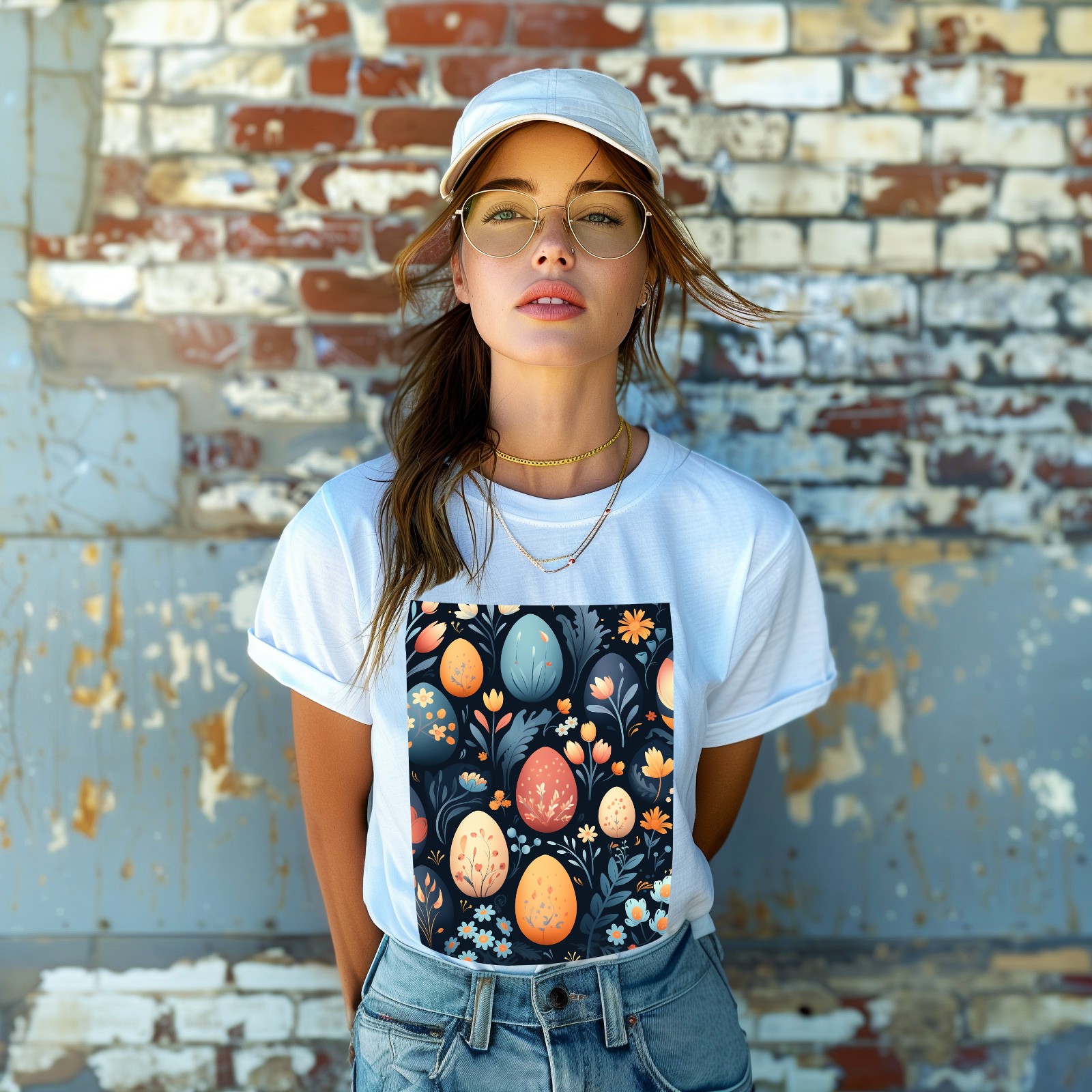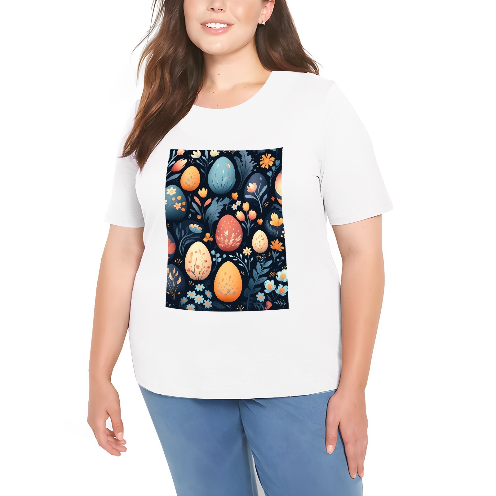 Basic Oversize Tees For WomenEaster Eggs (33) Loose Boyfriend Shirts Casual Blouse round neck
