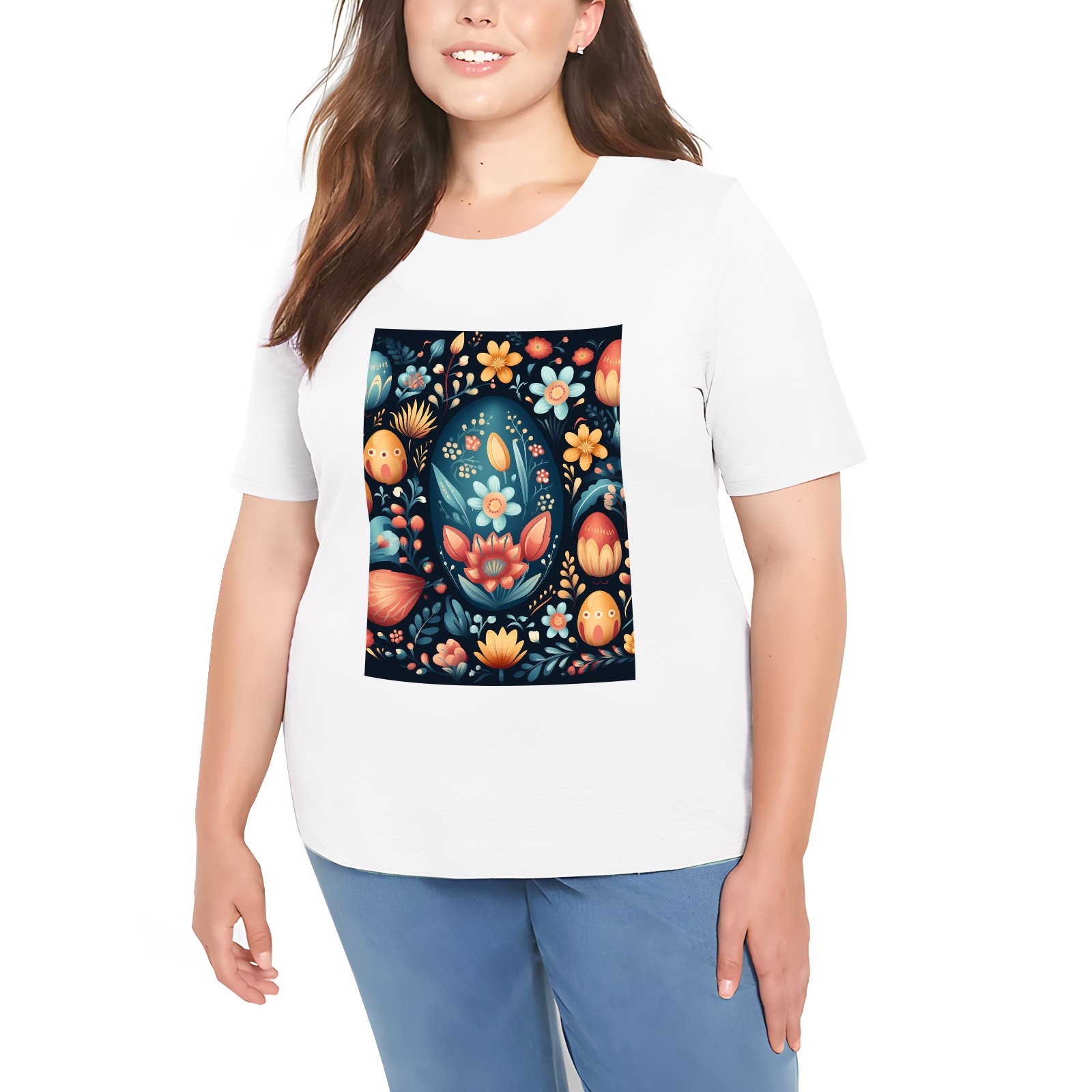 Basic Oversize Tees For WomenEaster Eggs (34) Loose Boyfriend Shirts Casual Blouse round neck