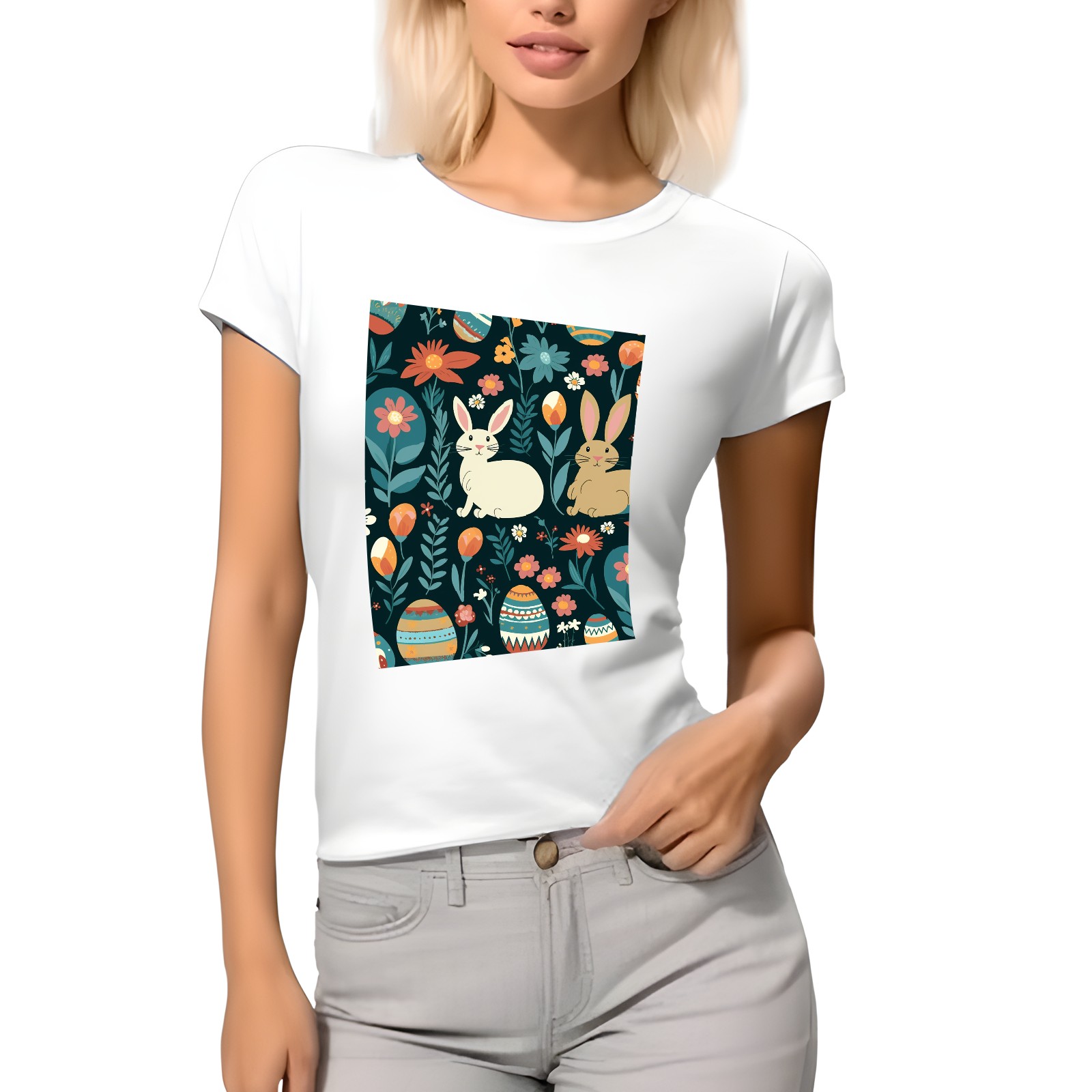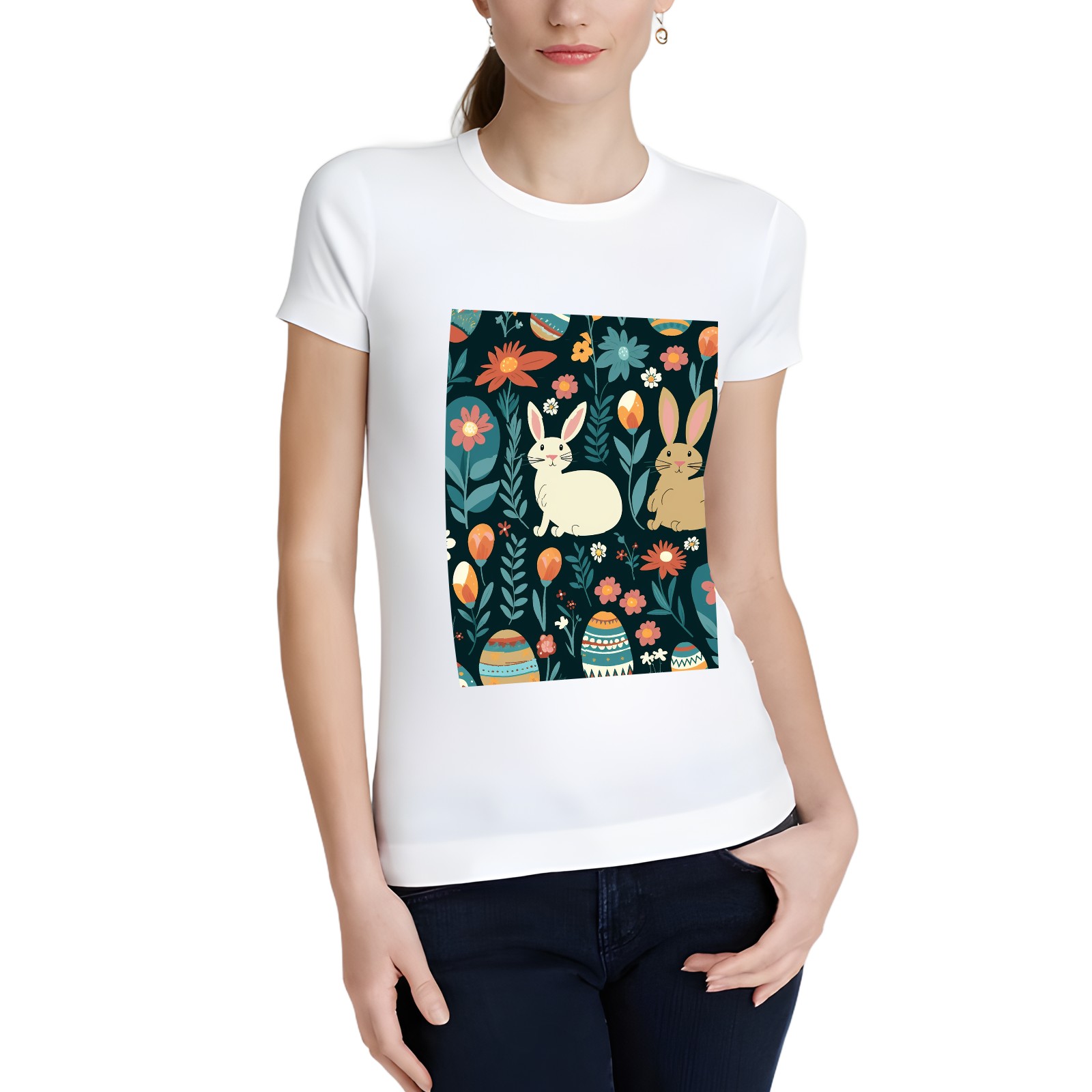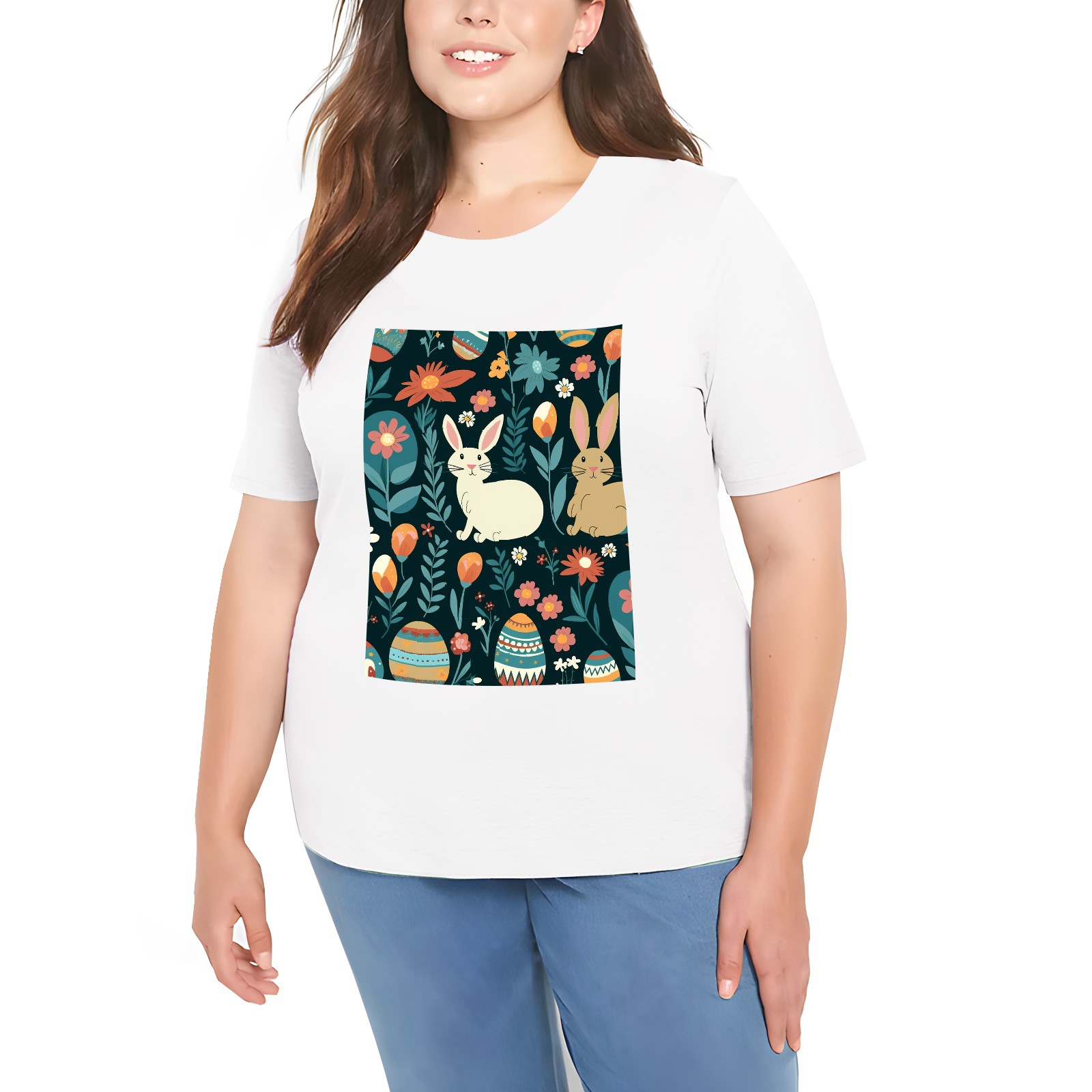Basic Oversize Tees For WomenEaster Eggs (30) Loose Boyfriend Shirts Casual Blouse round neck