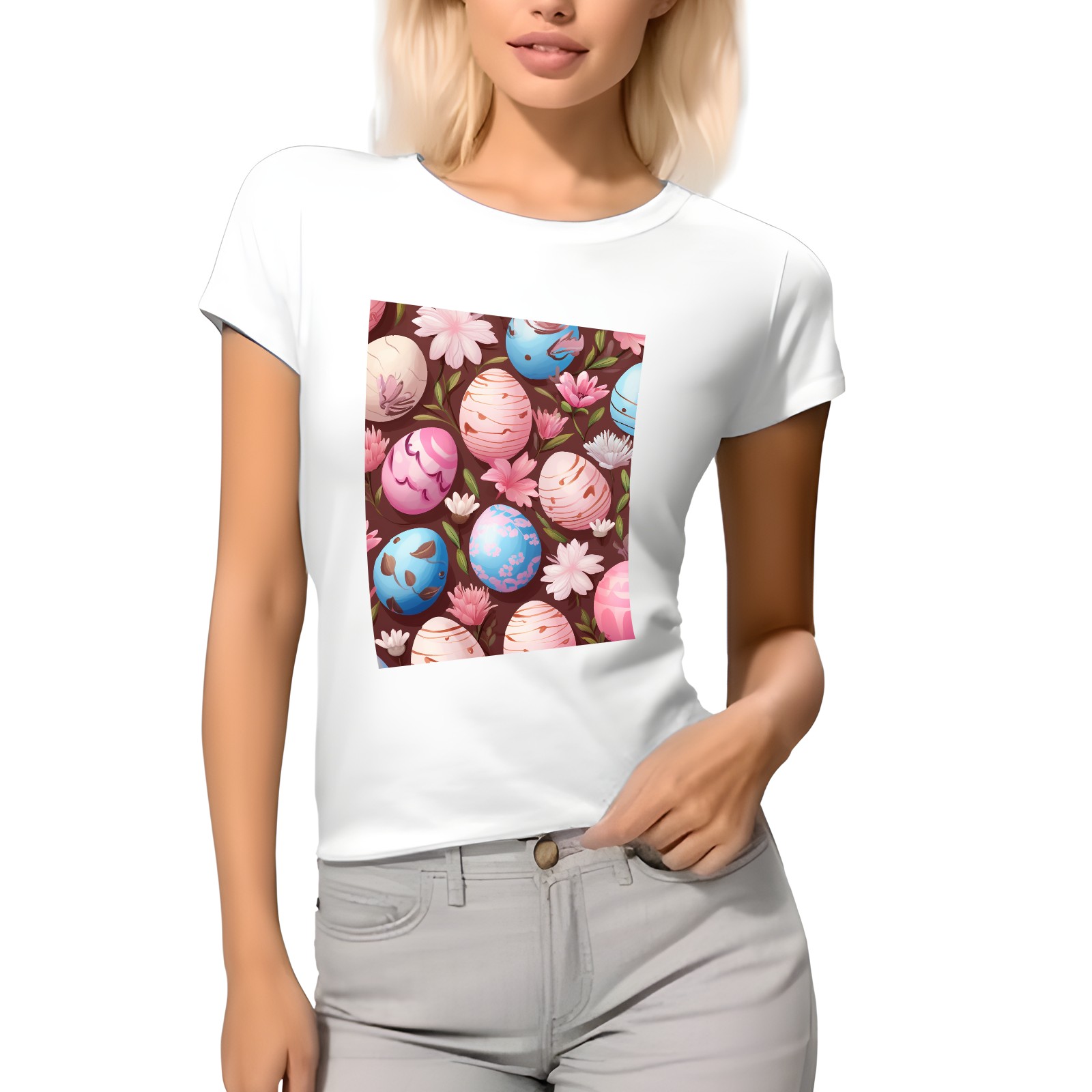 Basic Oversize Tees For WomenEaster Eggs (28) Loose Boyfriend Shirts Casual Blouse round neck