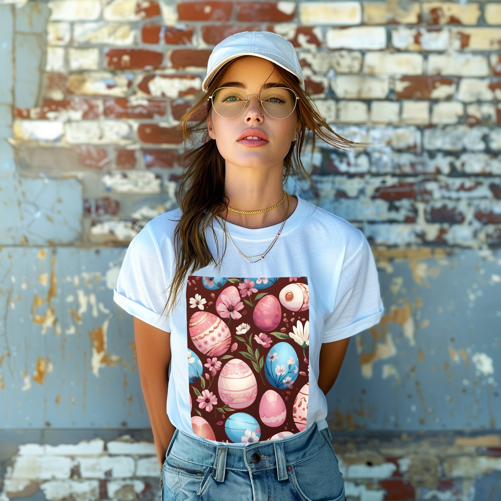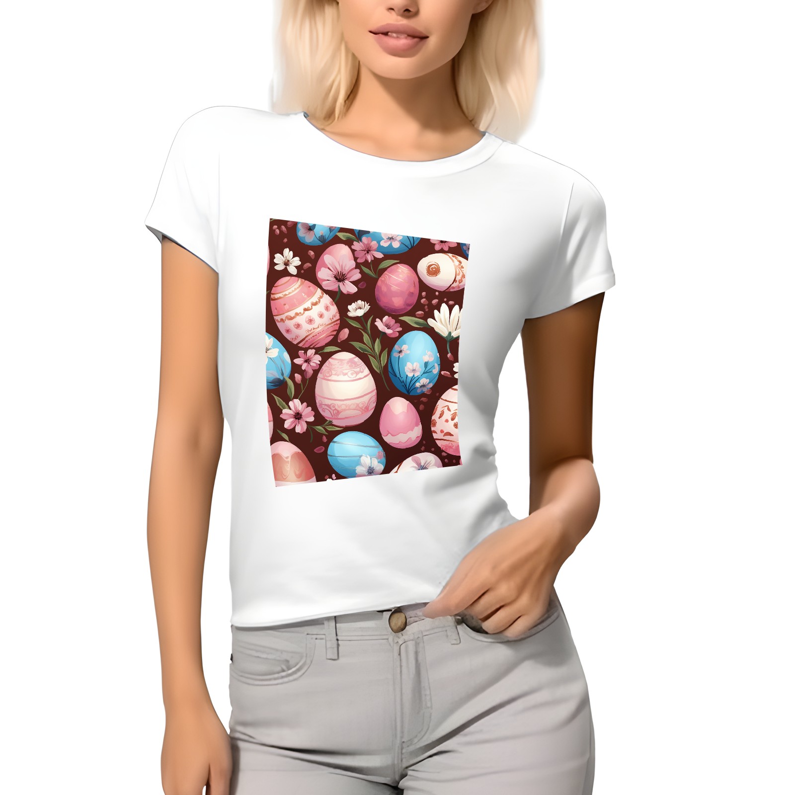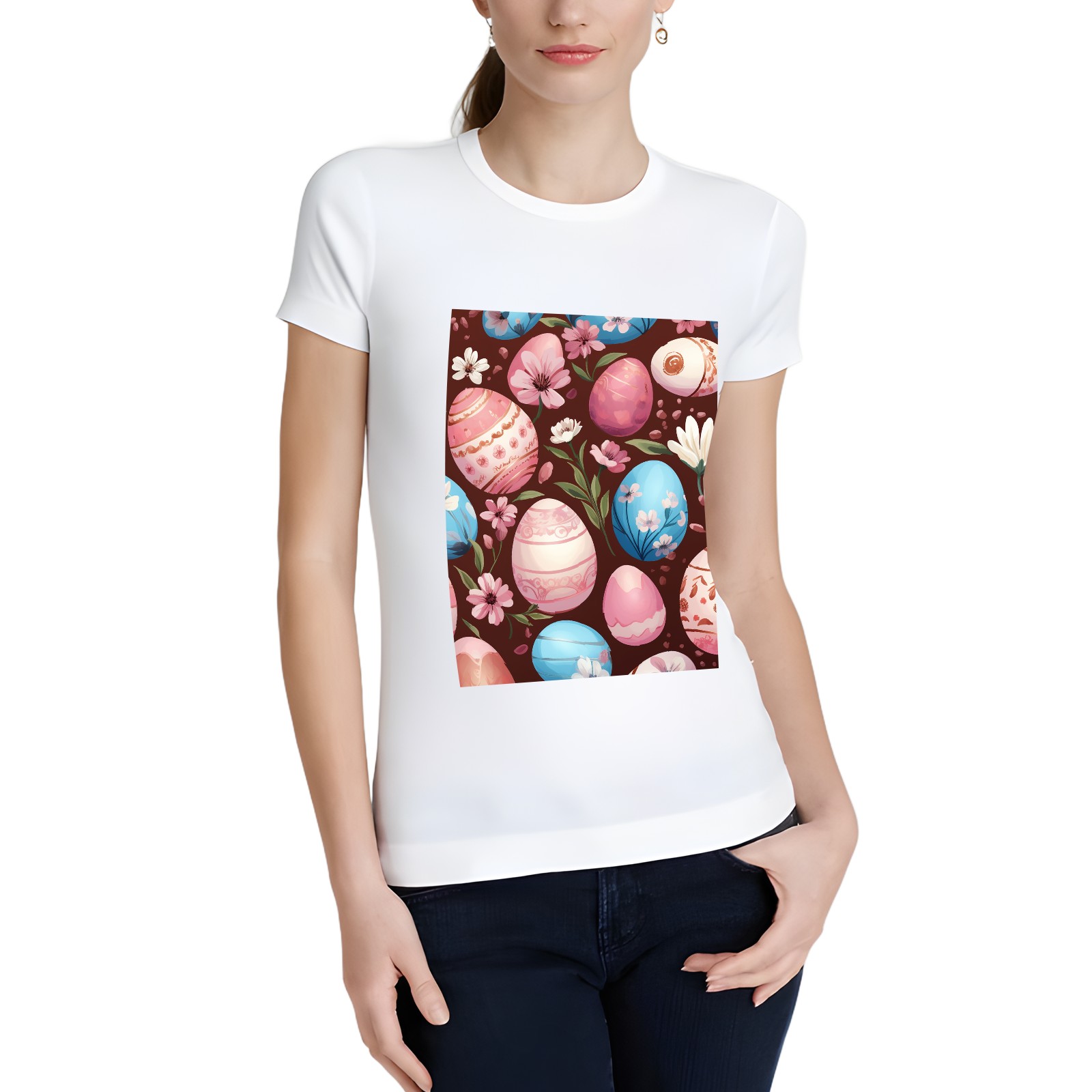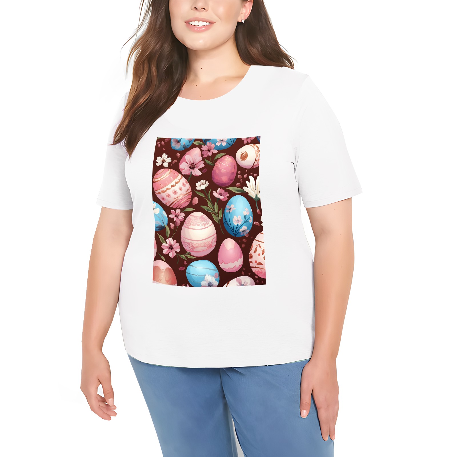 Basic Oversize Tees For WomenEaster Eggs (26) Loose Boyfriend Shirts Casual Blouse round neck