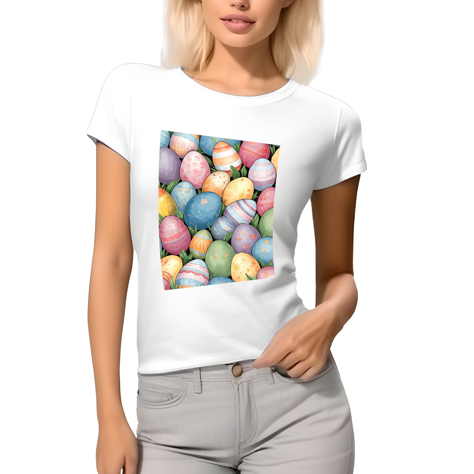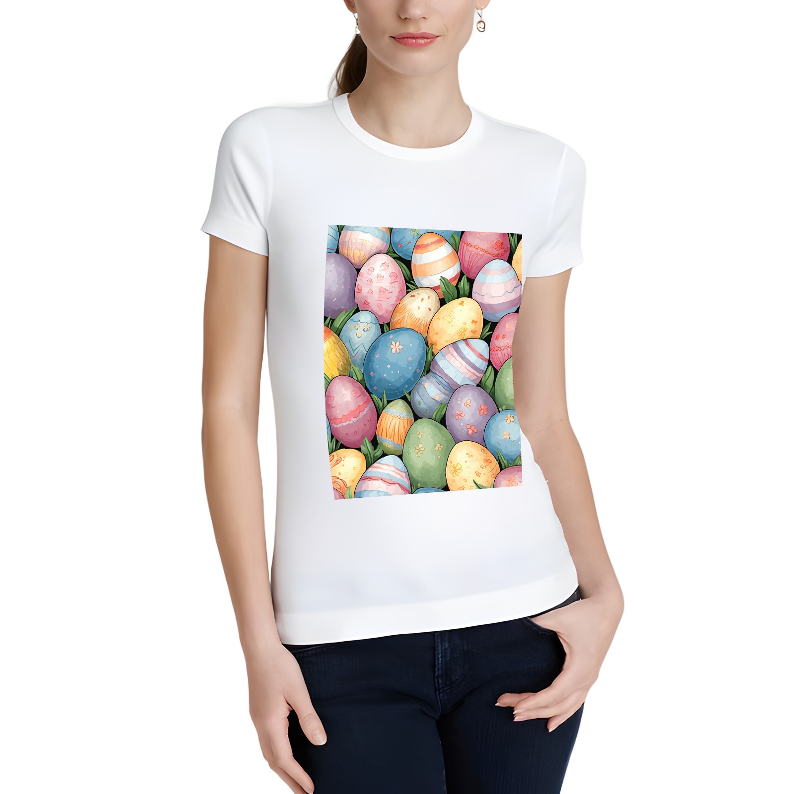 Basic Oversize Tees For WomenEaster Eggs (21) Loose Boyfriend Shirts Casual Blouse round neck