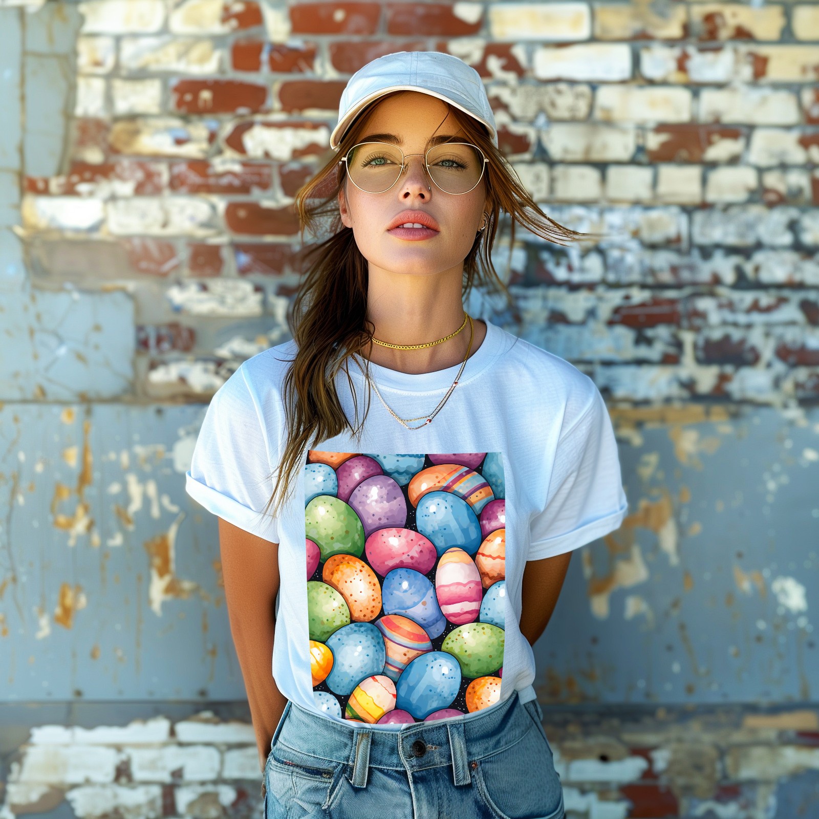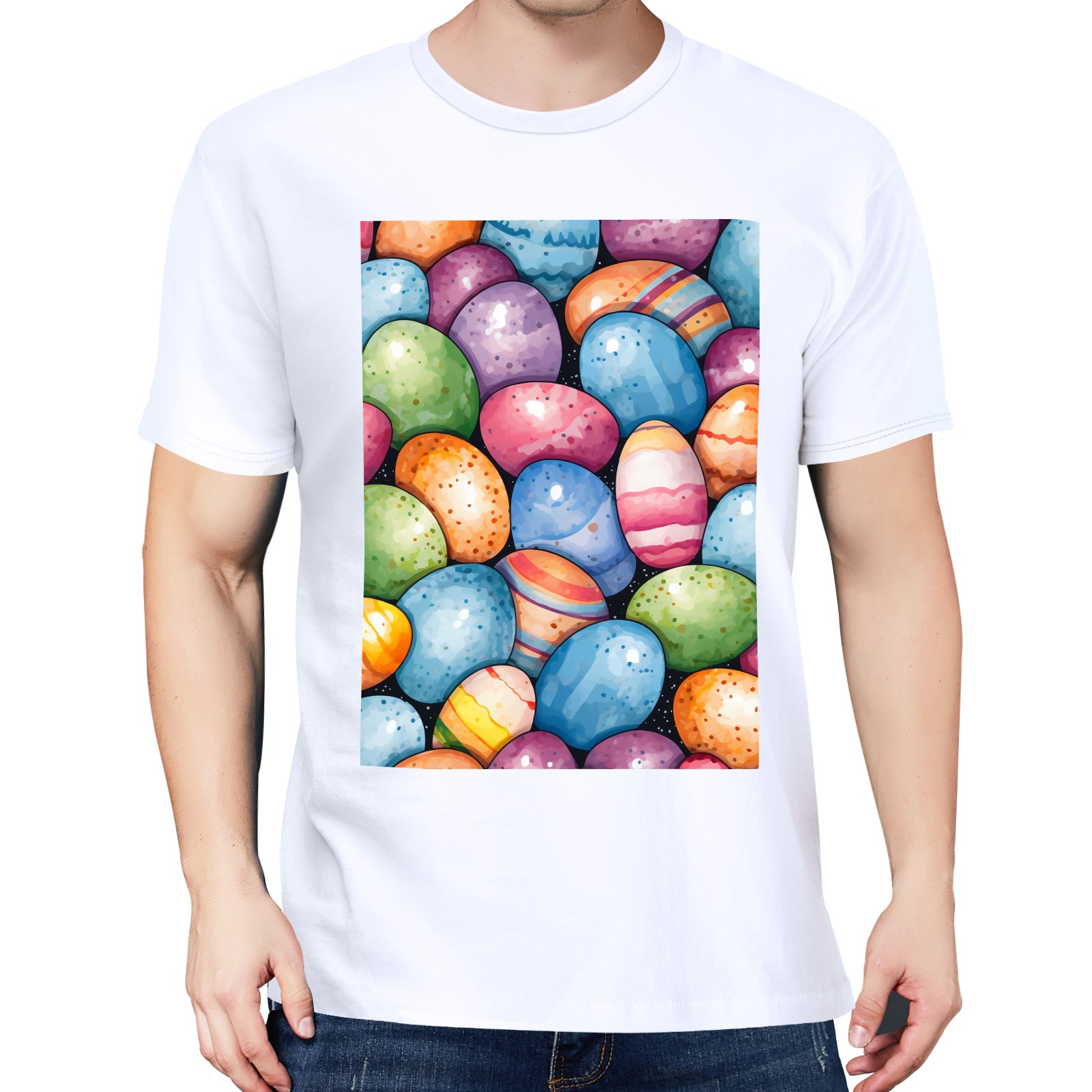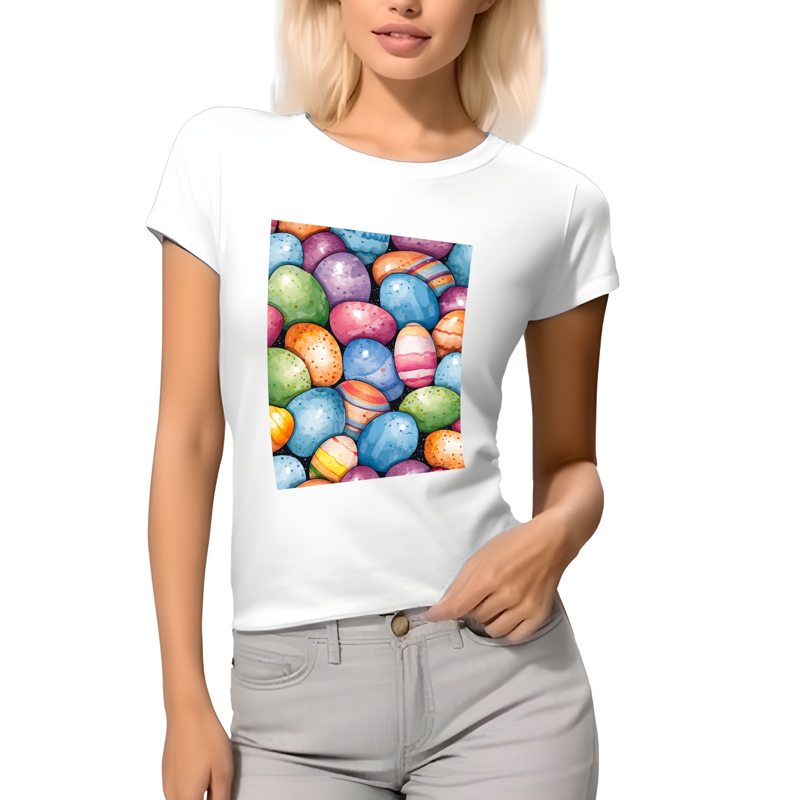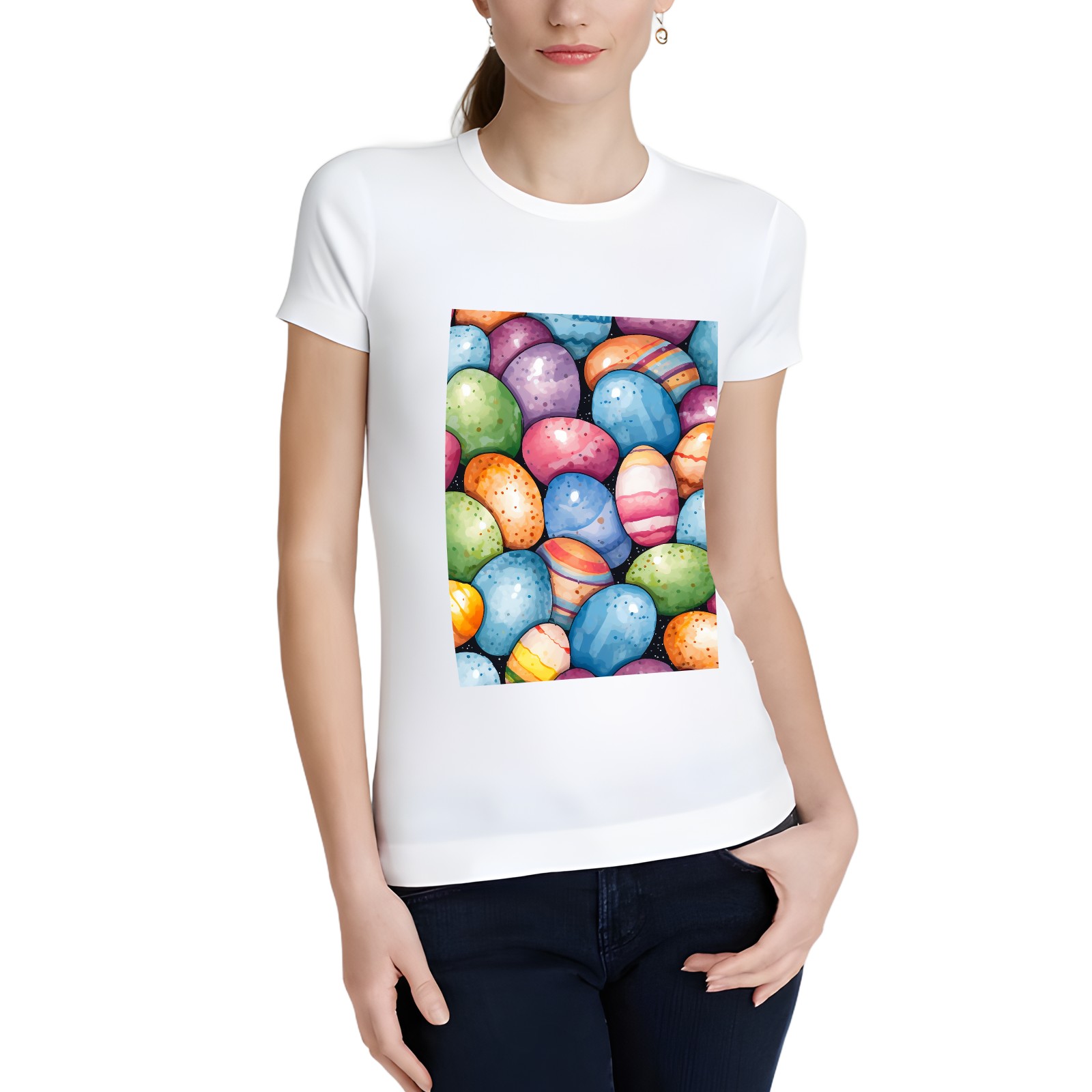 Basic Oversize Tees For WomenEaster Eggs (20) Loose Boyfriend Shirts Casual Blouse round neck