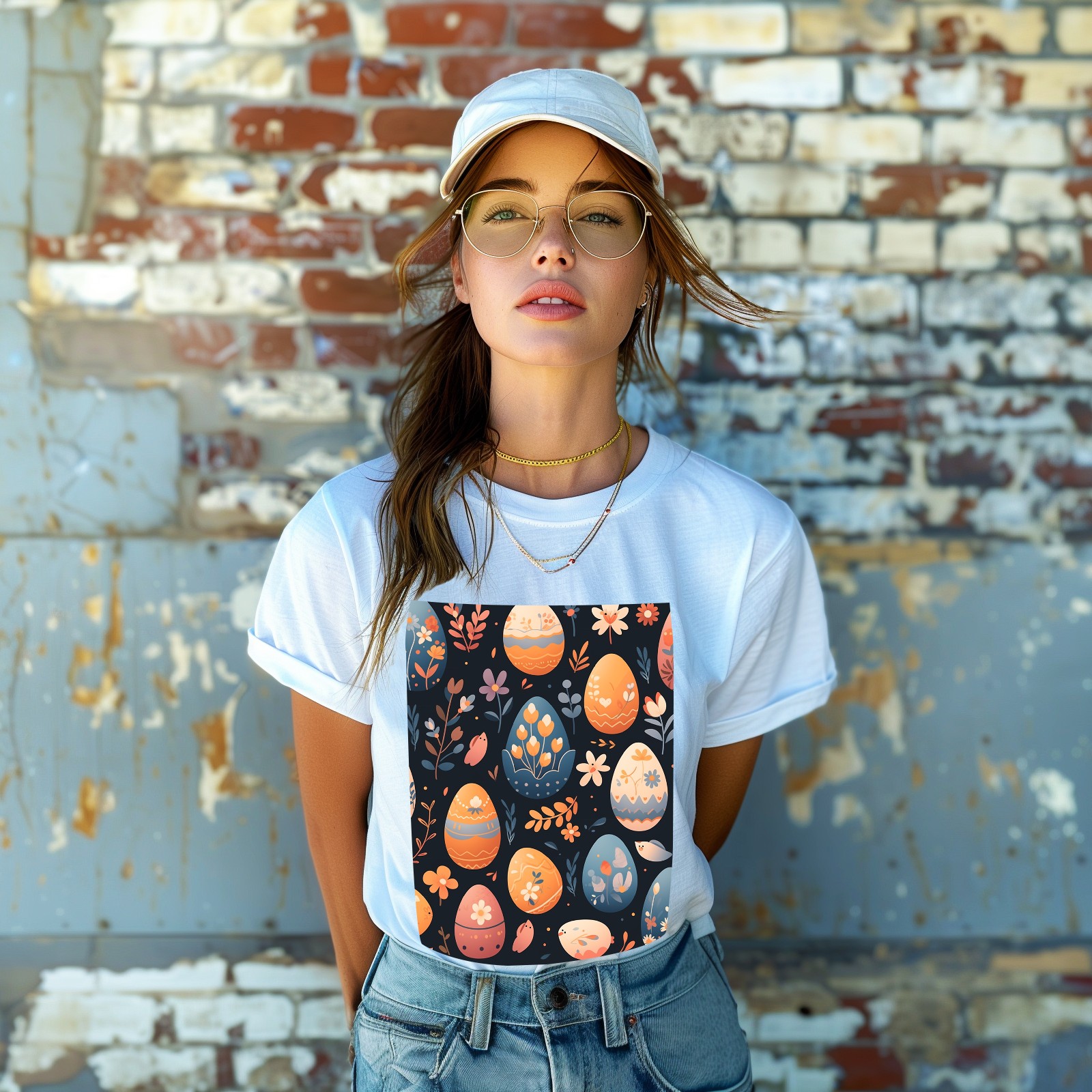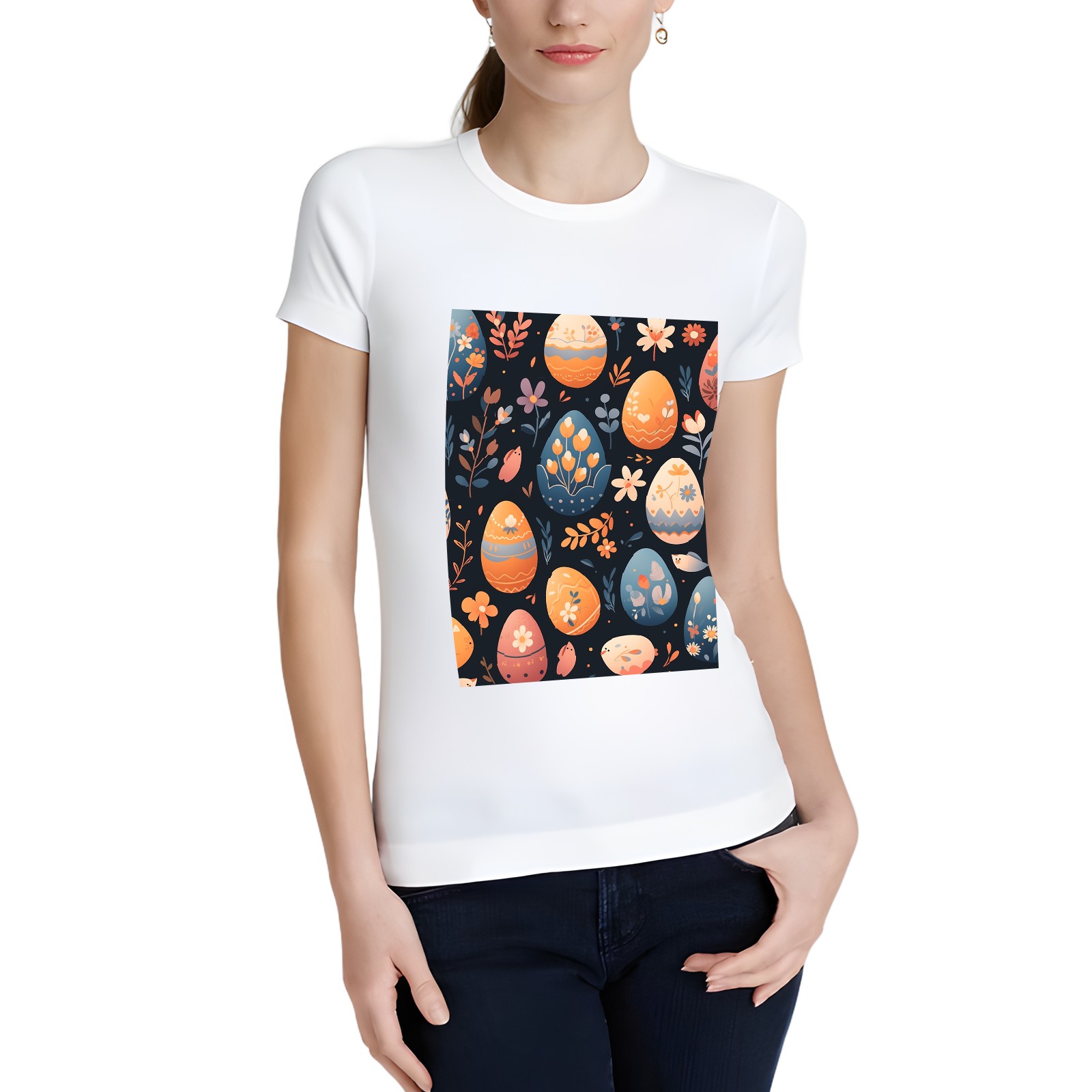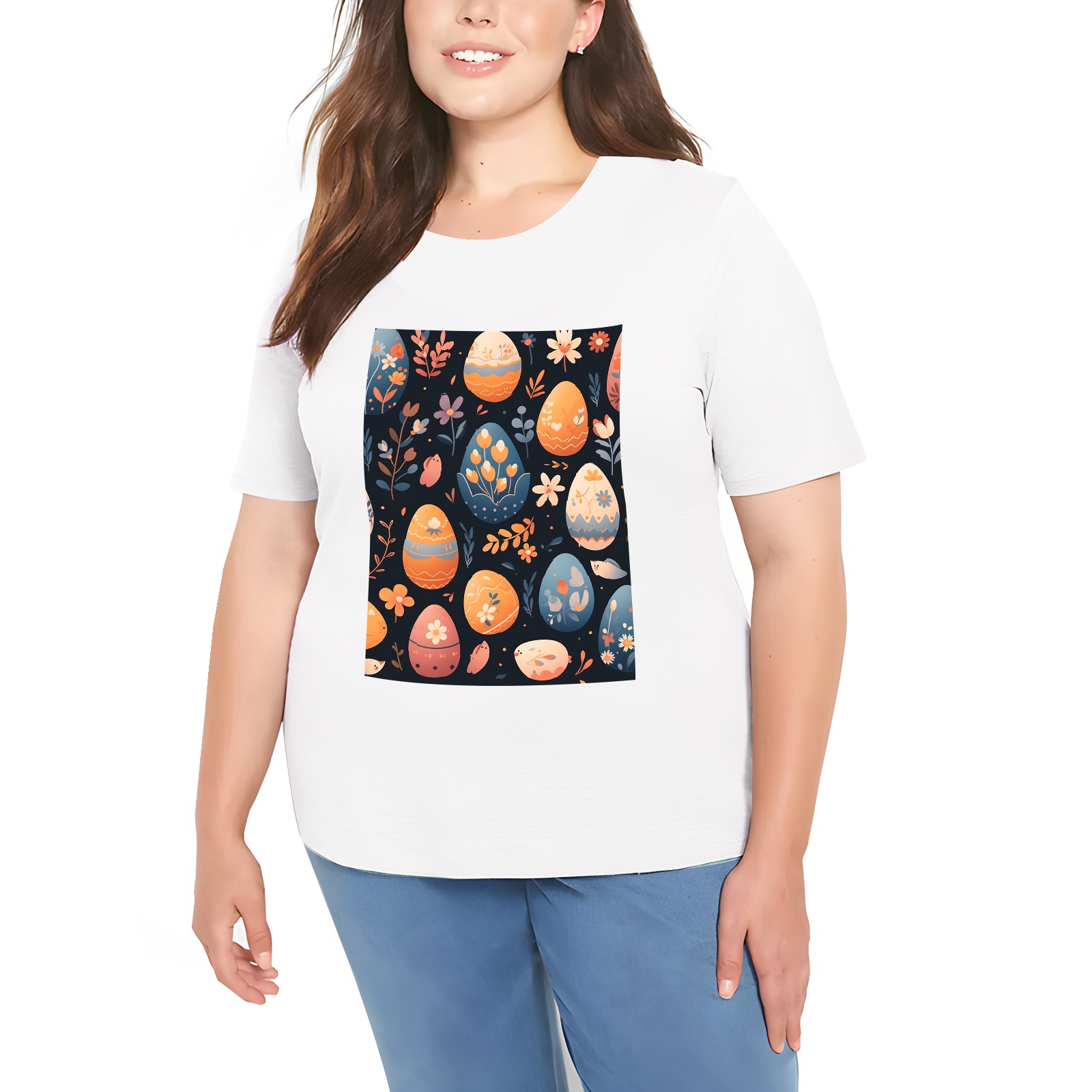 Basic Oversize Tees For WomenEaster Eggs (13) Loose Boyfriend Shirts Casual Blouse round neck