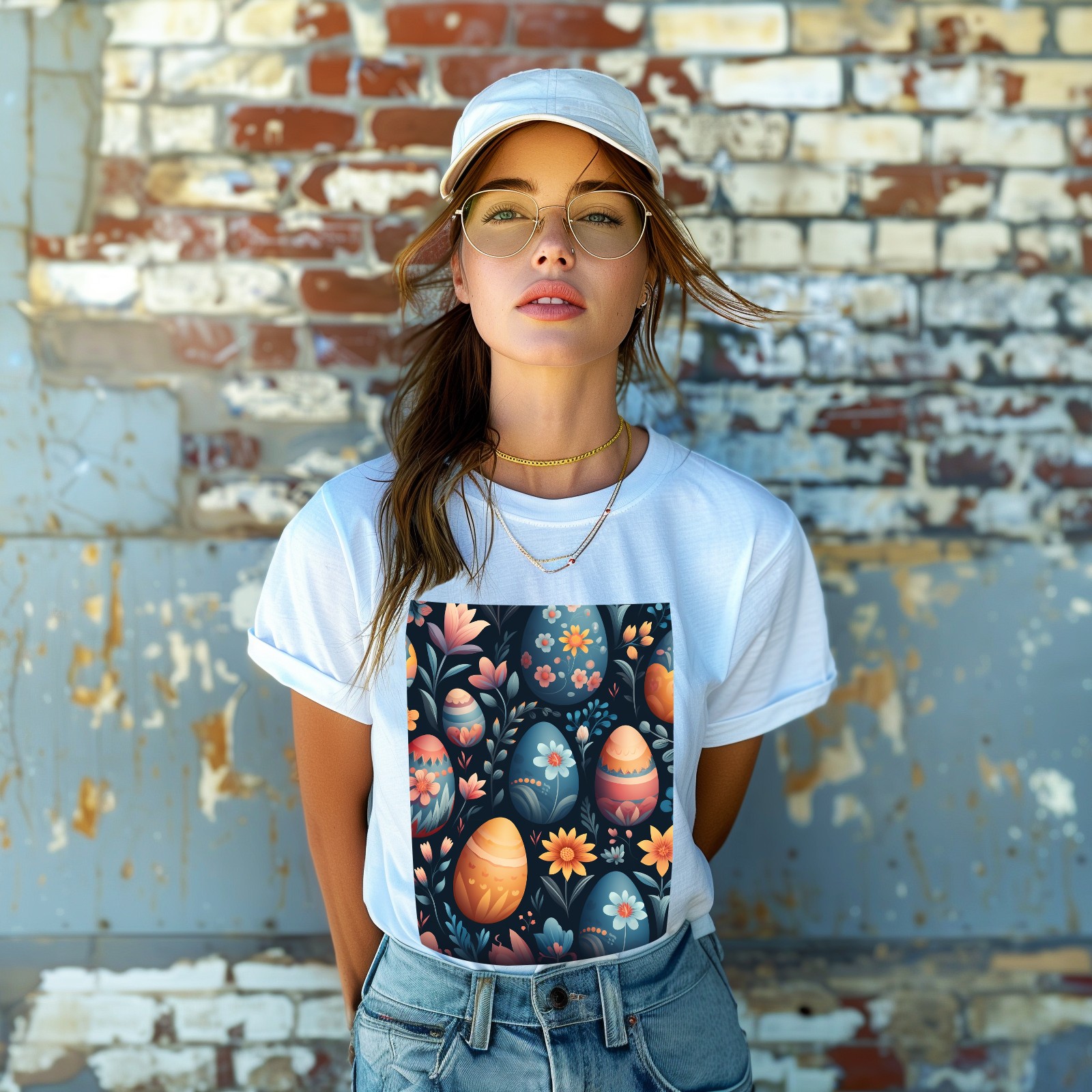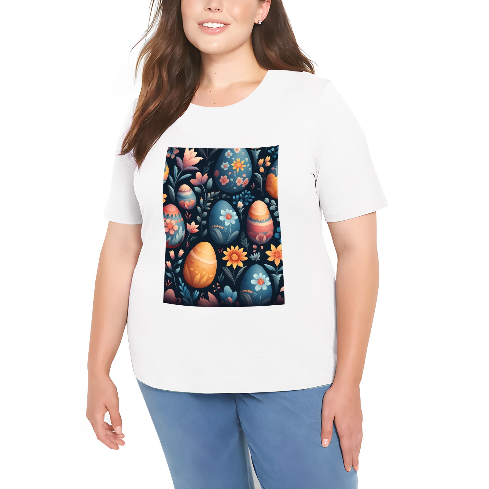 Basic Oversize Tees For WomenEaster Eggs (9) Loose Boyfriend Shirts Casual Blouse round neck