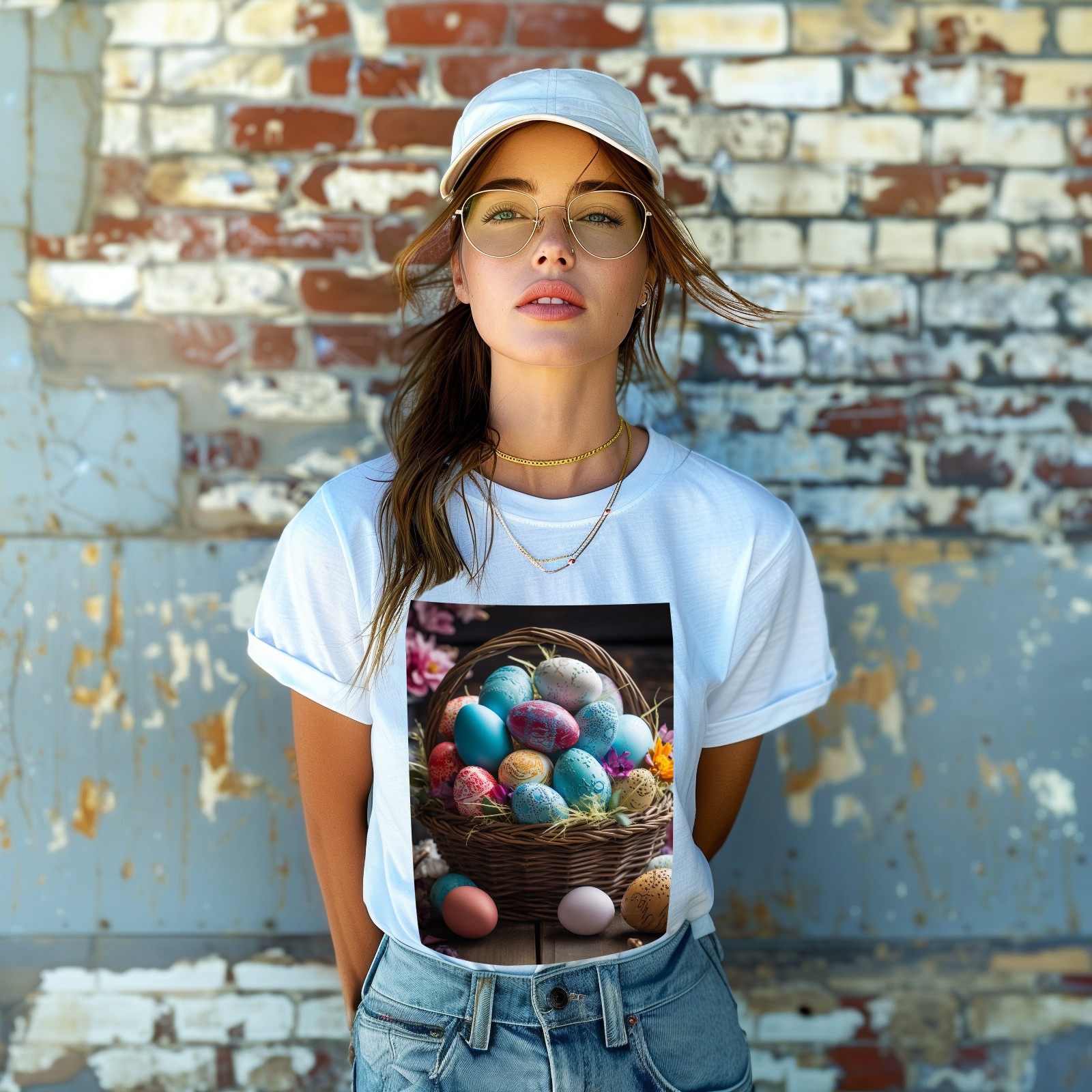Basic Oversize Tees For WomenEaster Eggs (8) Loose Boyfriend Shirts Casual Blouse round neck