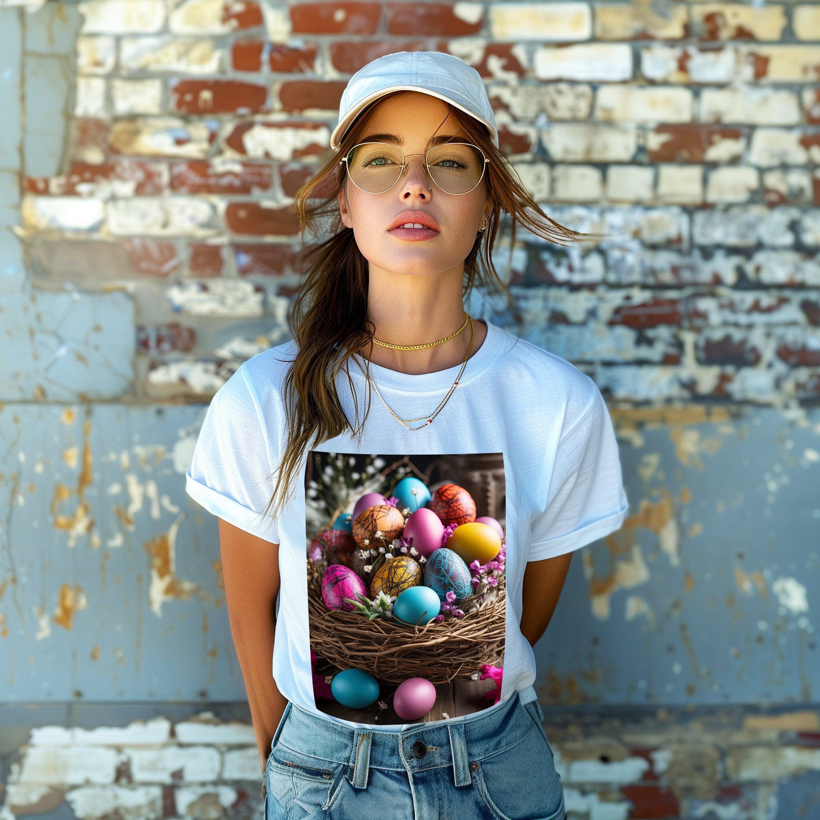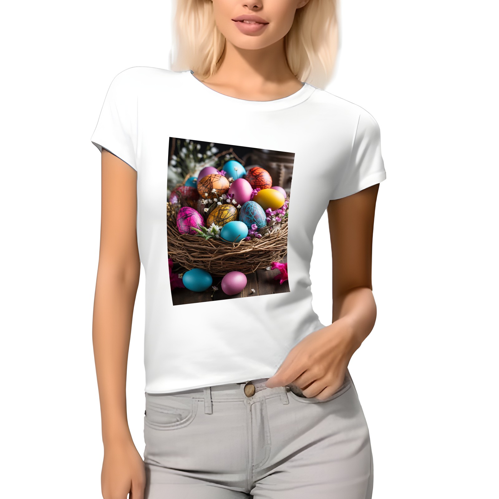 Basic Oversize Tees For WomenEaster Eggs (7) Loose Boyfriend Shirts Casual Blouse round neck
