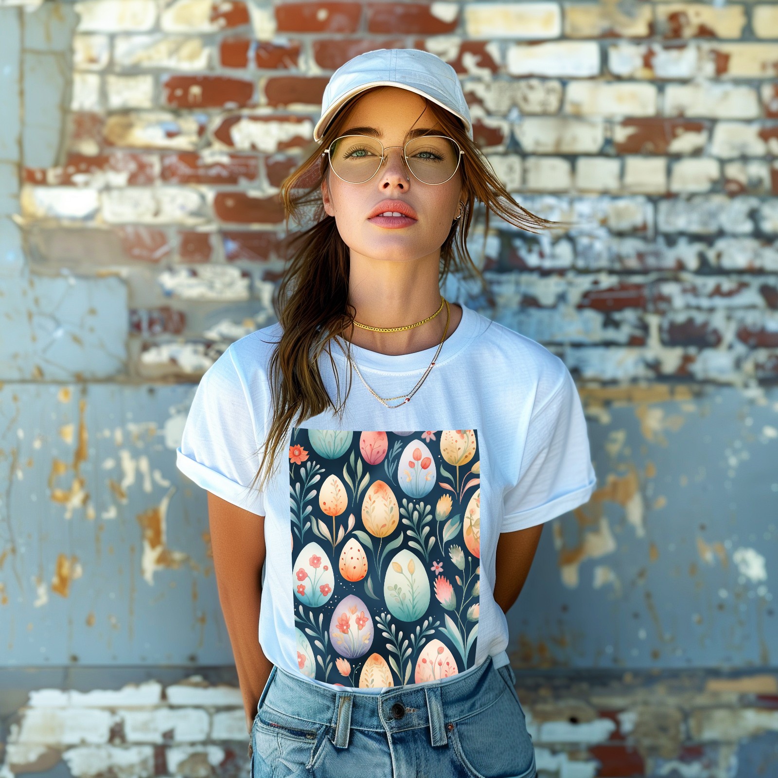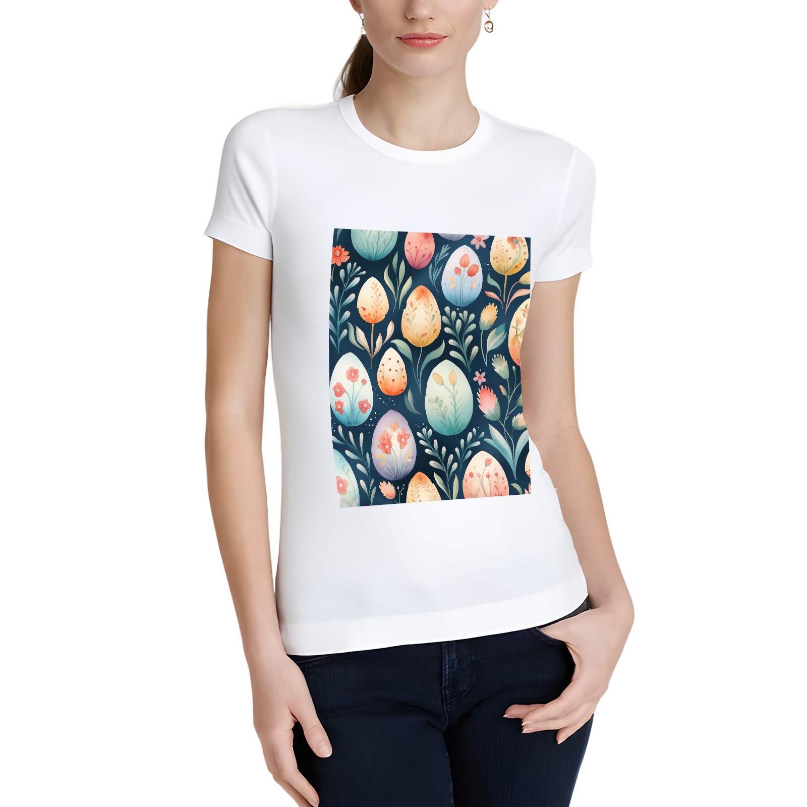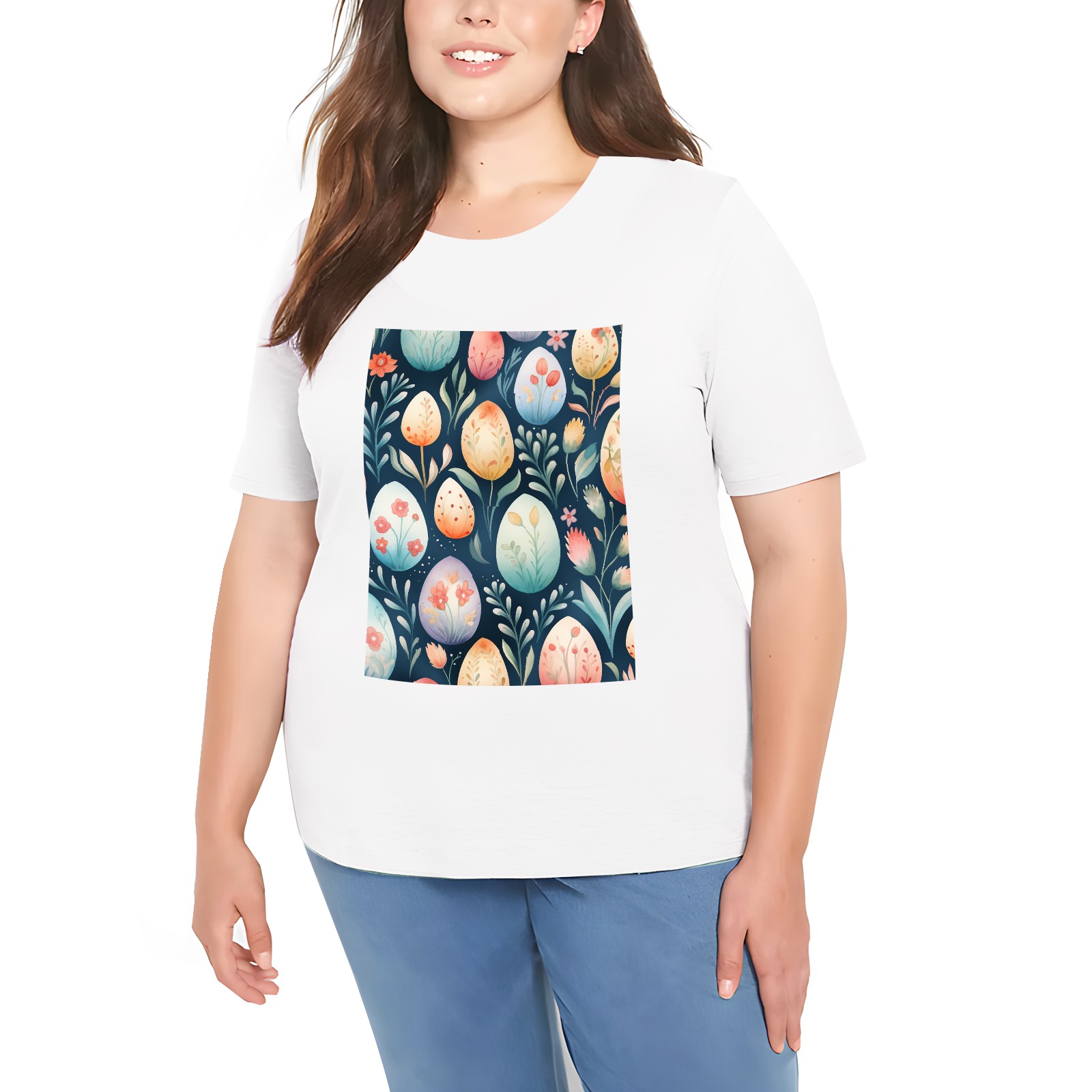 Basic Oversize Tees For WomenEaster Eggs (3) Loose Boyfriend Shirts Casual Blouse round neck