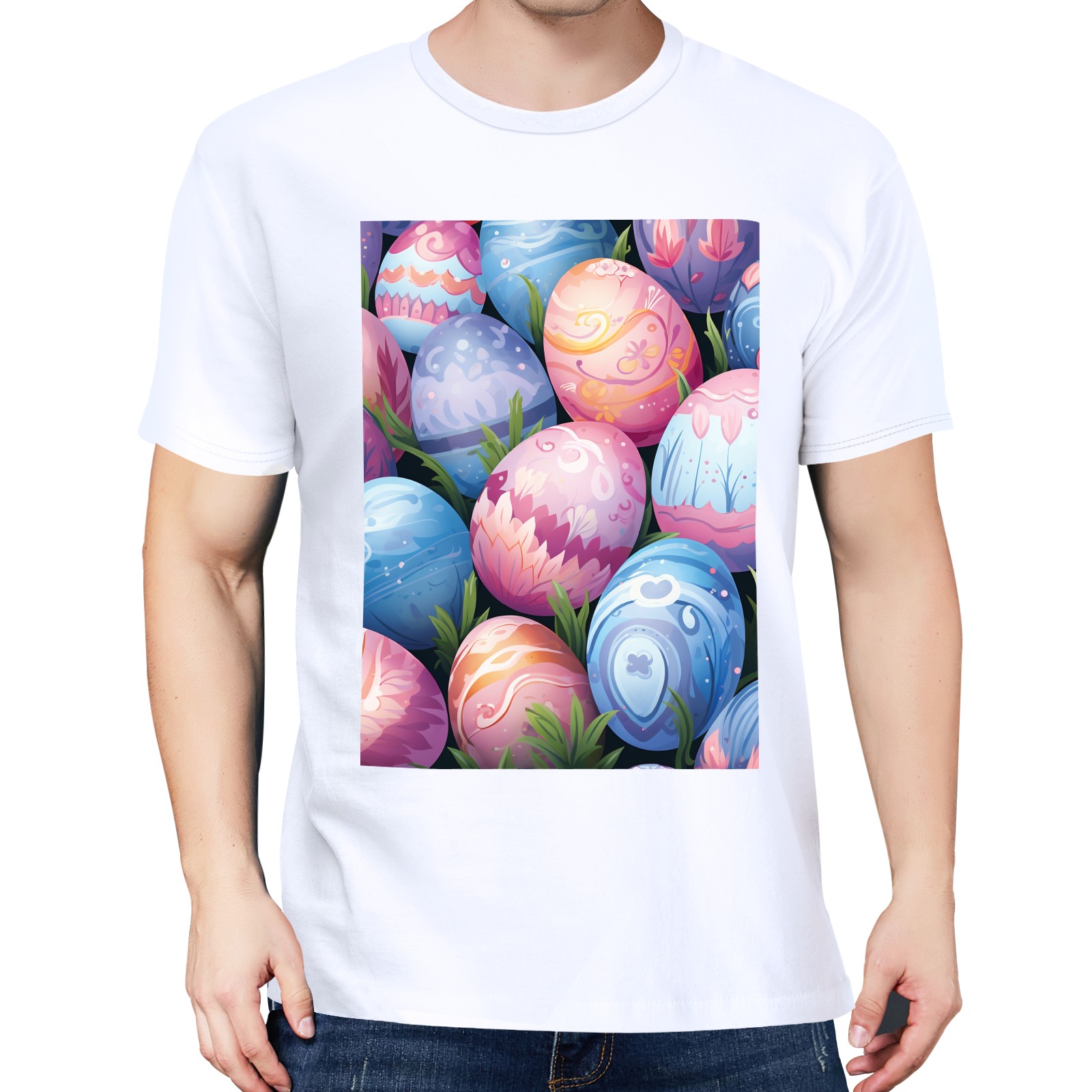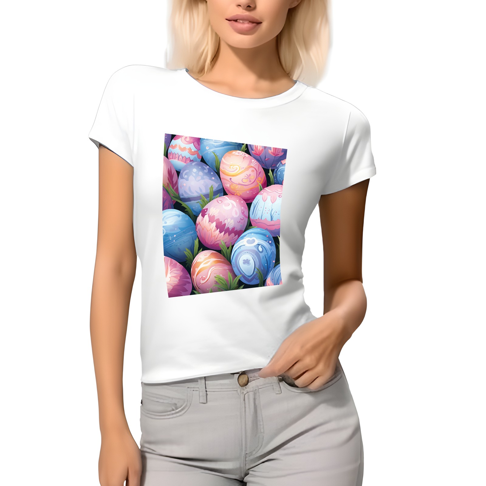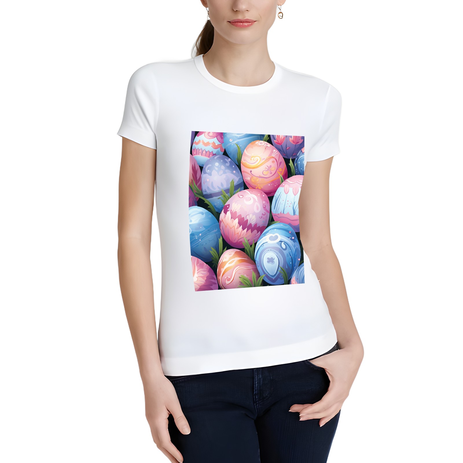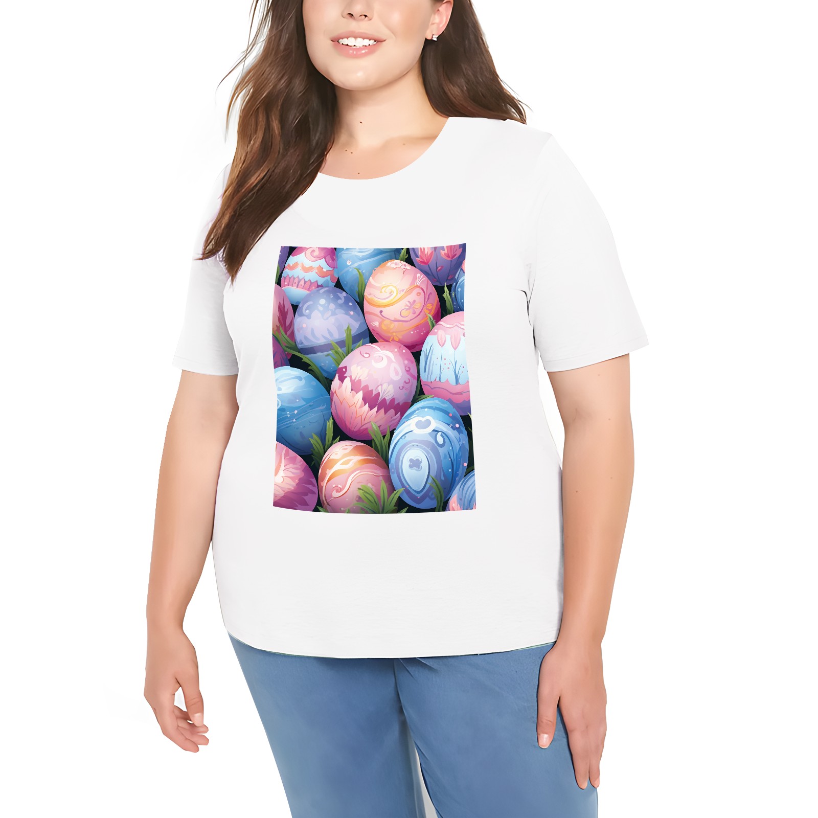 Basic Oversize Tees For WomenEaster Eggs (2) Loose Boyfriend Shirts Casual Blouse round neck