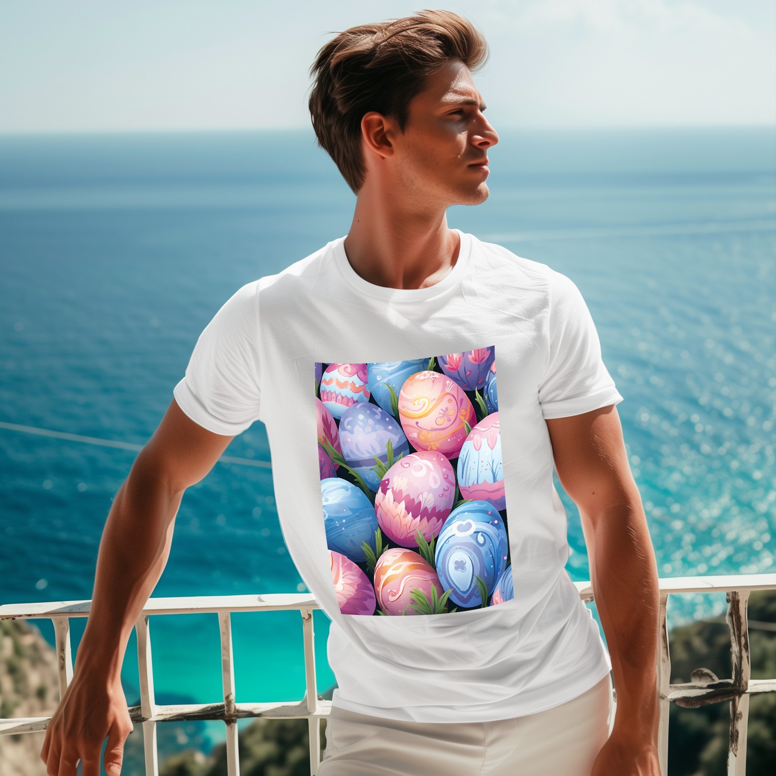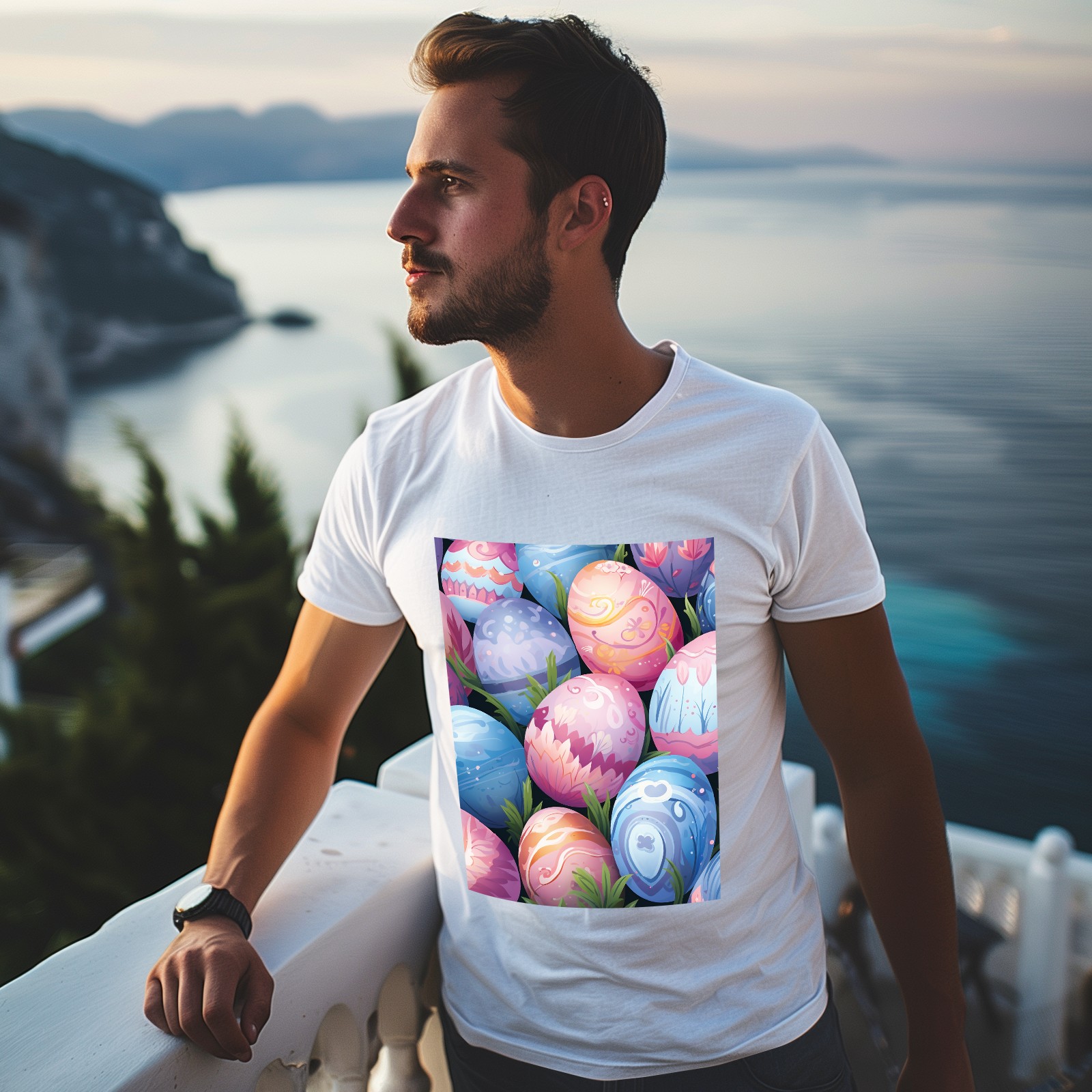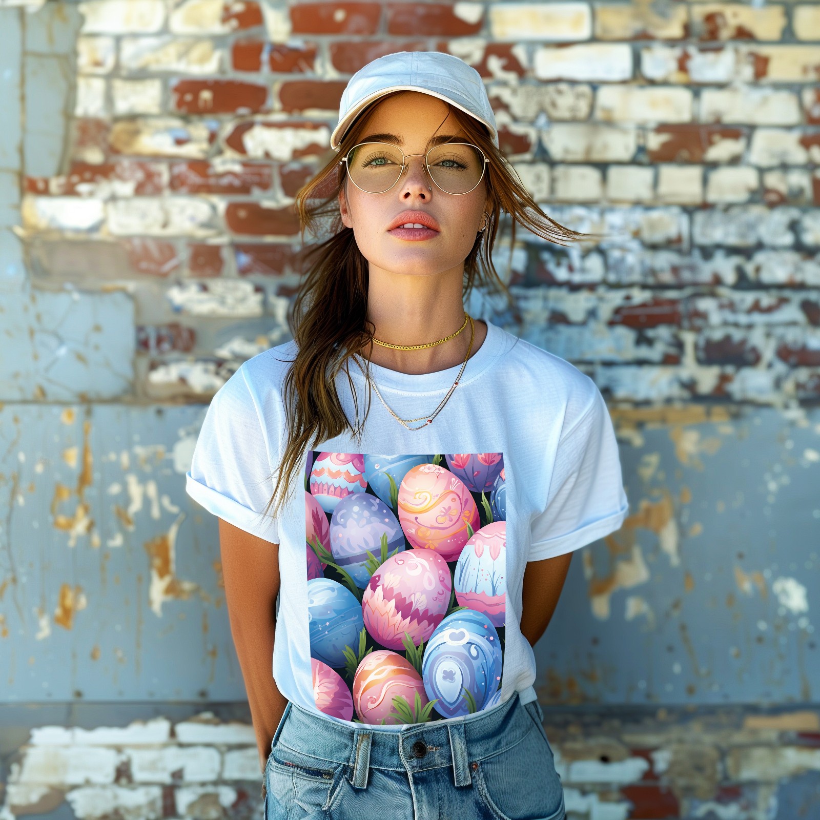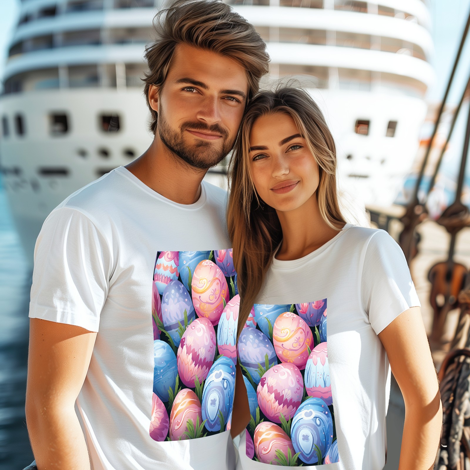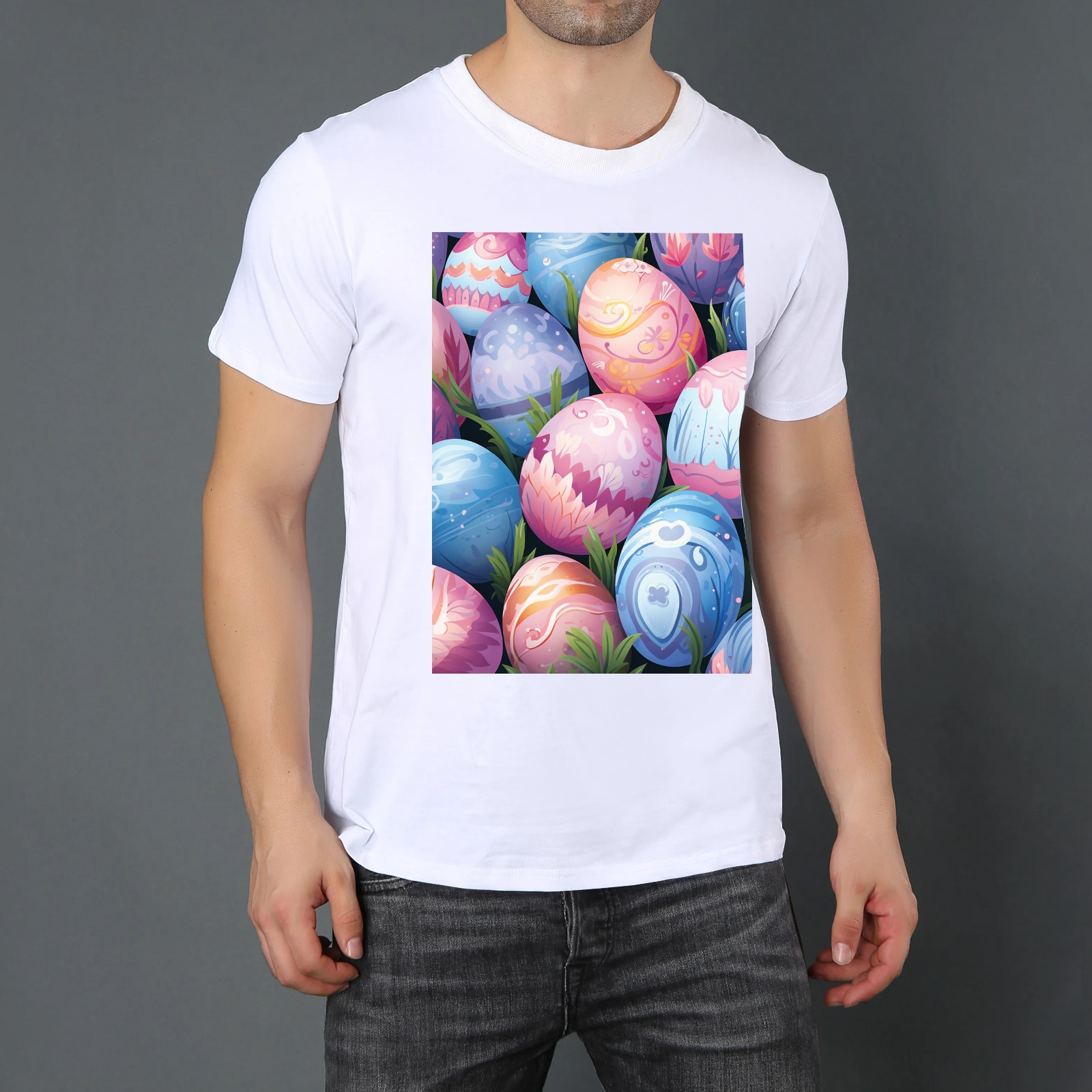 Basic Oversize Tees For WomenEaster Eggs (2) Loose Boyfriend Shirts Casual Blouse round neck