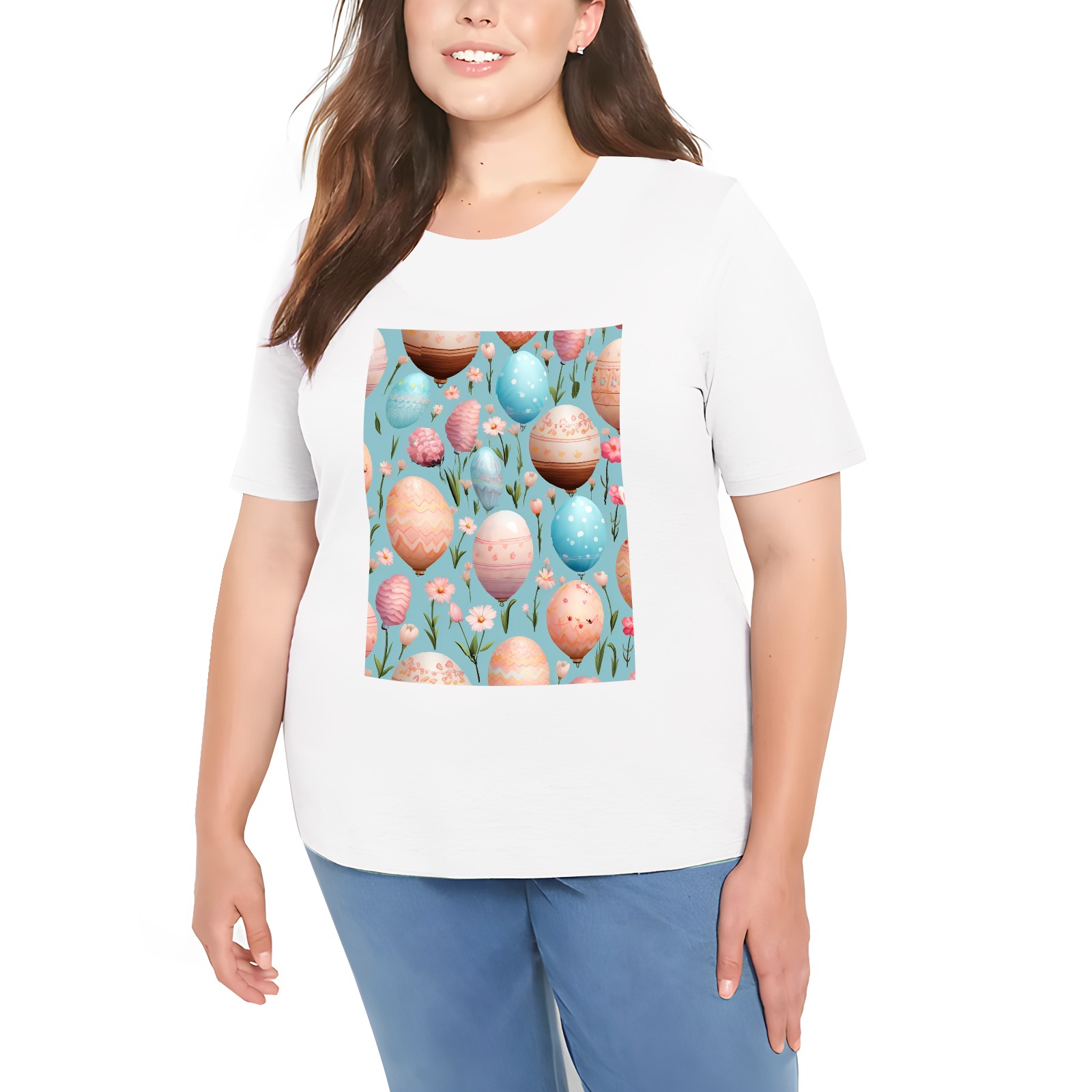 Basic Oversize Tees For WomenEaster (11) Loose Boyfriend Shirts Casual Blouse round neck