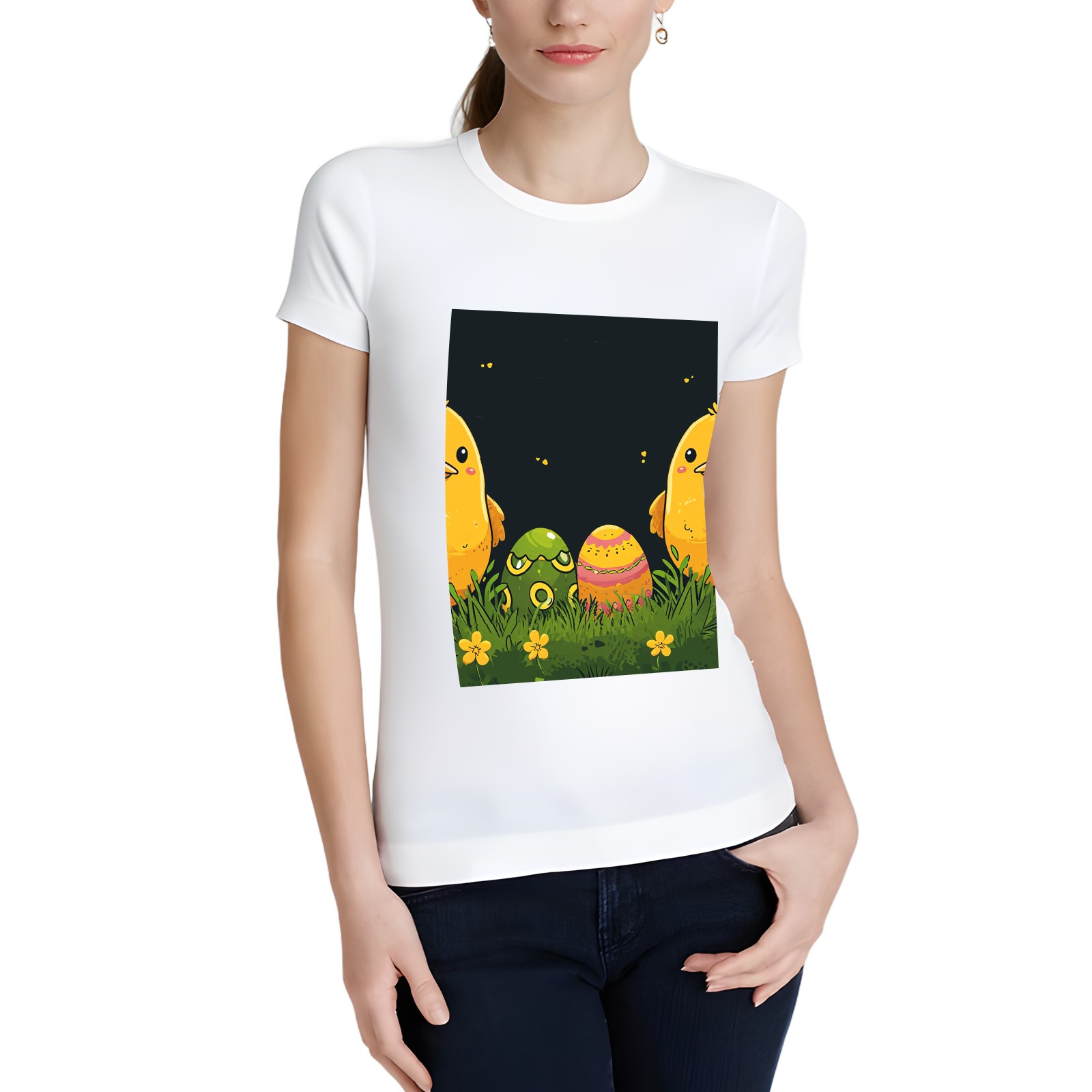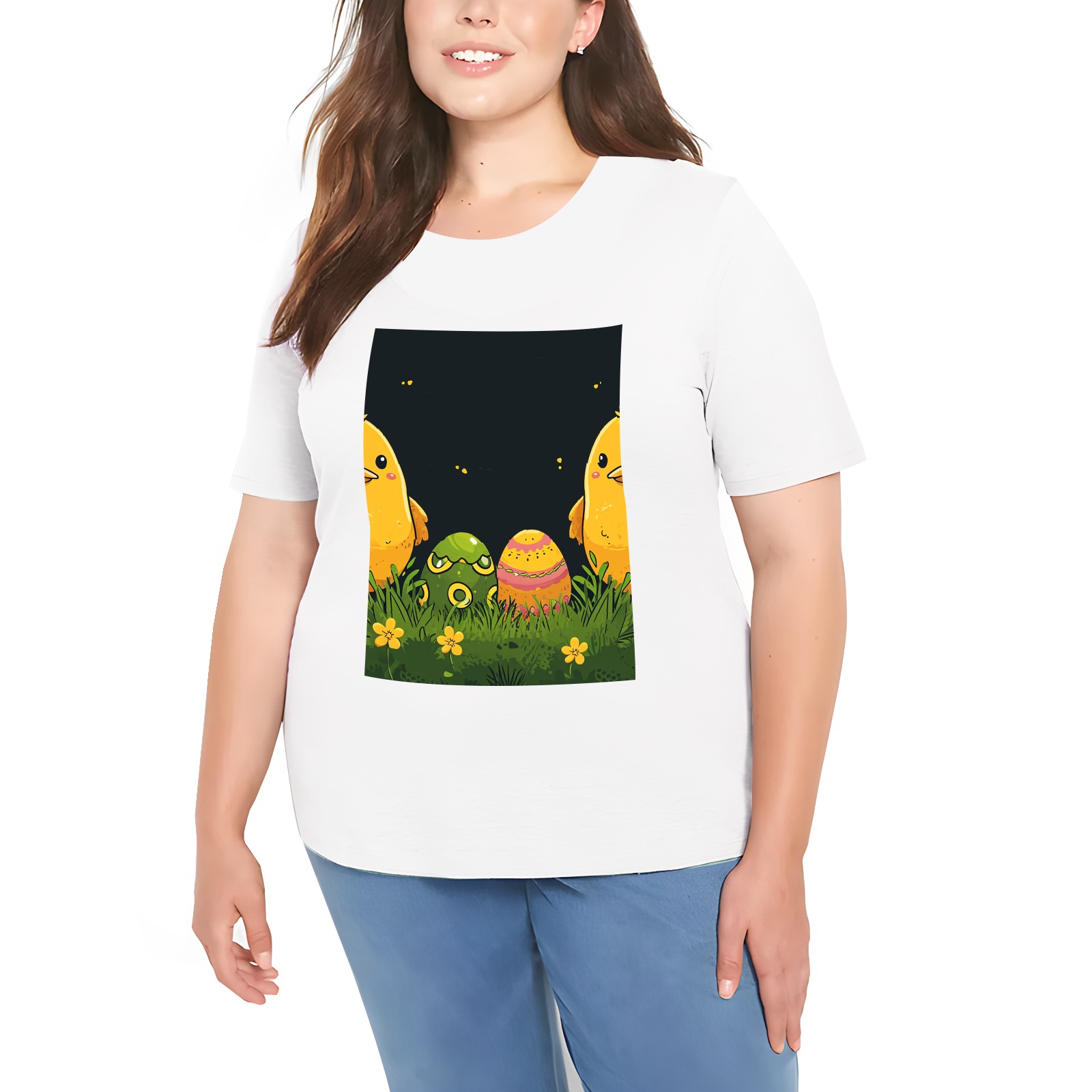 Basic Oversize Tees For WomenEaster (9) Loose Boyfriend Shirts Casual Blouse round neck