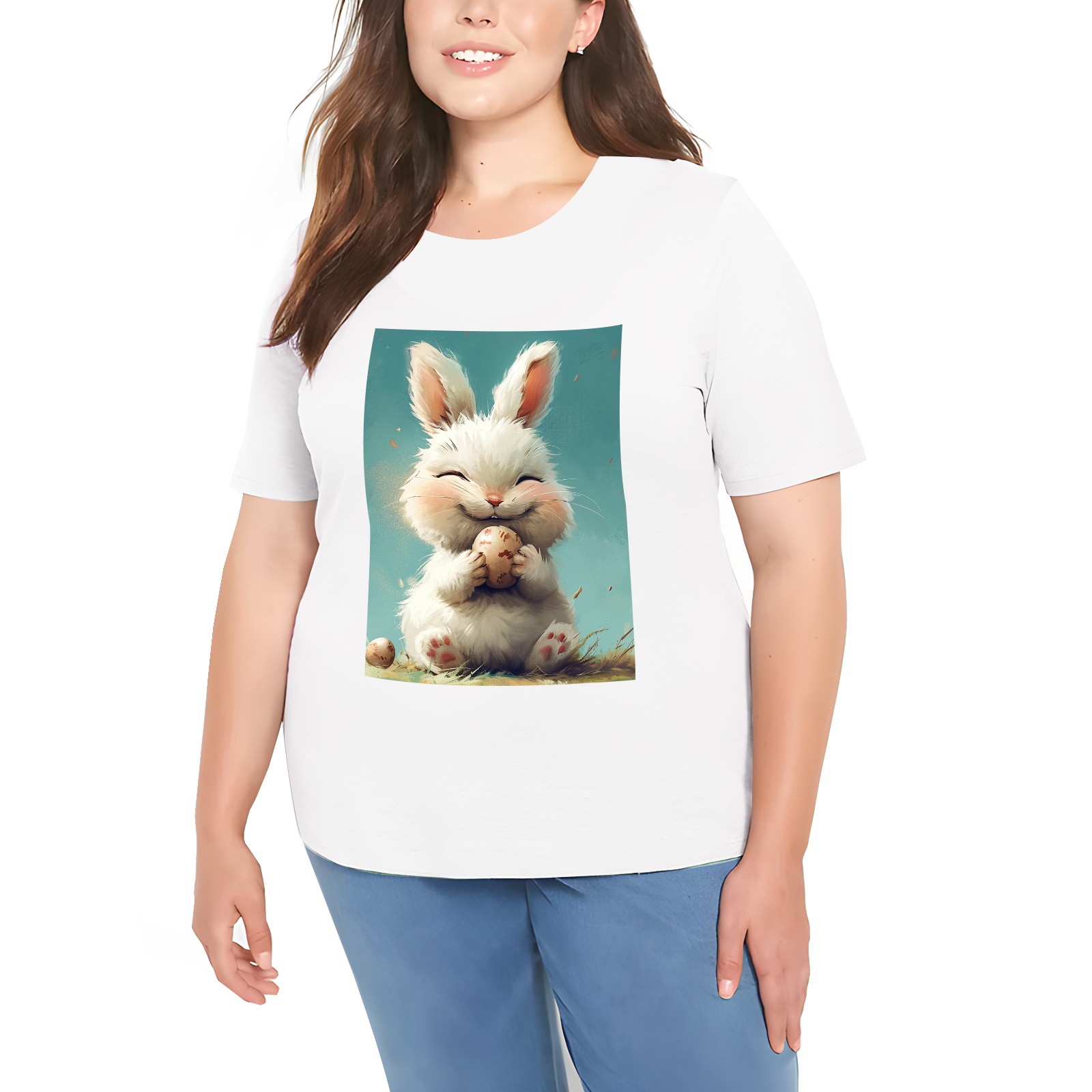 Basic Oversize Tees For WomenEaster (3) Loose Boyfriend Shirts Casual Blouse round neck