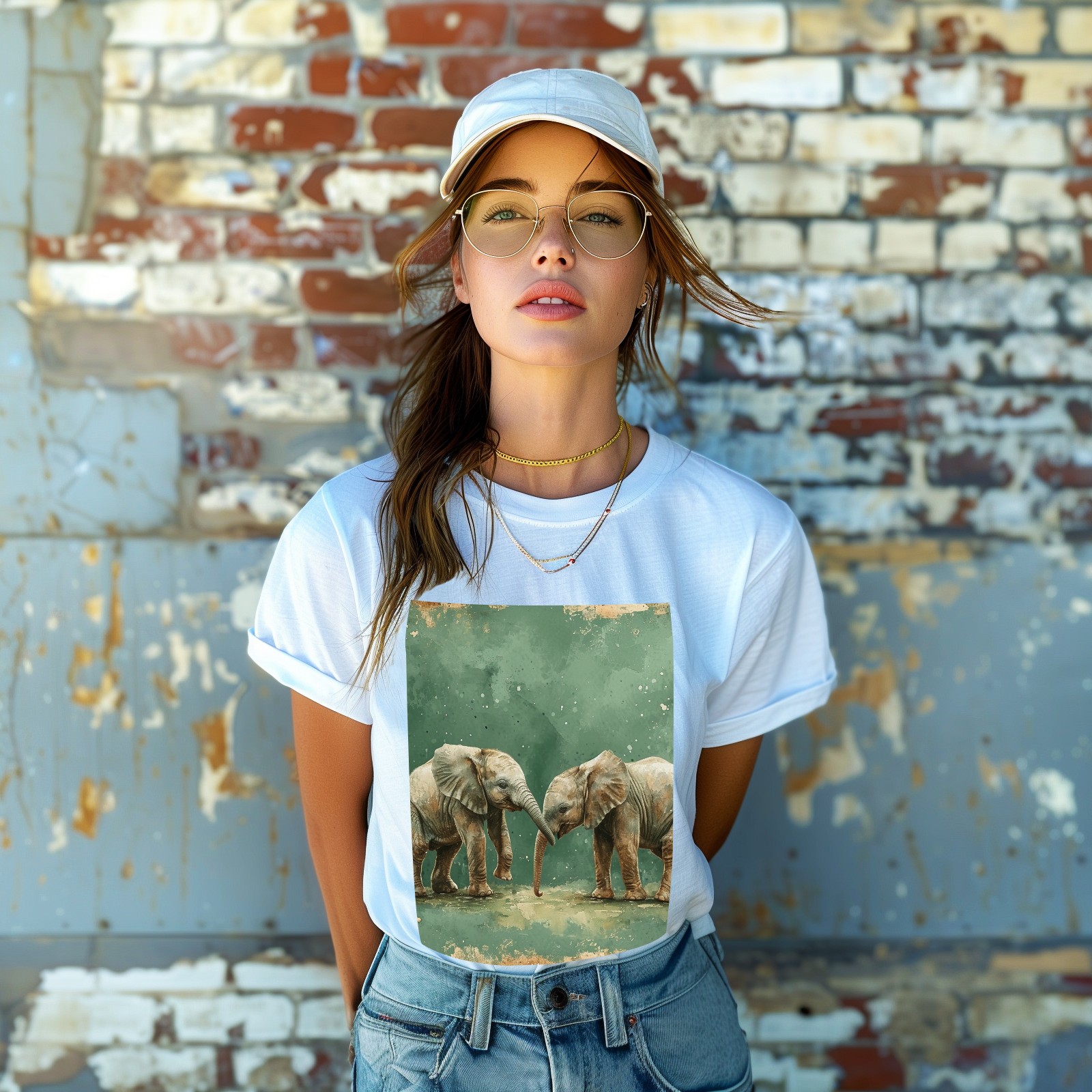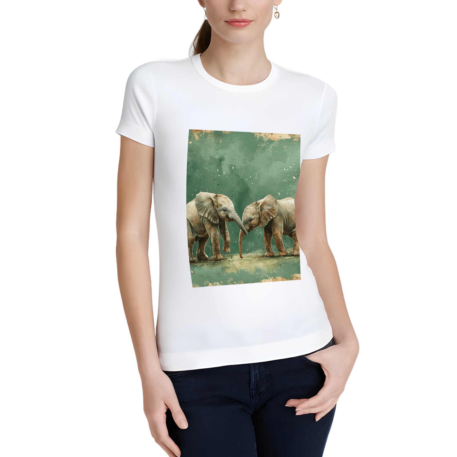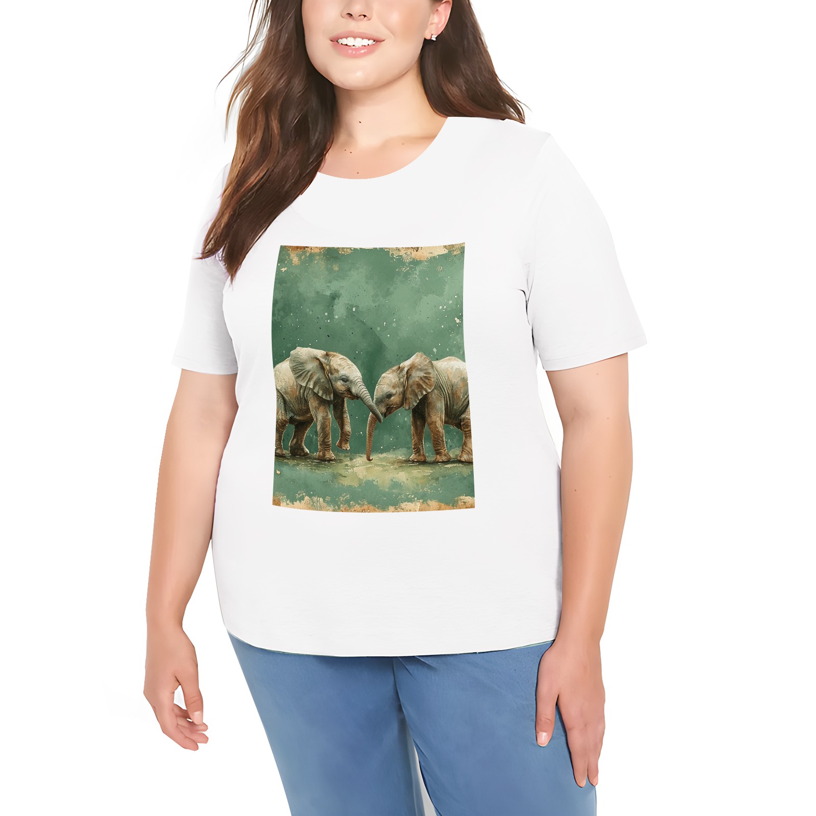 Basic Oversize Tees For WomenCute Elephants (14) Loose Boyfriend Shirts Casual Blouse round neck