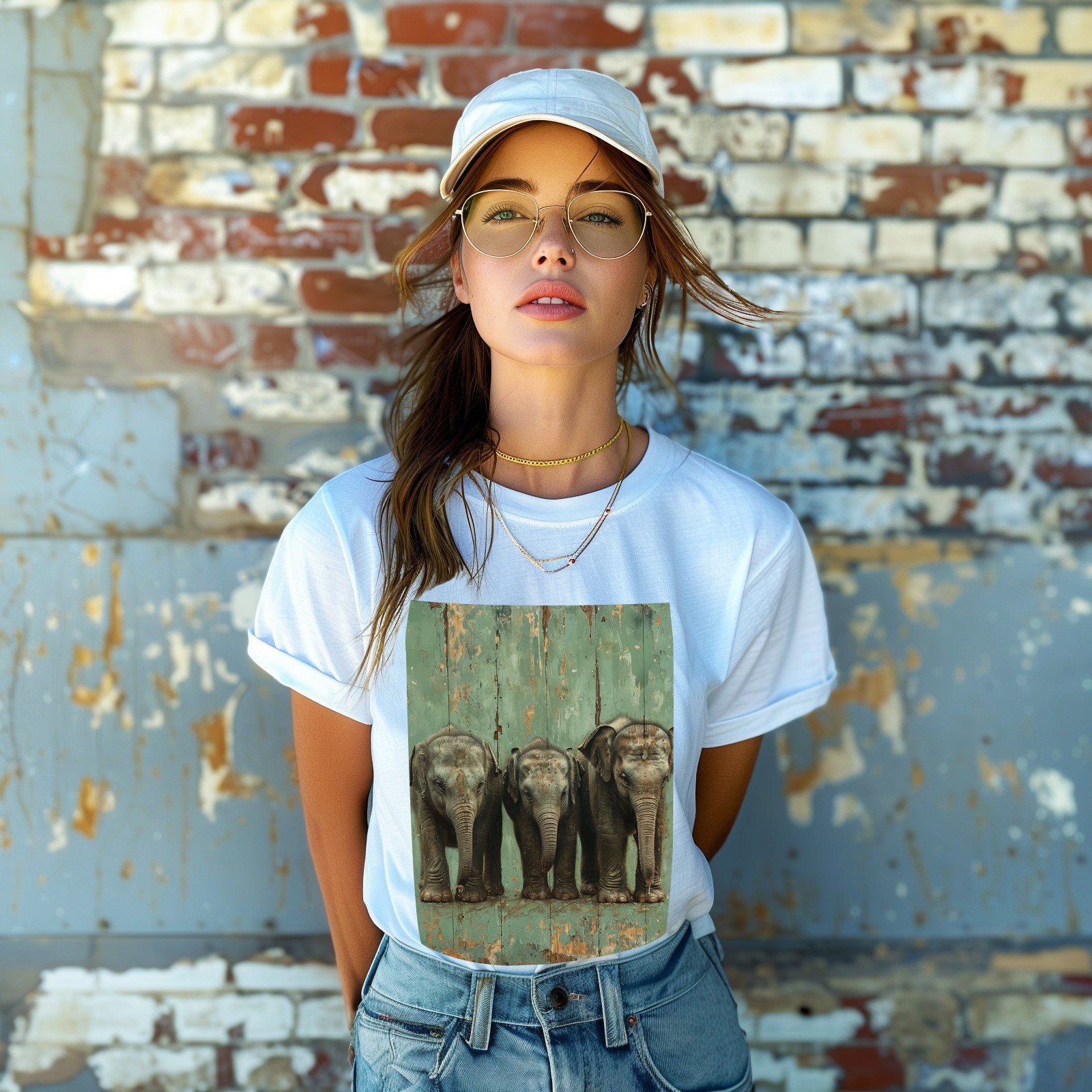 Basic Oversize Tees For WomenCute Elephants (9) Loose Boyfriend Shirts Casual Blouse round neck