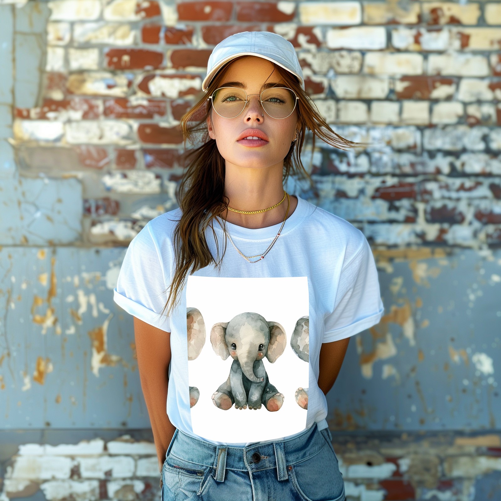 Basic Oversize Tees For WomenCute Elephants (10) Loose Boyfriend Shirts Casual Blouse round neck