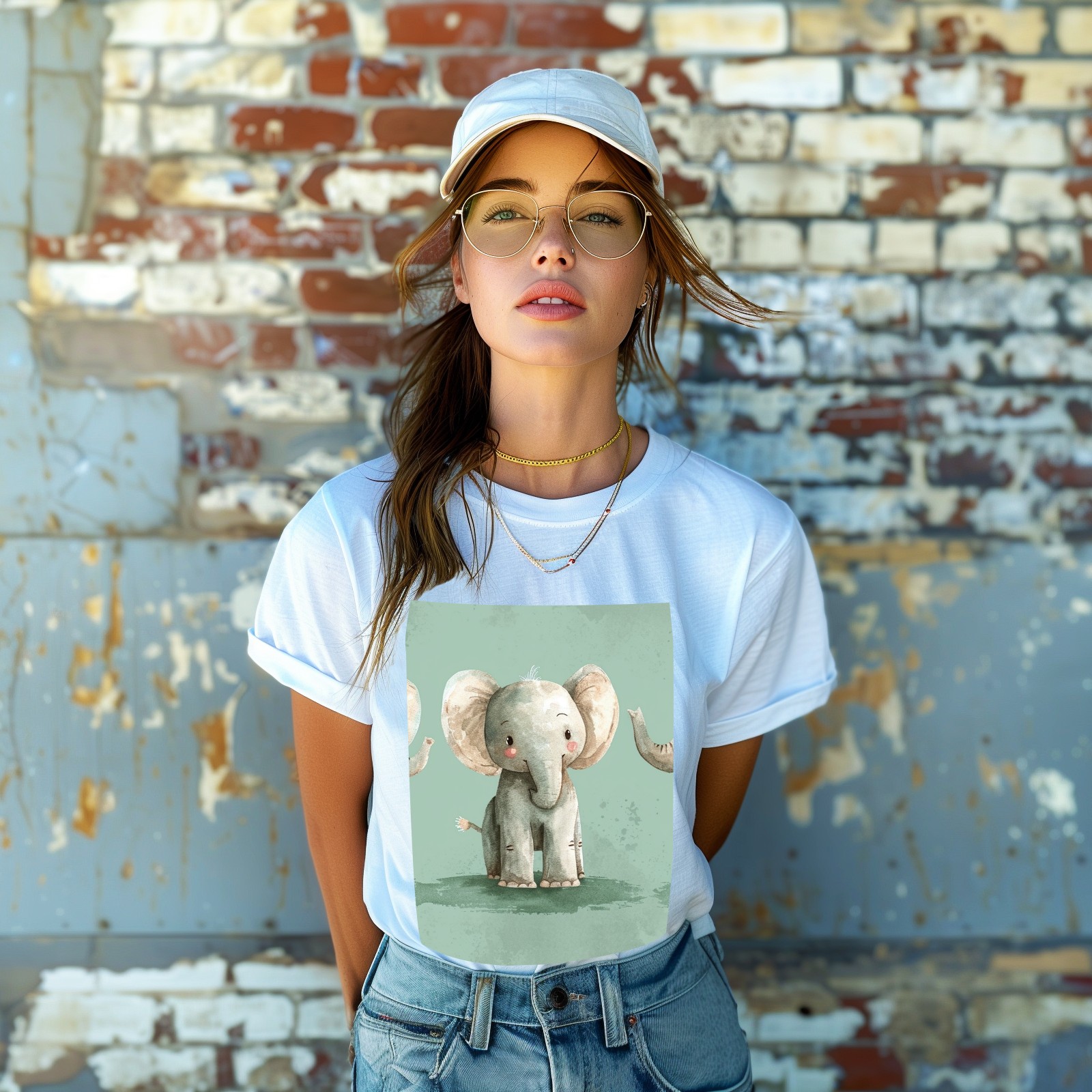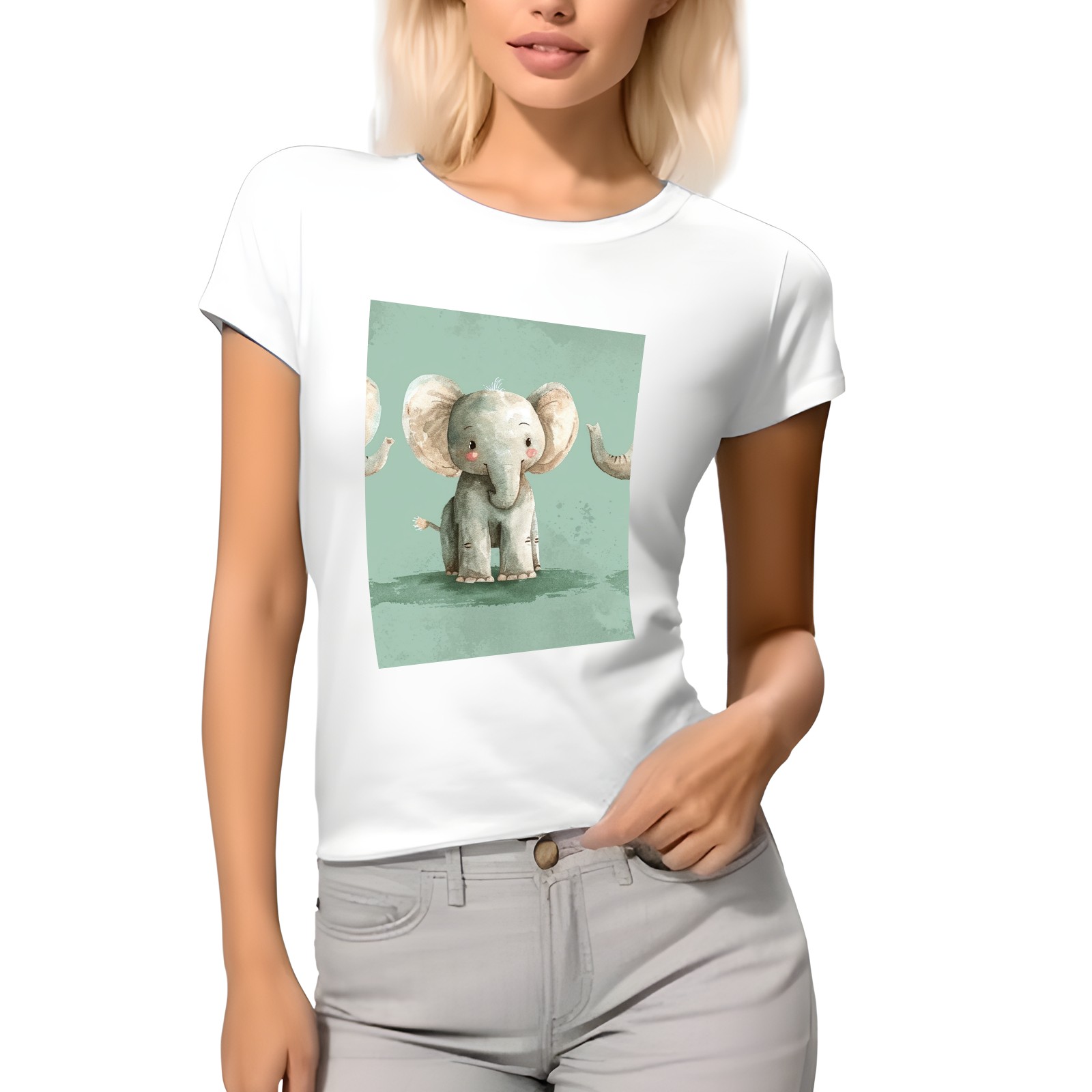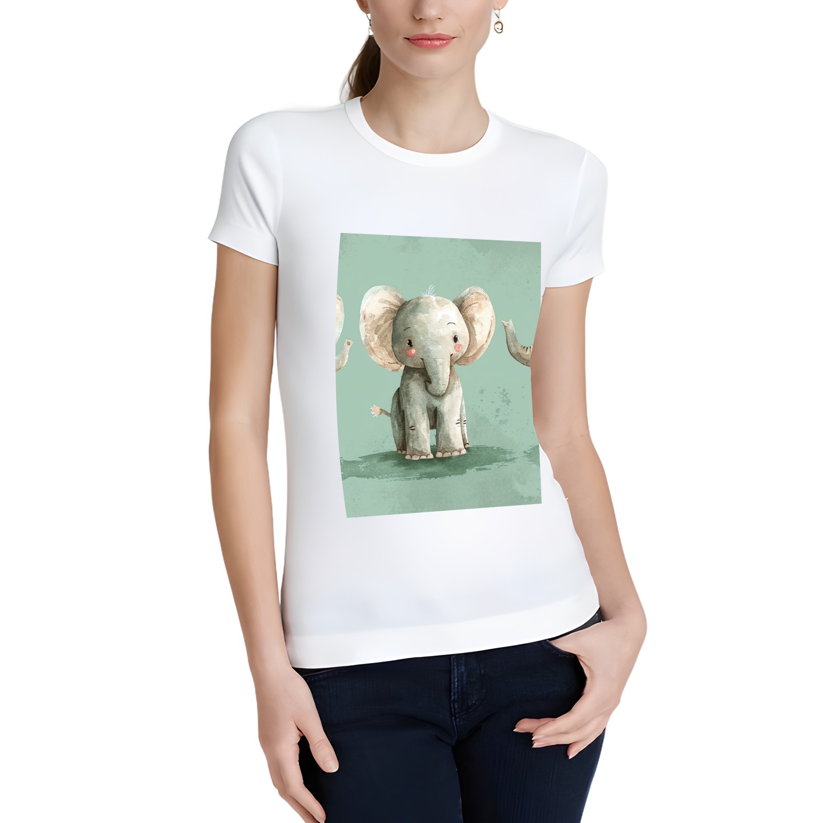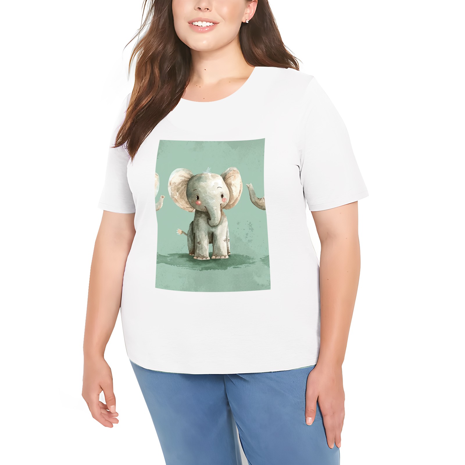 Basic Oversize Tees For WomenCute Elephants (7) Loose Boyfriend Shirts Casual Blouse round neck