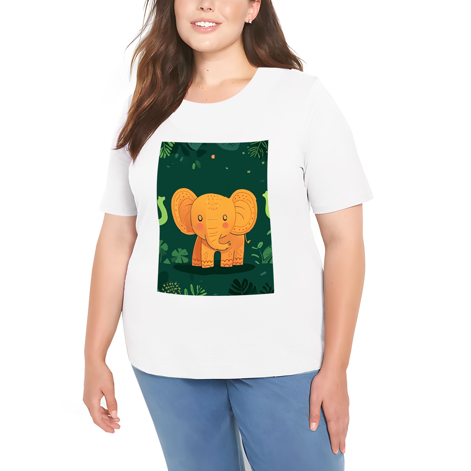 Basic Oversize Tees For WomenCute Elephants (3) Loose Boyfriend Shirts Casual Blouse round neck