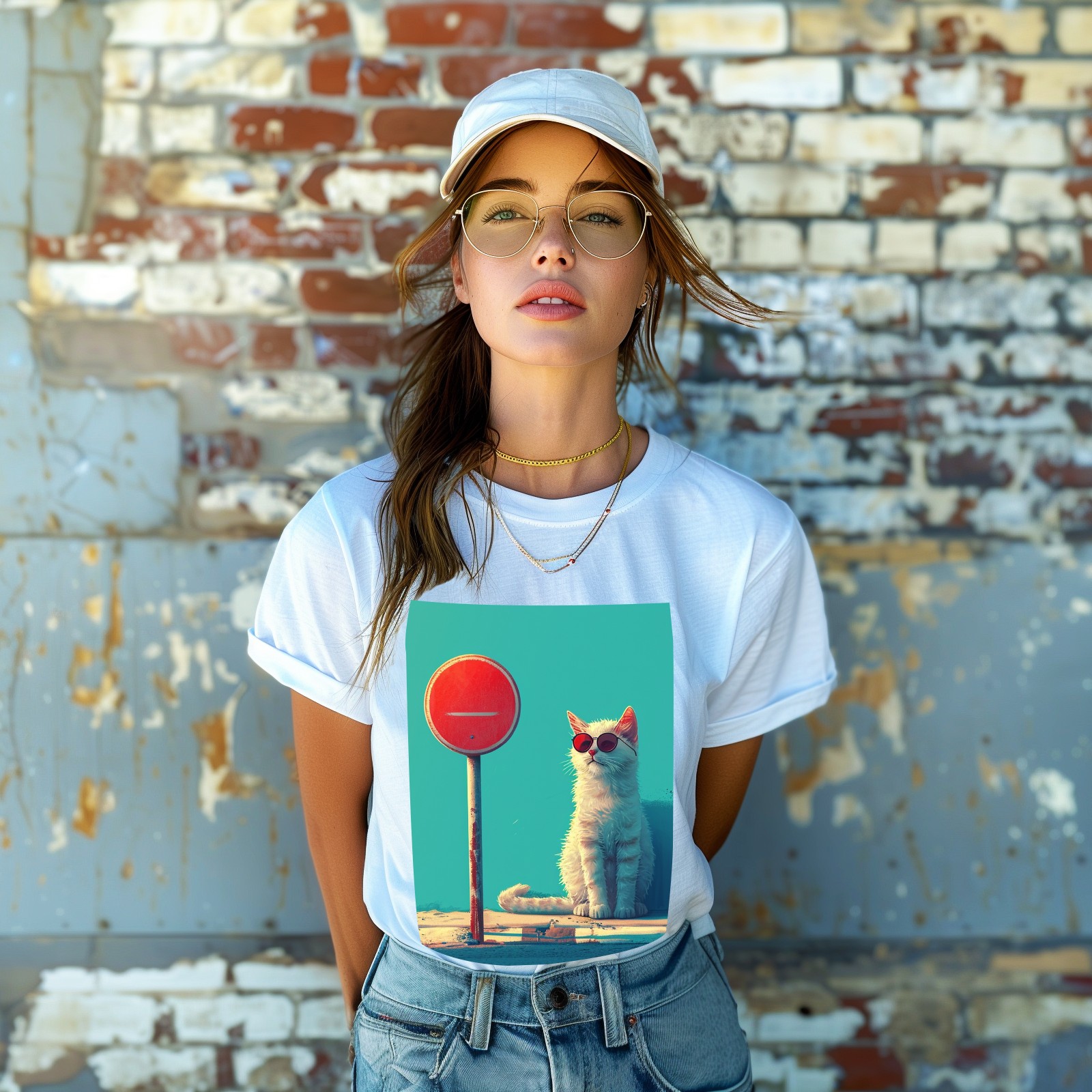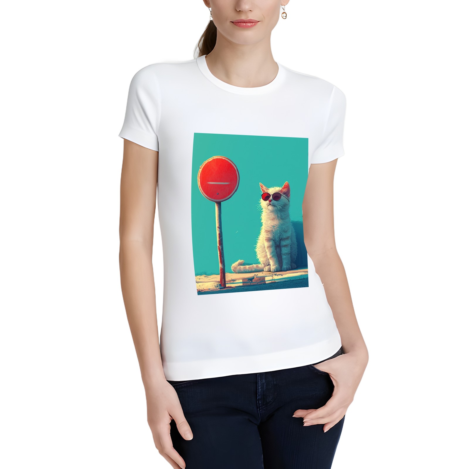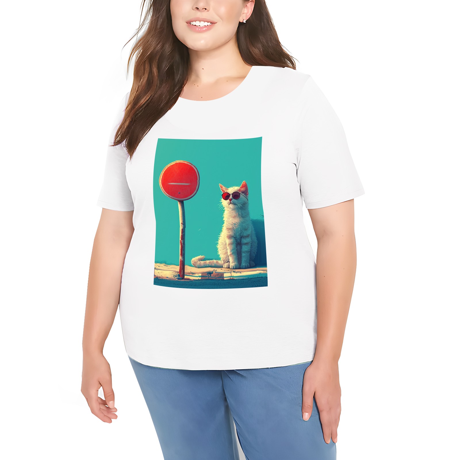 Basic Oversize Tees For WomenCute Cat (3) Loose Boyfriend Shirts Casual Blouse round neck