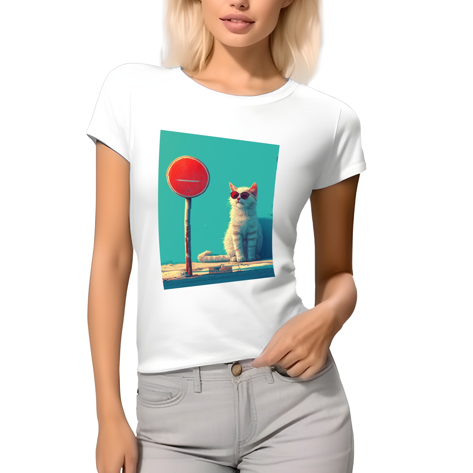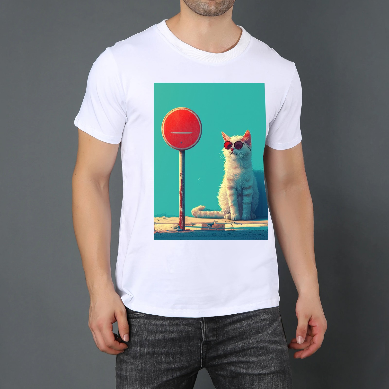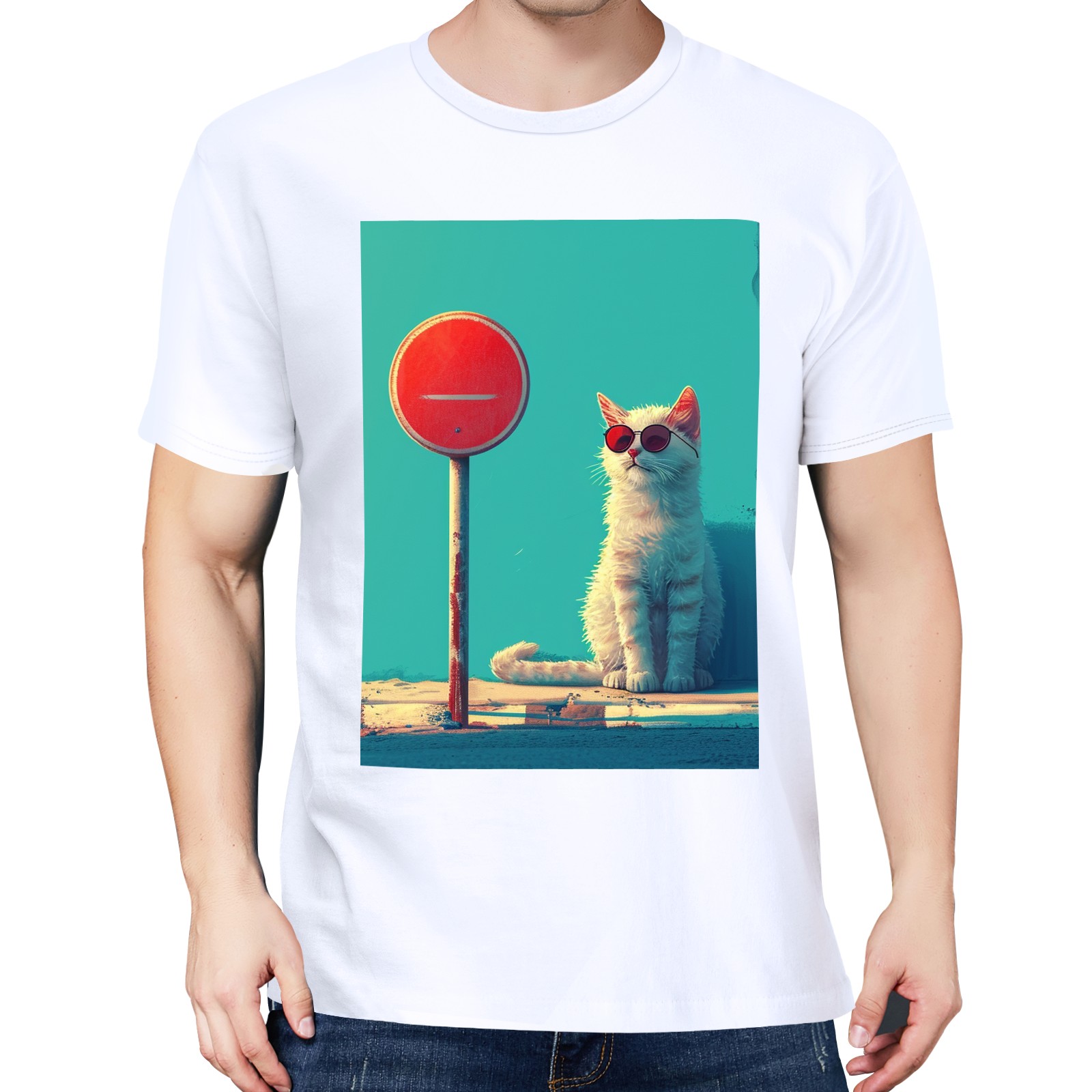 Basic Oversize Tees For WomenCute Cat (3) Loose Boyfriend Shirts Casual Blouse round neck