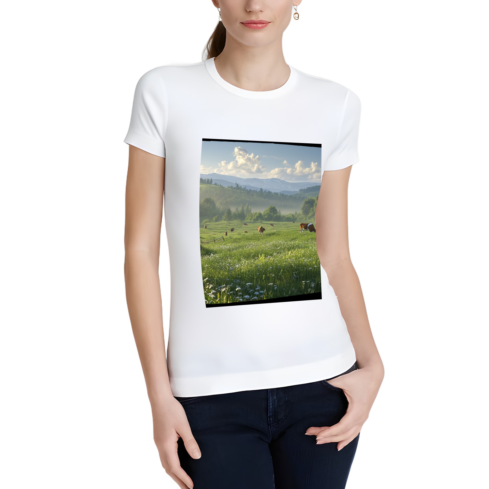 Basic Oversize Tees For WomenCow (1) Loose Boyfriend Shirts Casual Blouse round neck