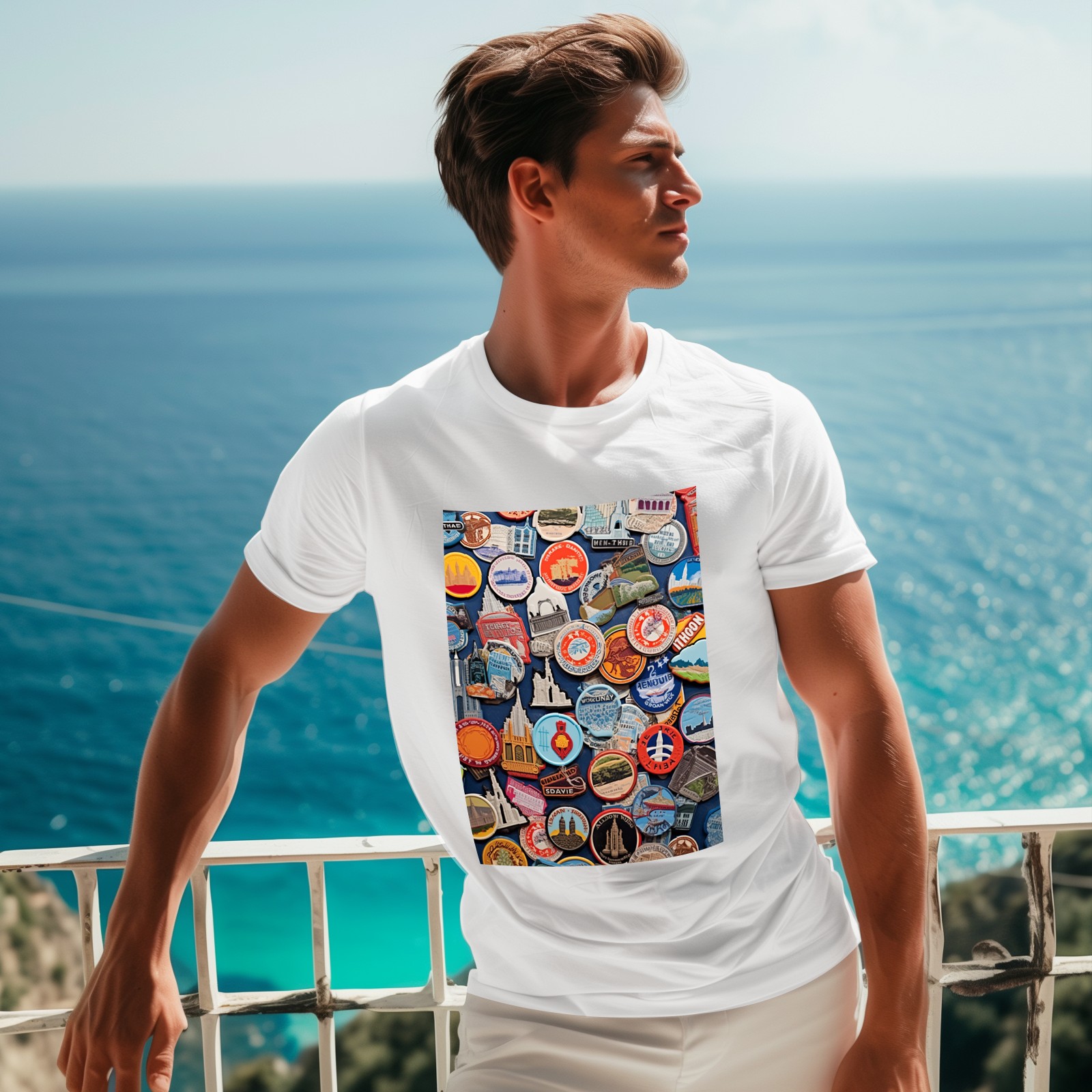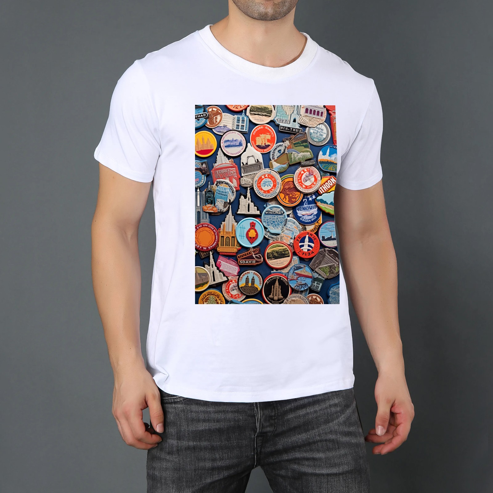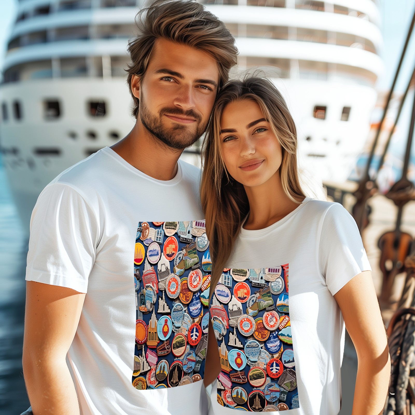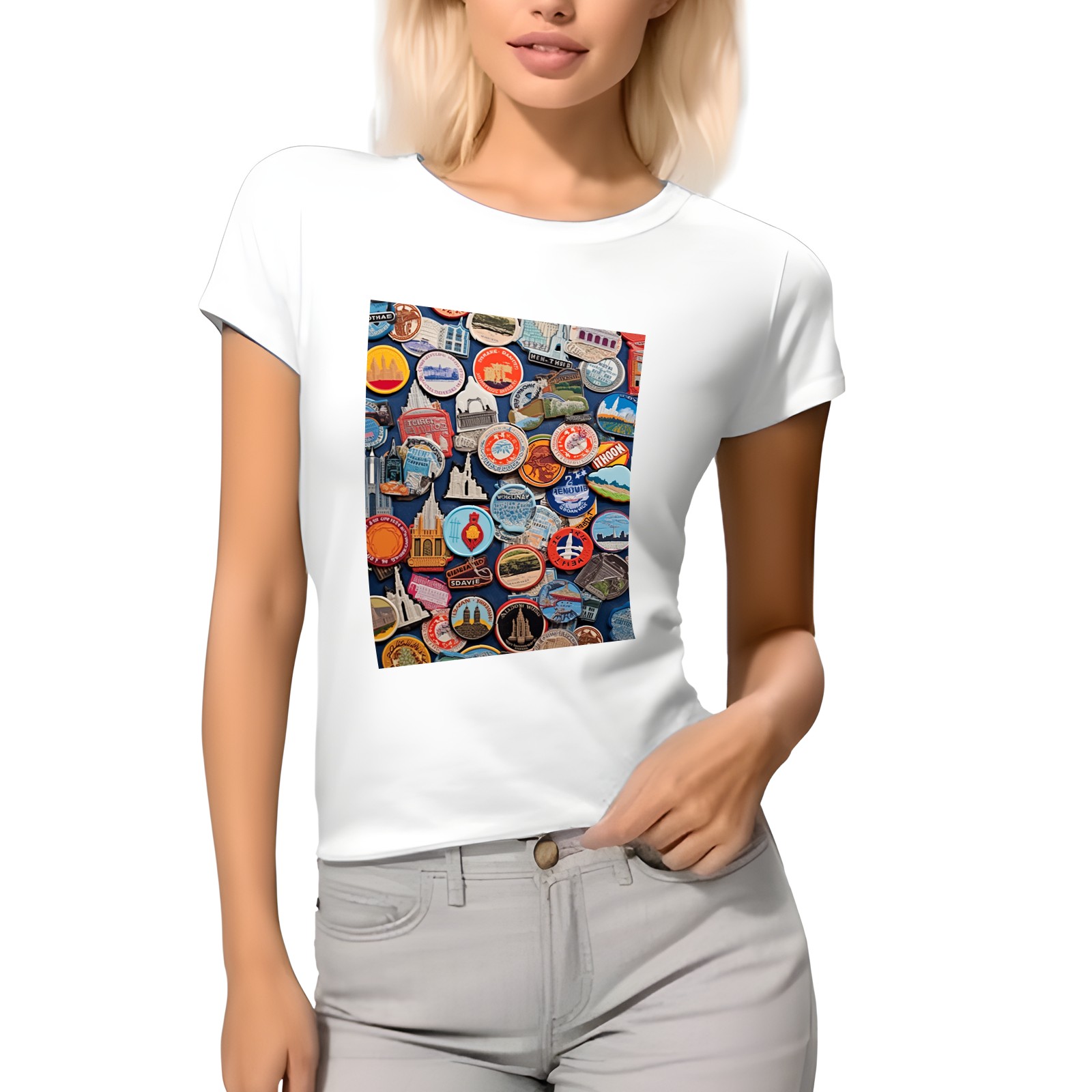 Basic Oversize Tees For WomenColorful Travel Sticker (8) Loose Boyfriend Shirts Casual Blouse round neck