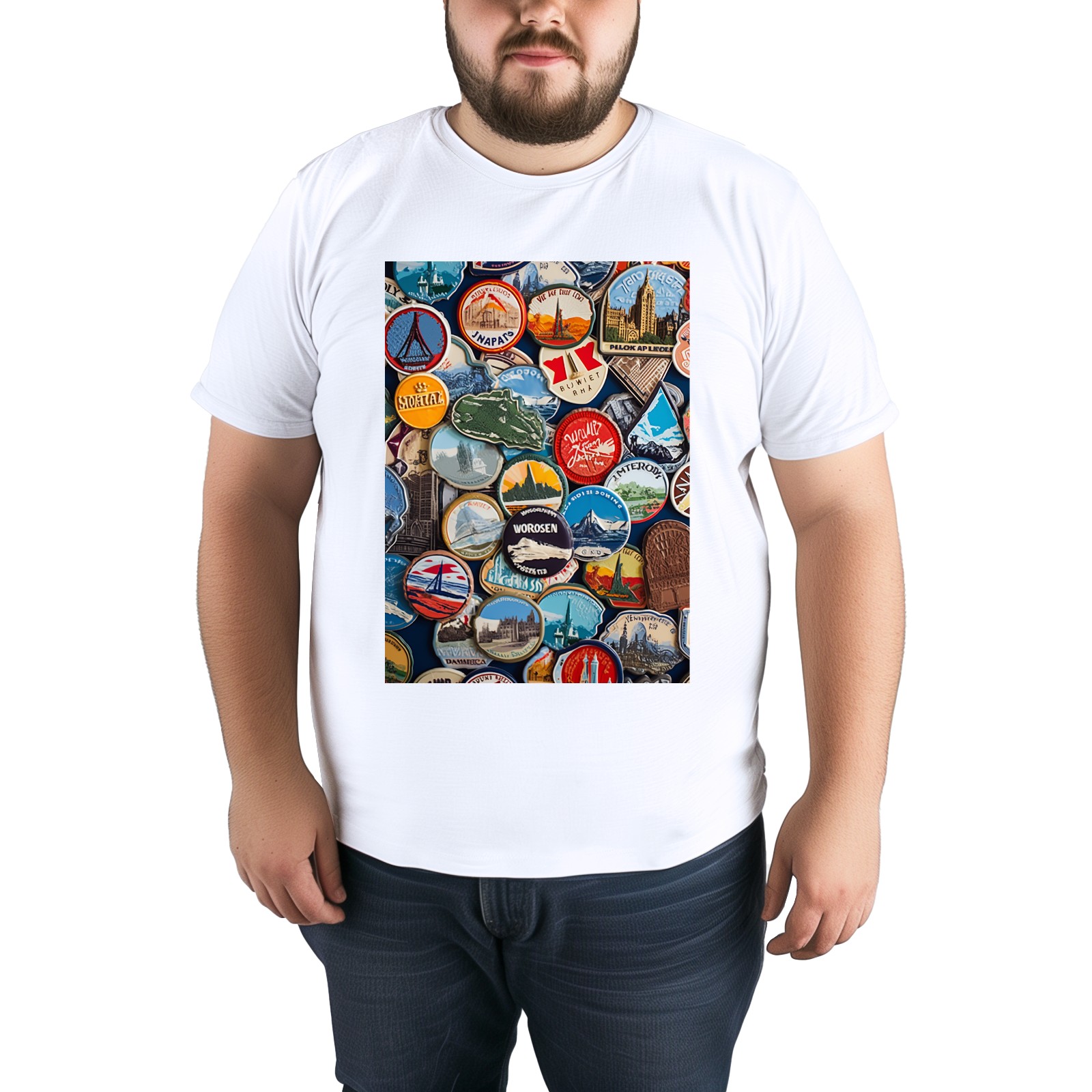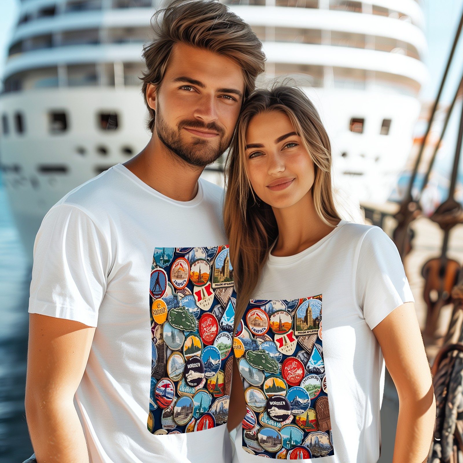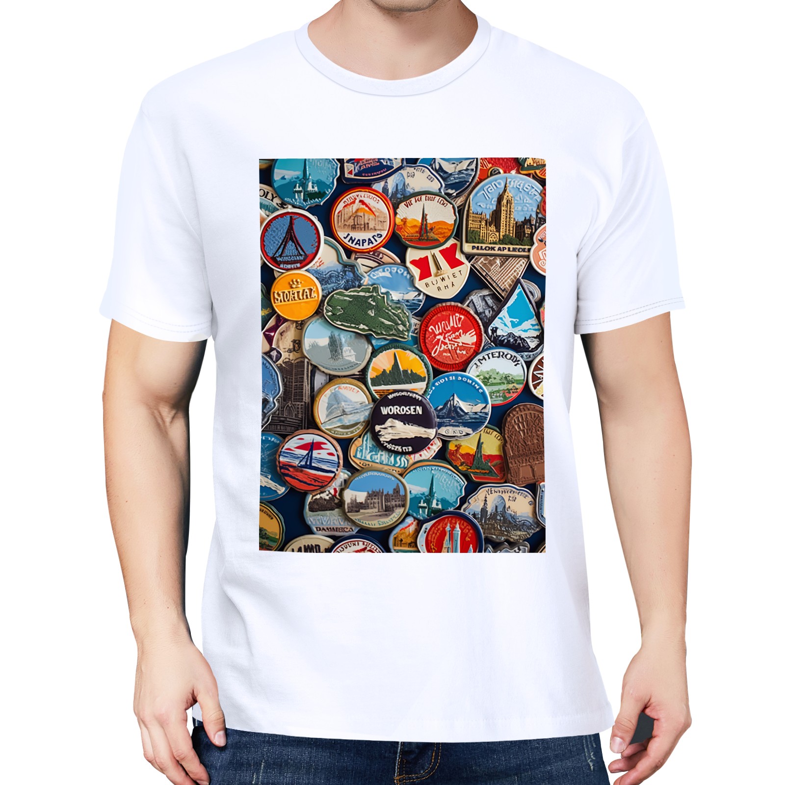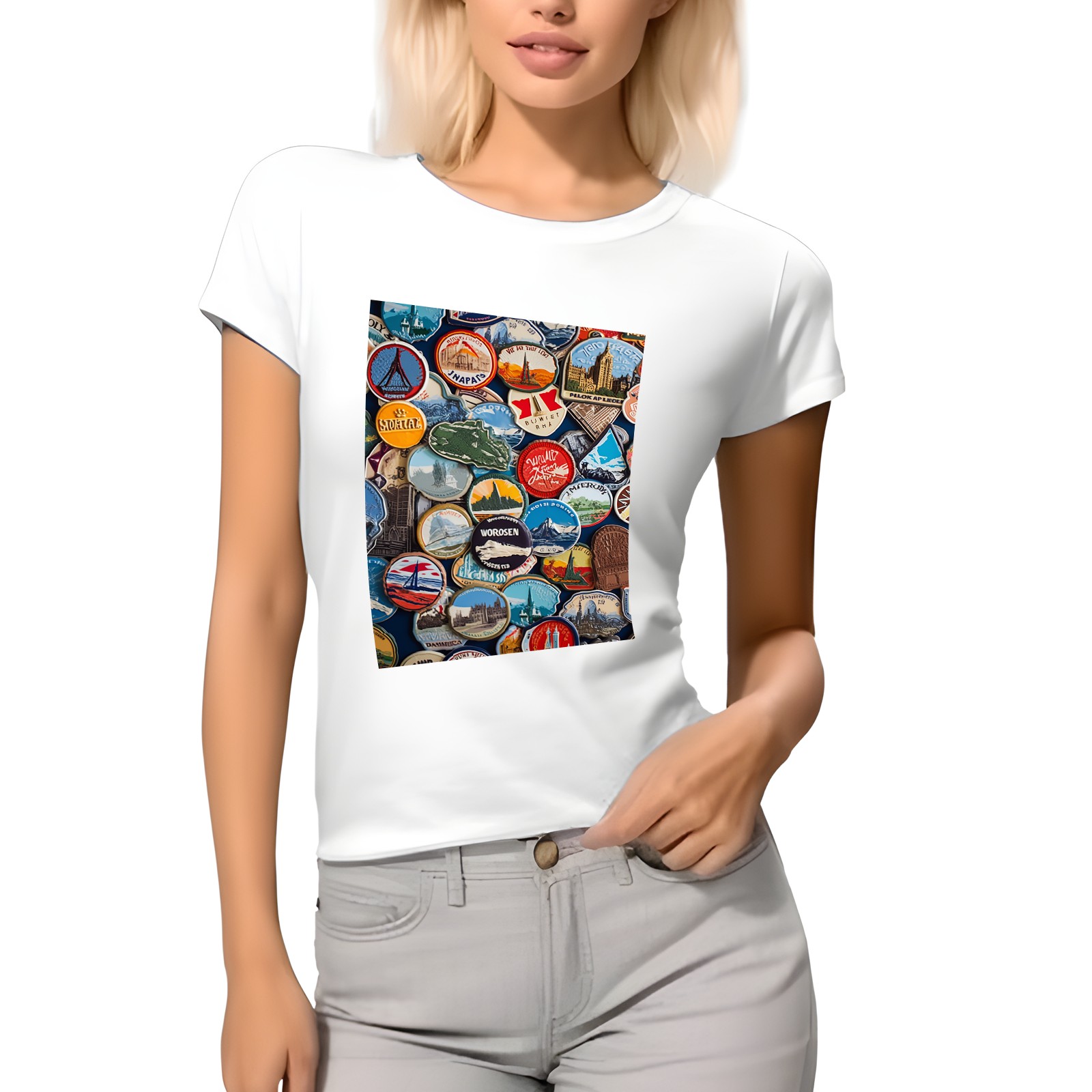 Basic Oversize Tees For WomenColorful Travel Sticker (7) Loose Boyfriend Shirts Casual Blouse round neck