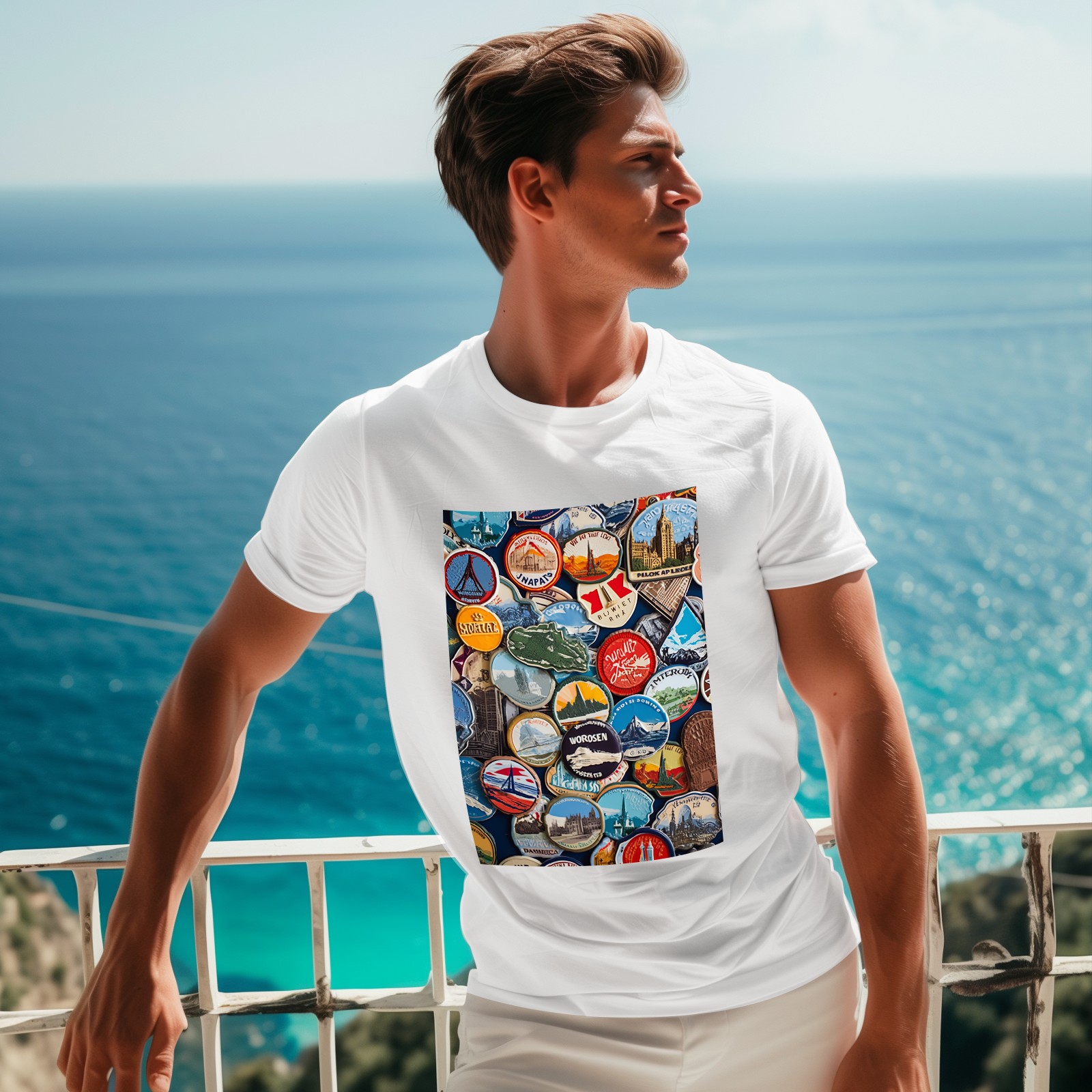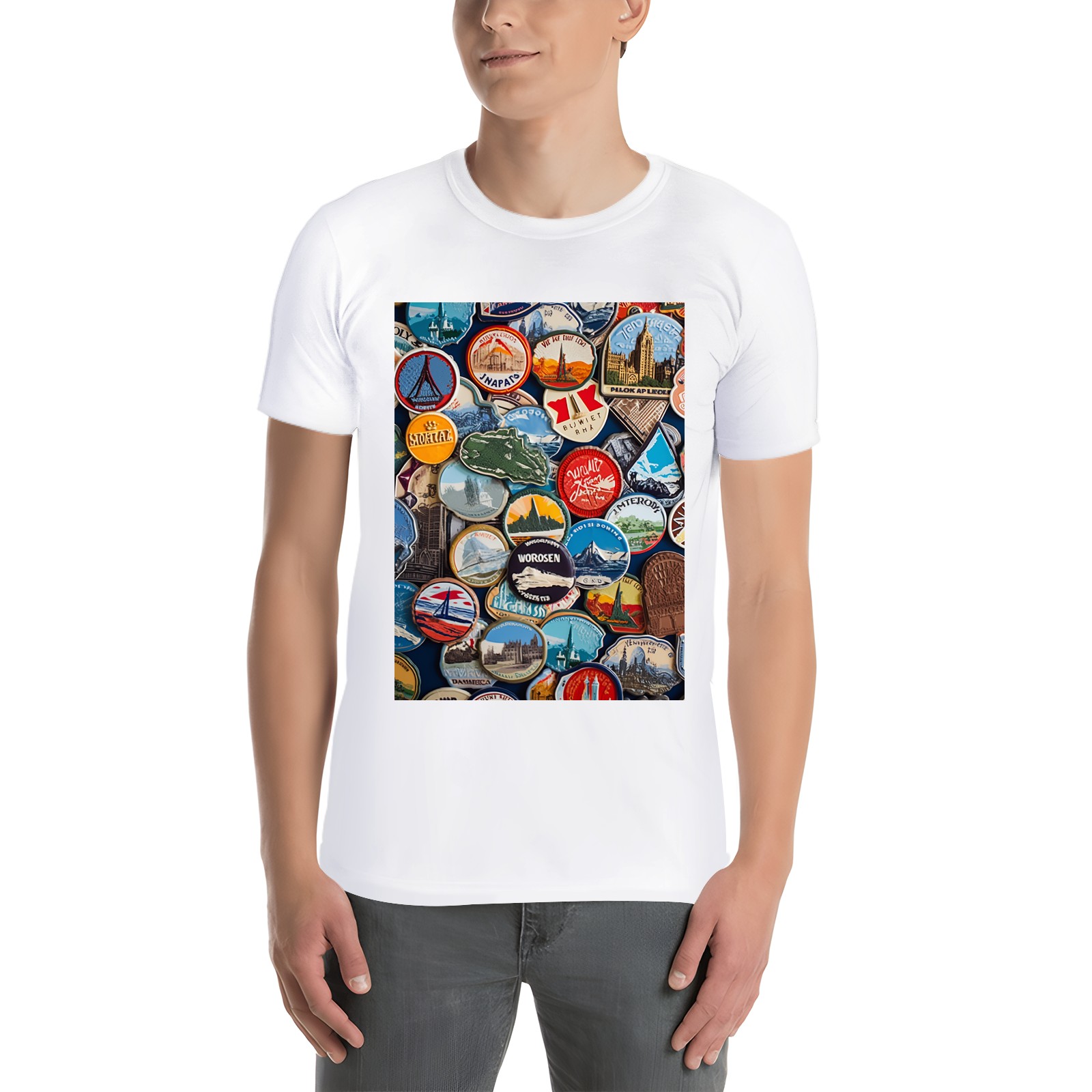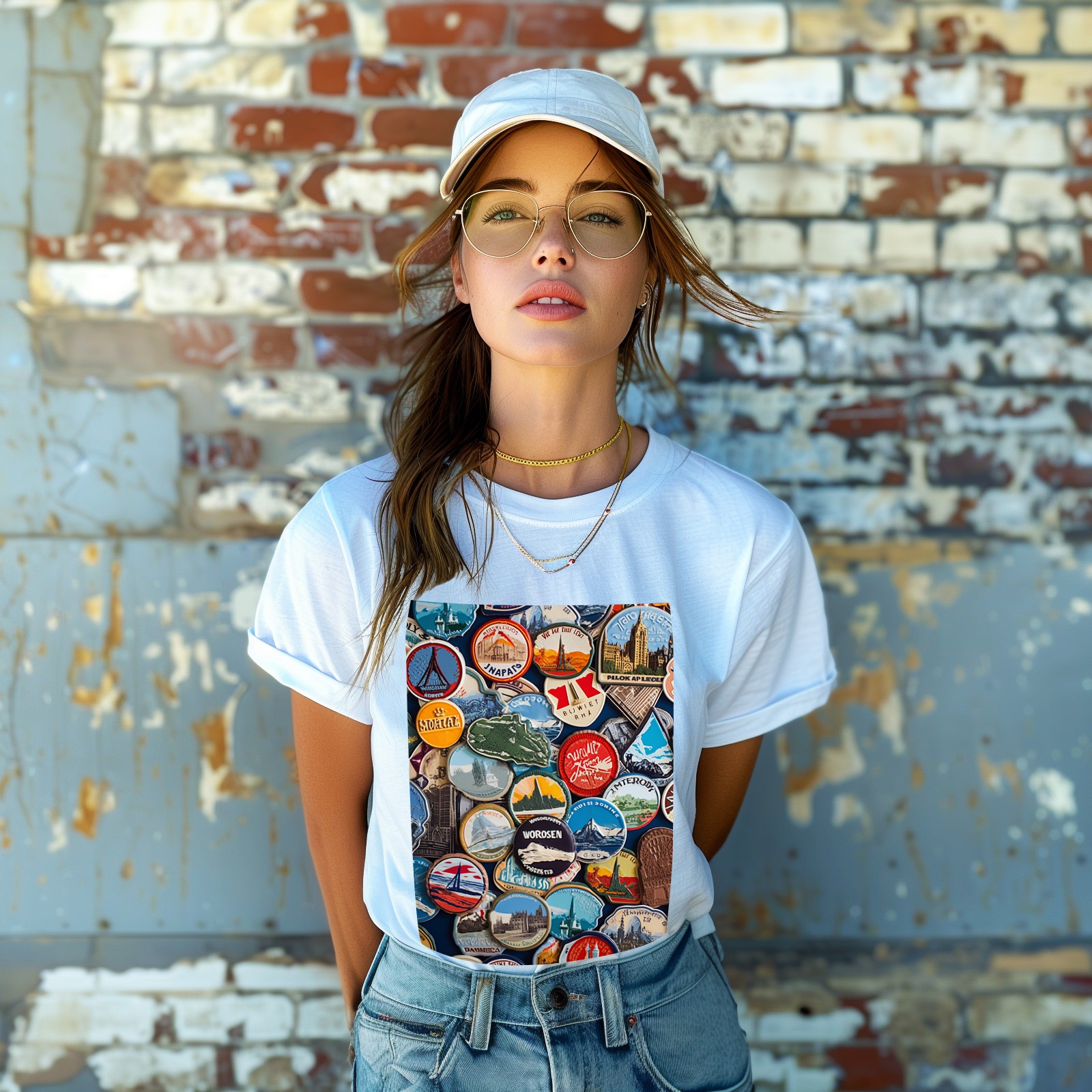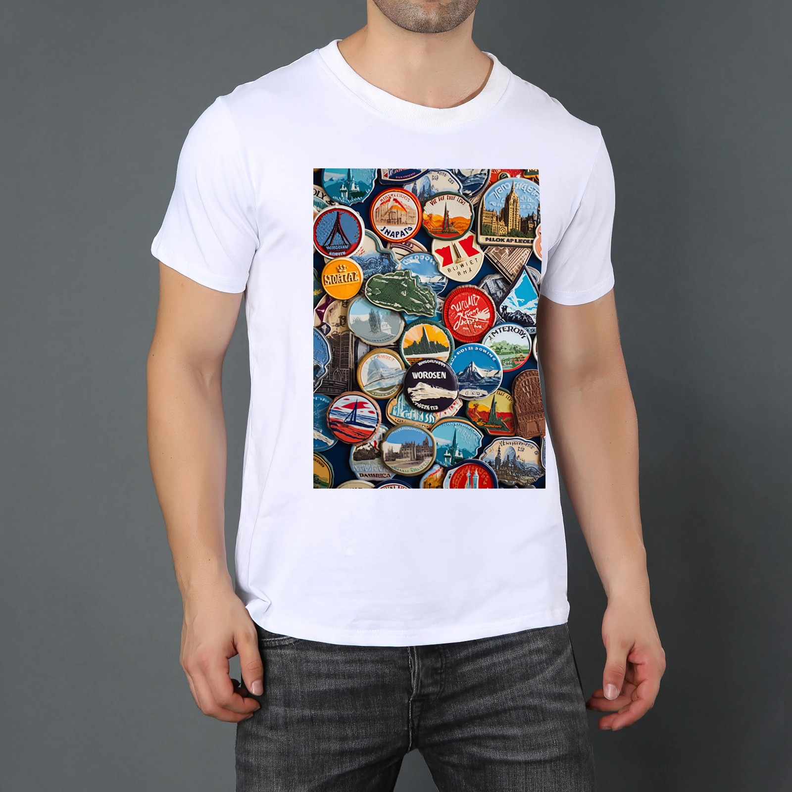 Basic Oversize Tees For WomenColorful Travel Sticker (7) Loose Boyfriend Shirts Casual Blouse round neck
