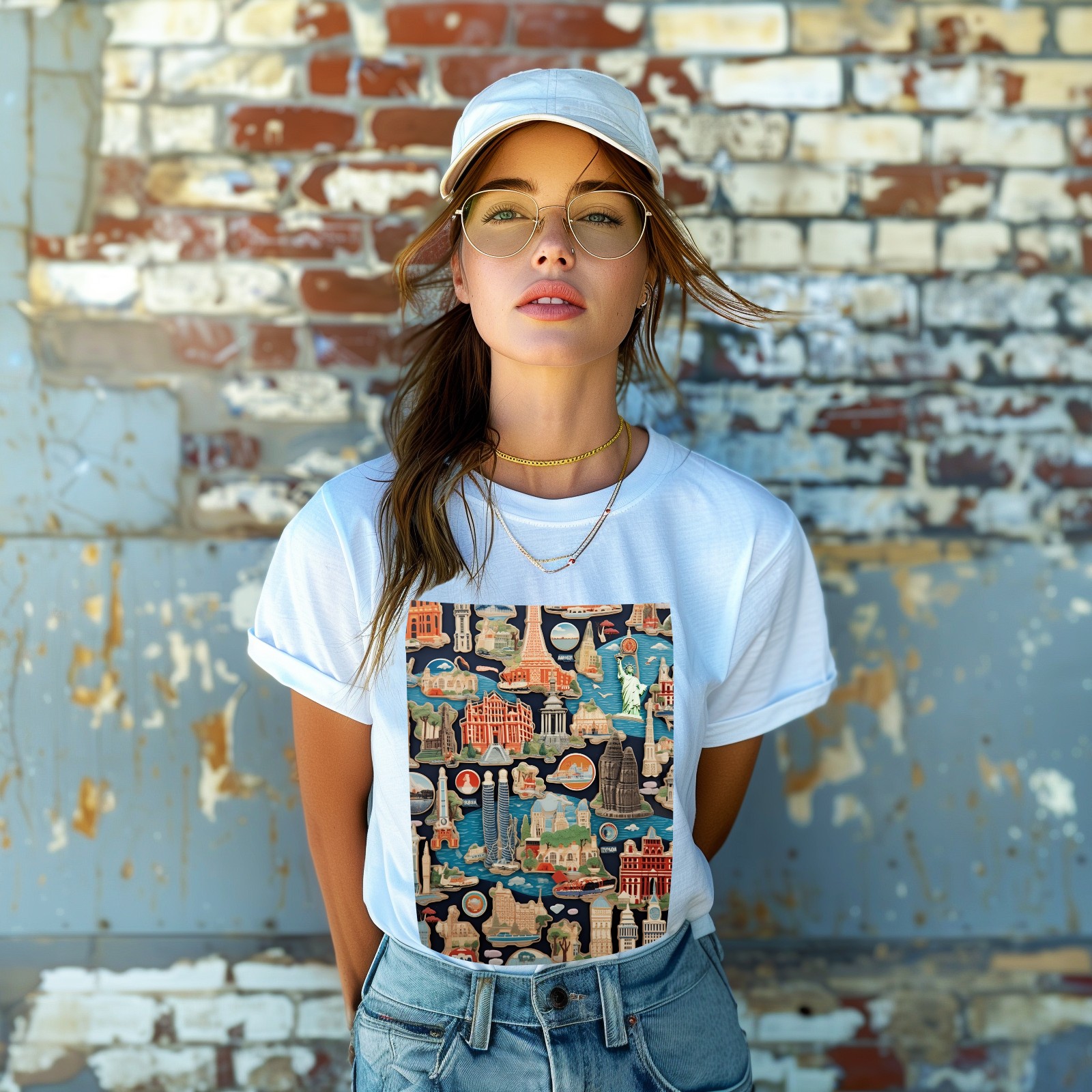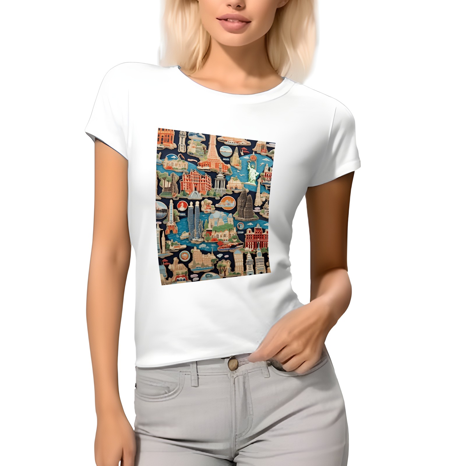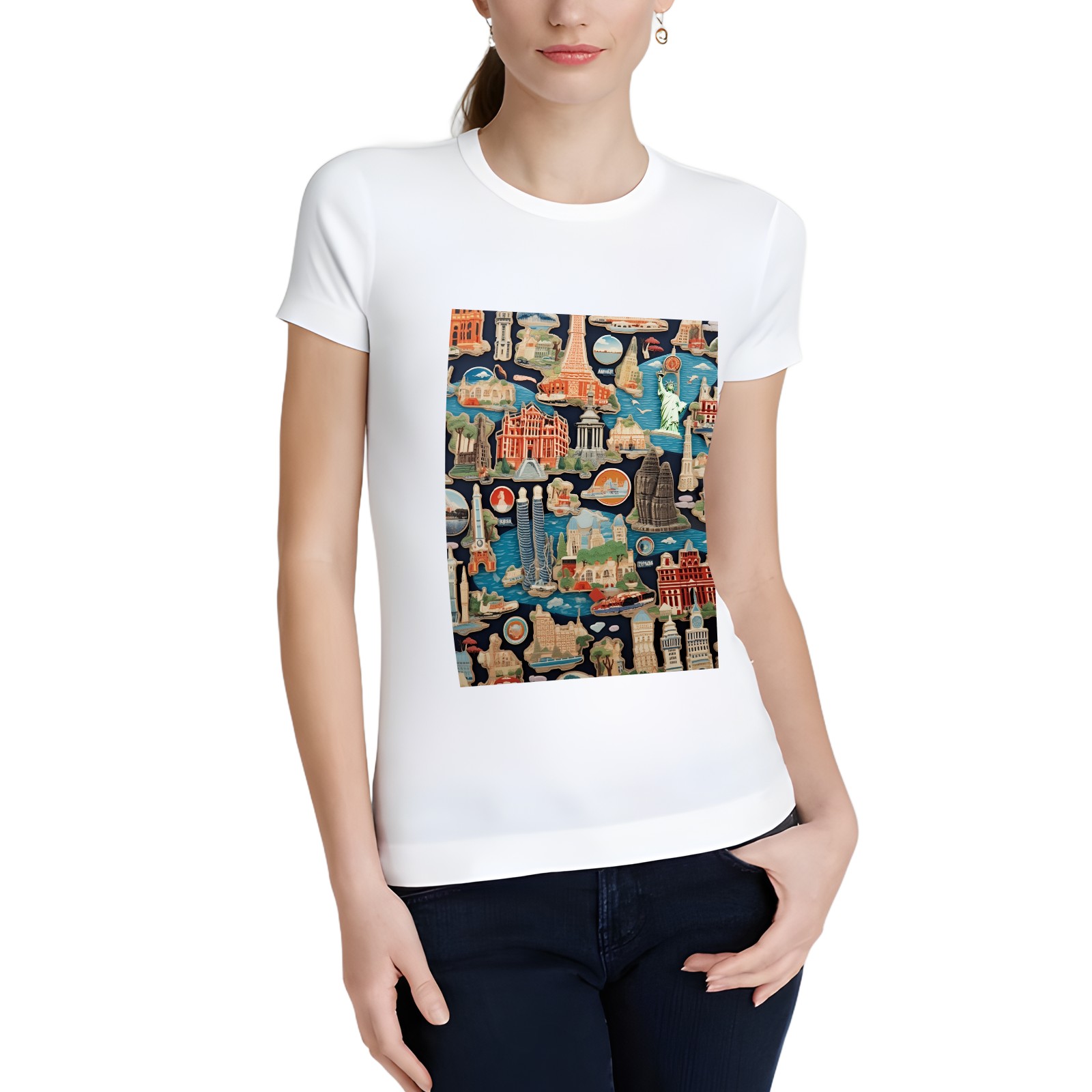 Basic Oversize Tees For WomenColorful Travel Sticker (3) Loose Boyfriend Shirts Casual Blouse round neck