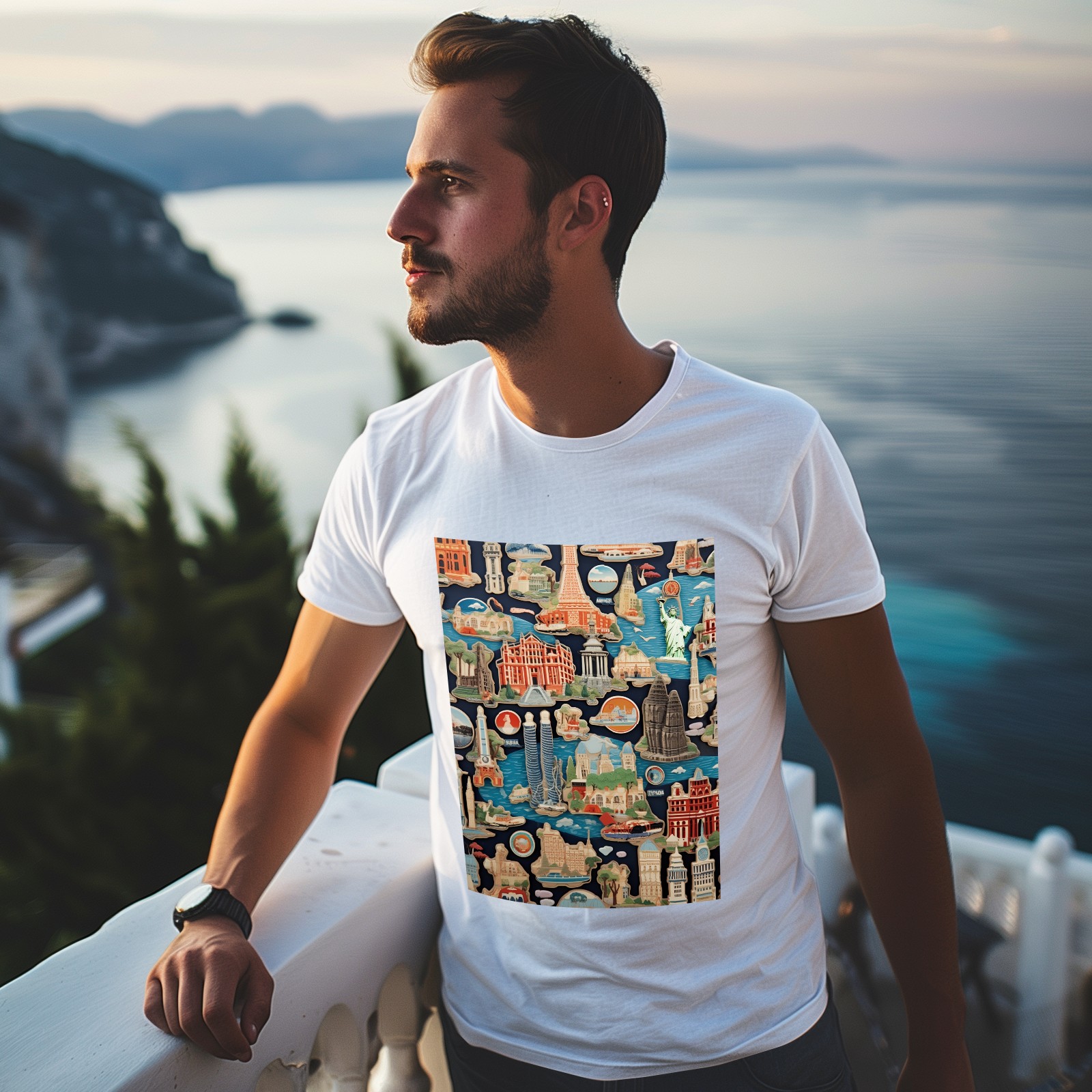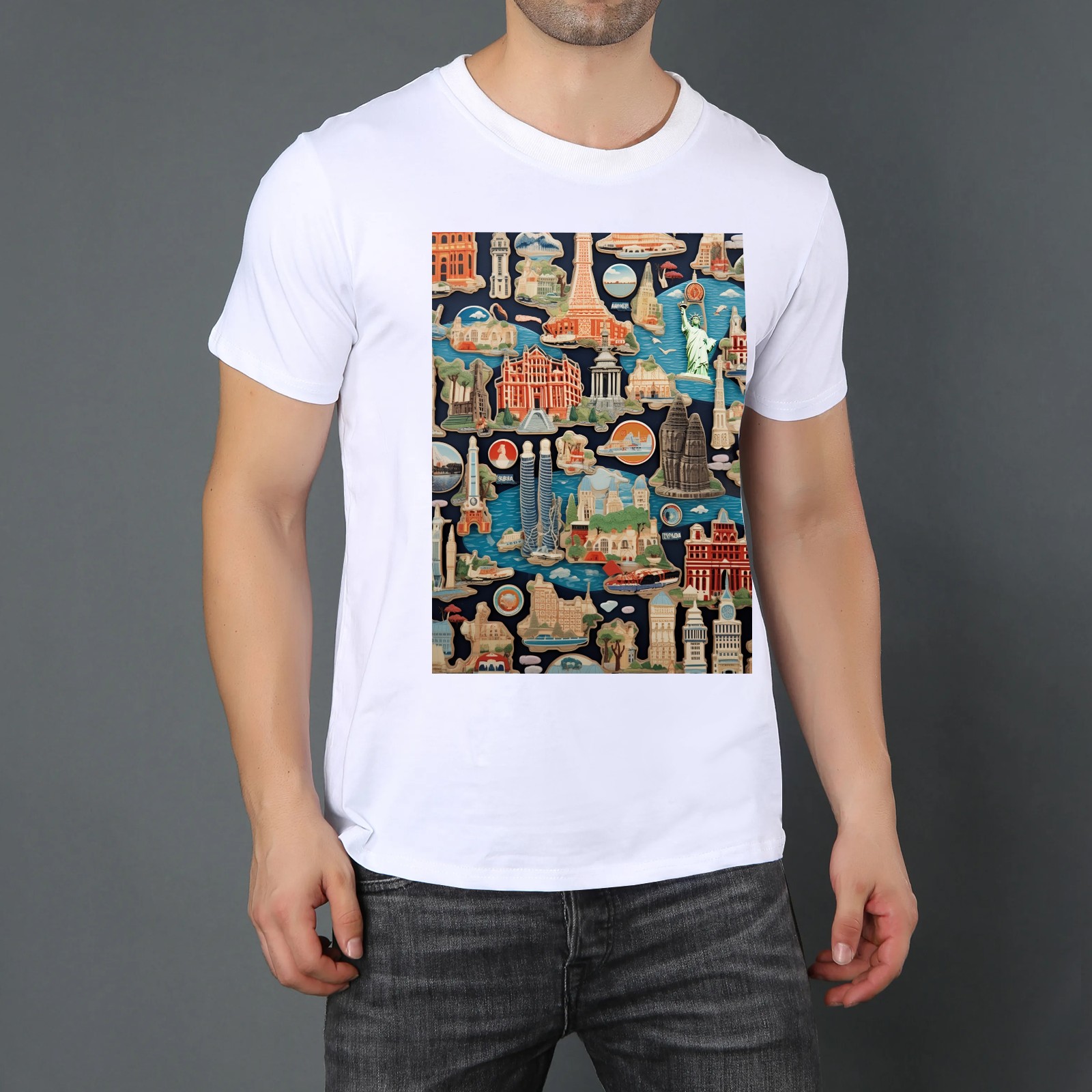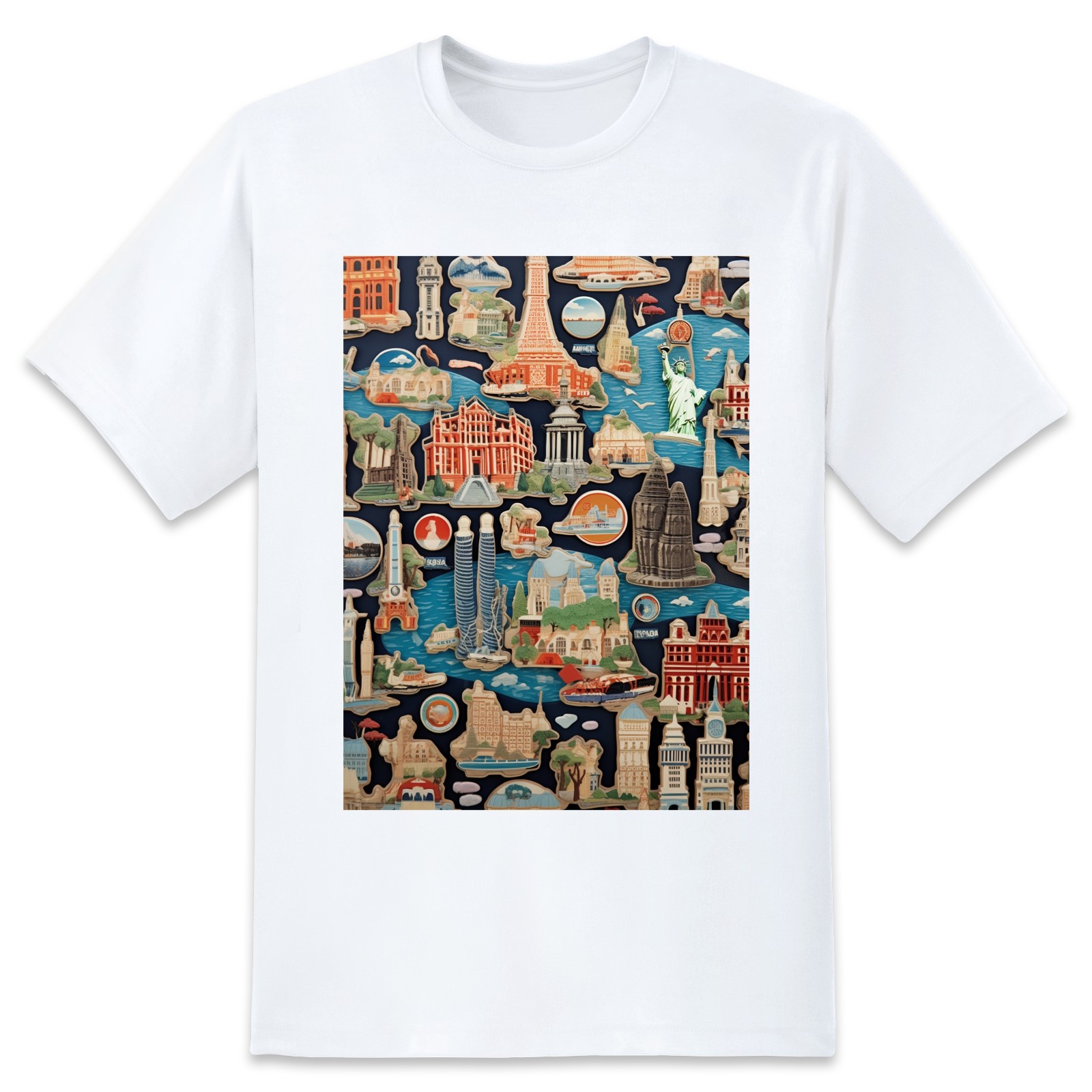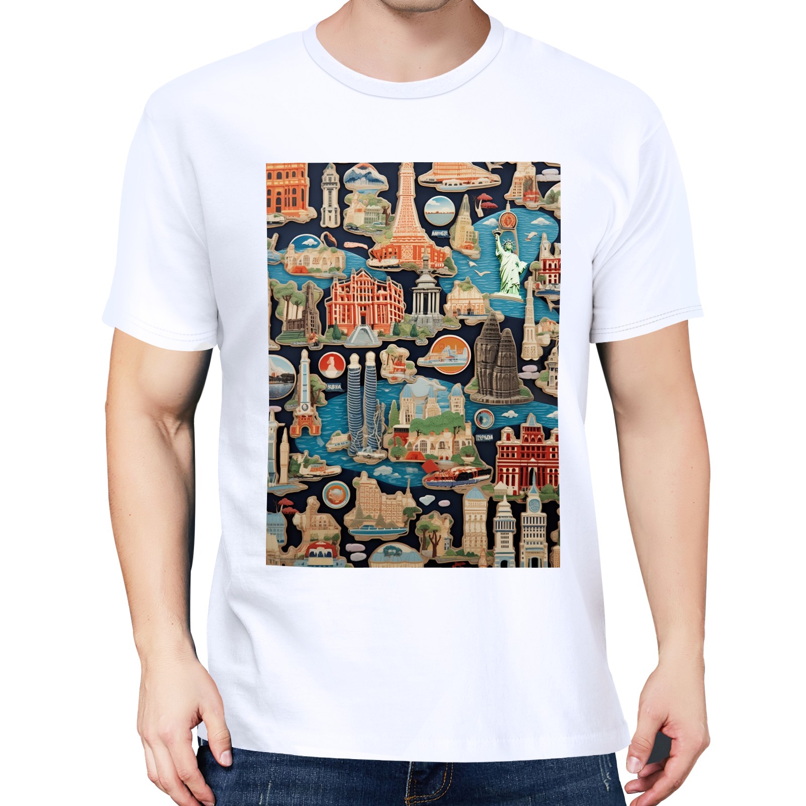 Basic Oversize Tees For WomenColorful Travel Sticker (3) Loose Boyfriend Shirts Casual Blouse round neck