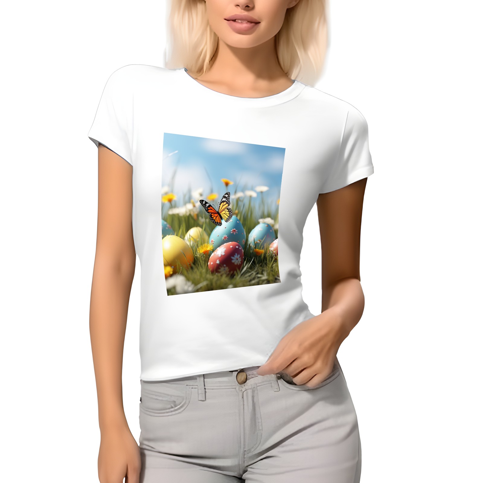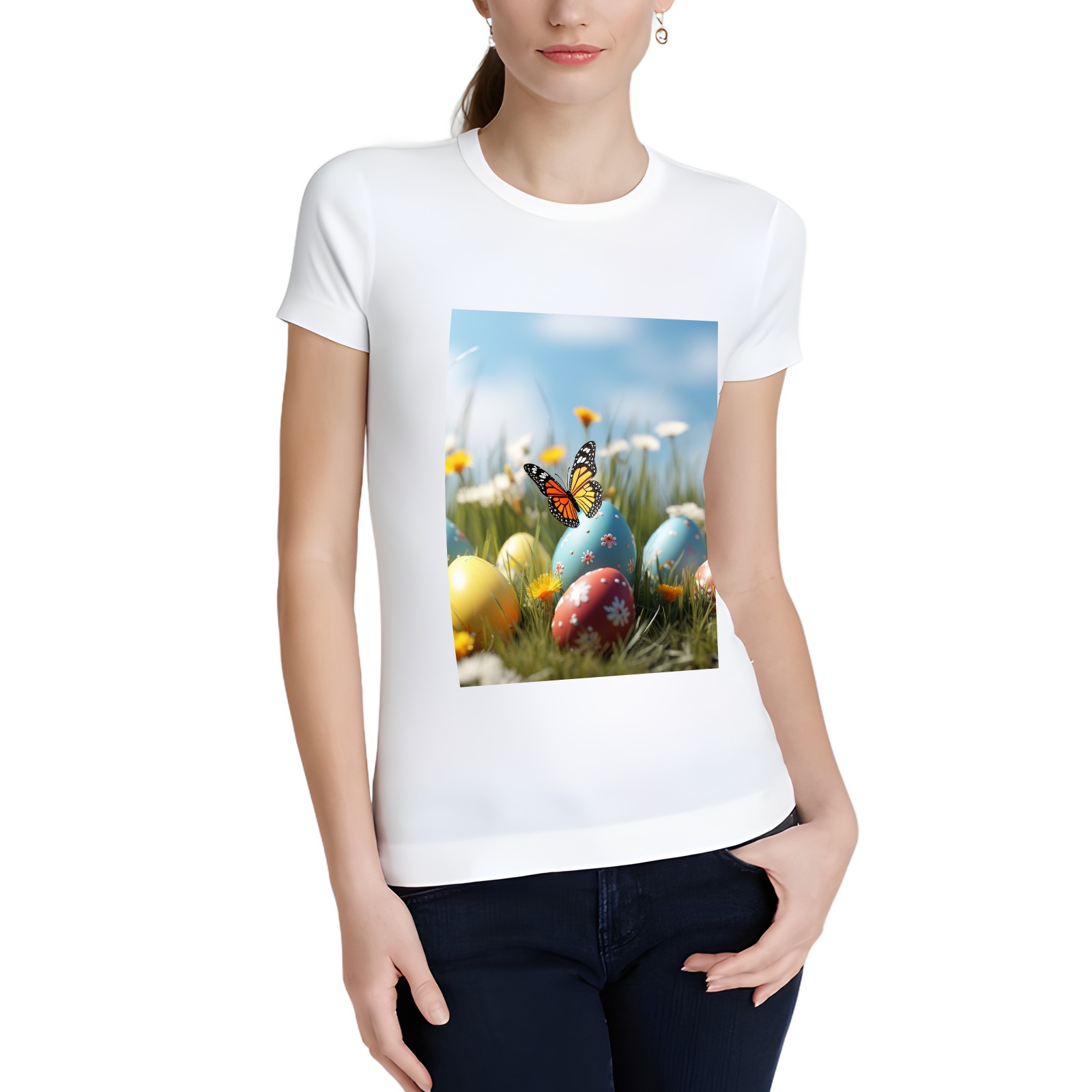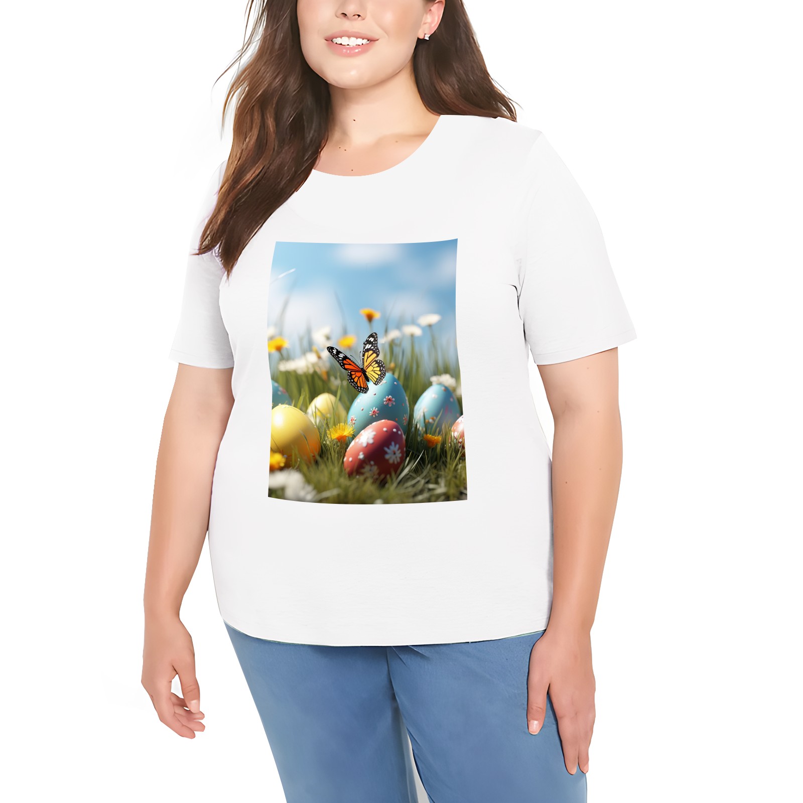 Basic Oversize Tees For WomenButterfly And Eggs (2) Loose Boyfriend Shirts Casual Blouse round neck