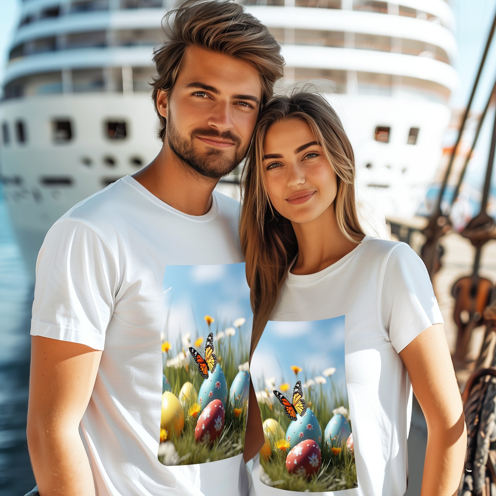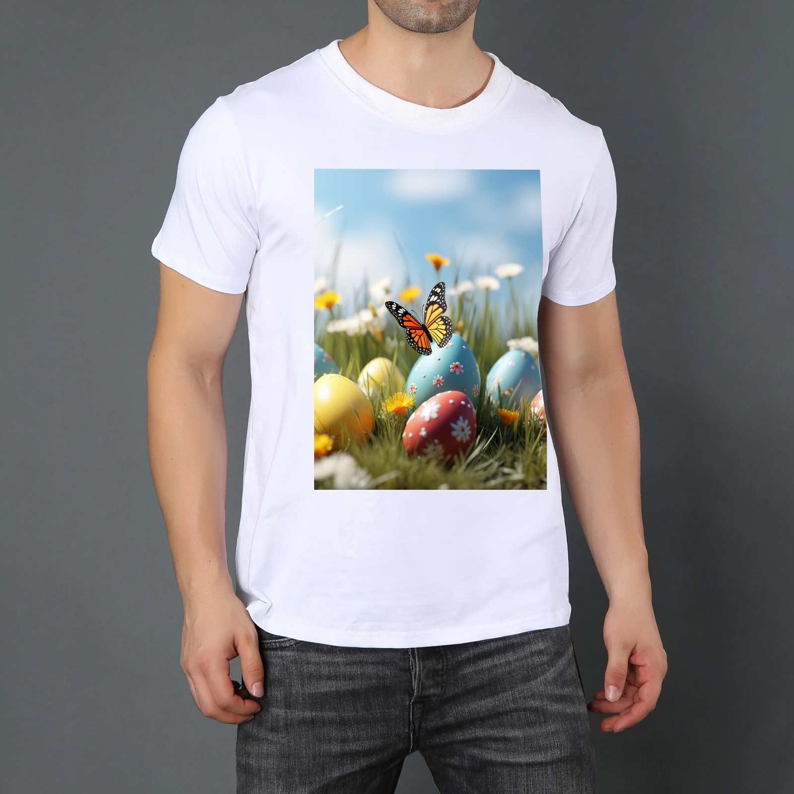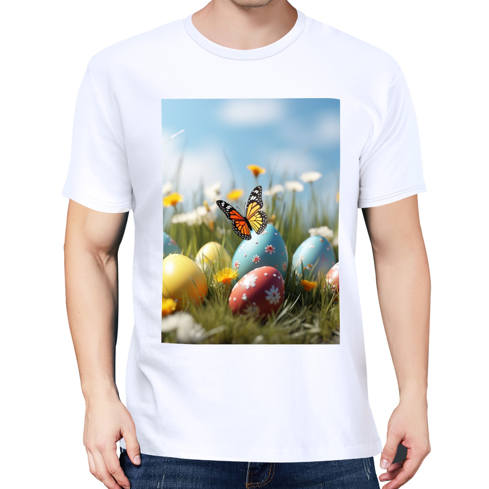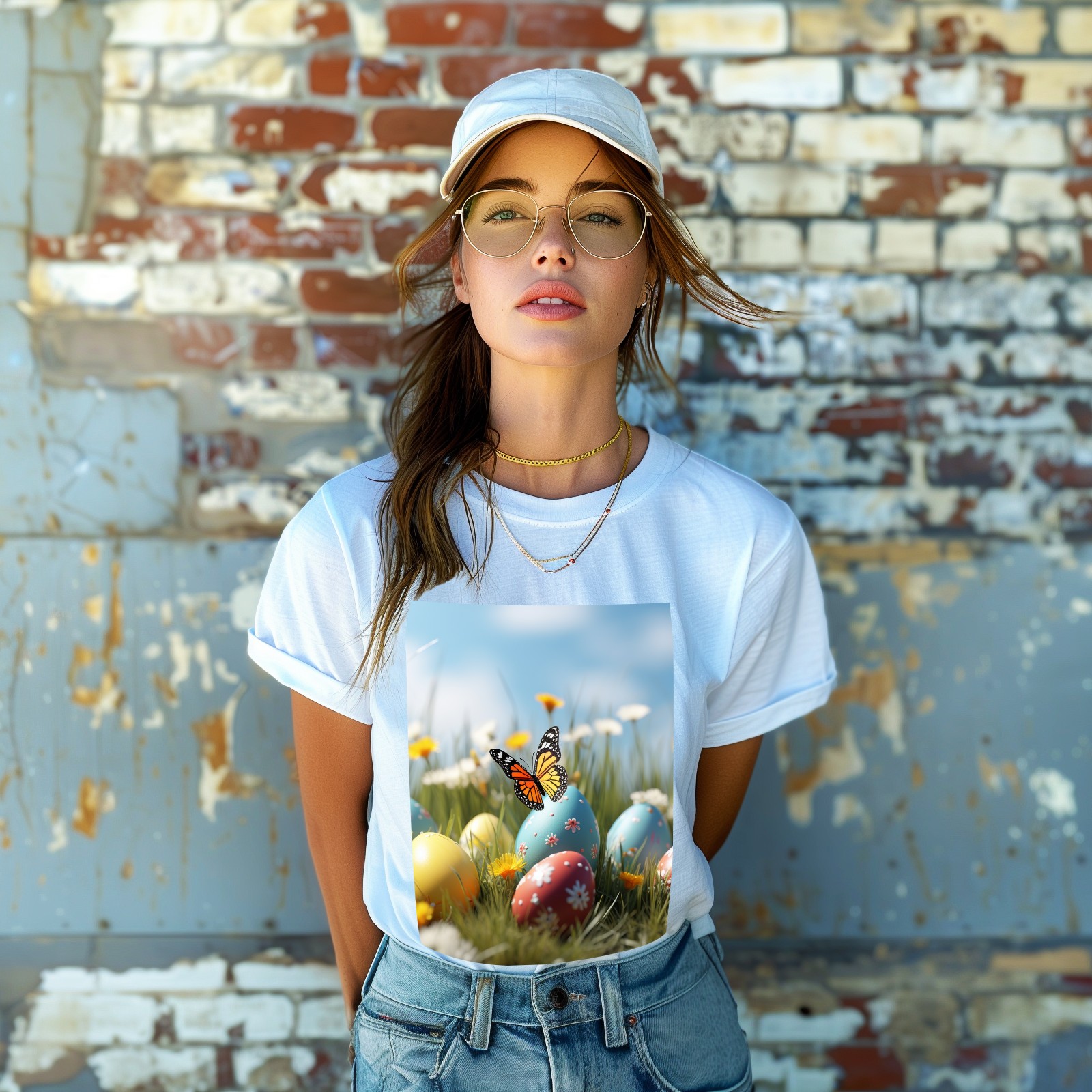 Basic Oversize Tees For WomenButterfly And Eggs (2) Loose Boyfriend Shirts Casual Blouse round neck