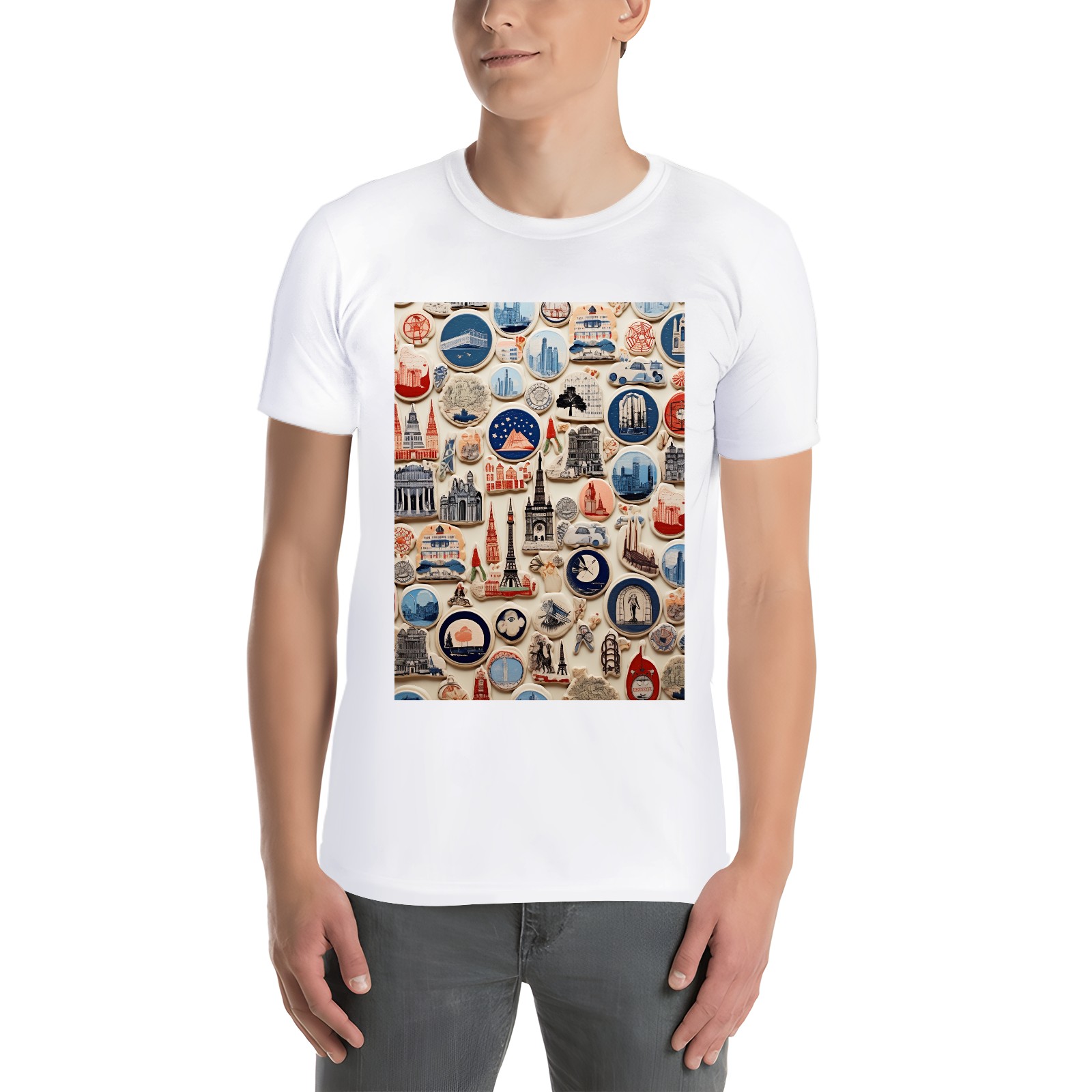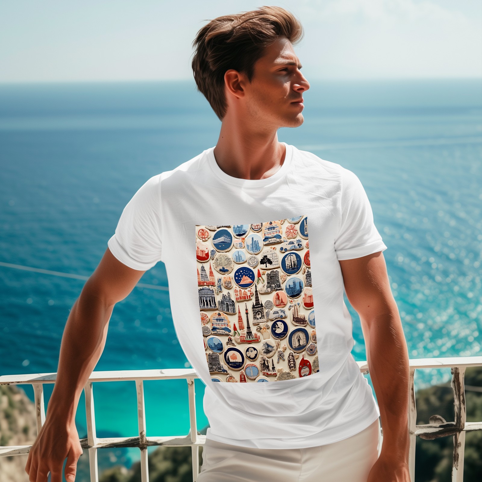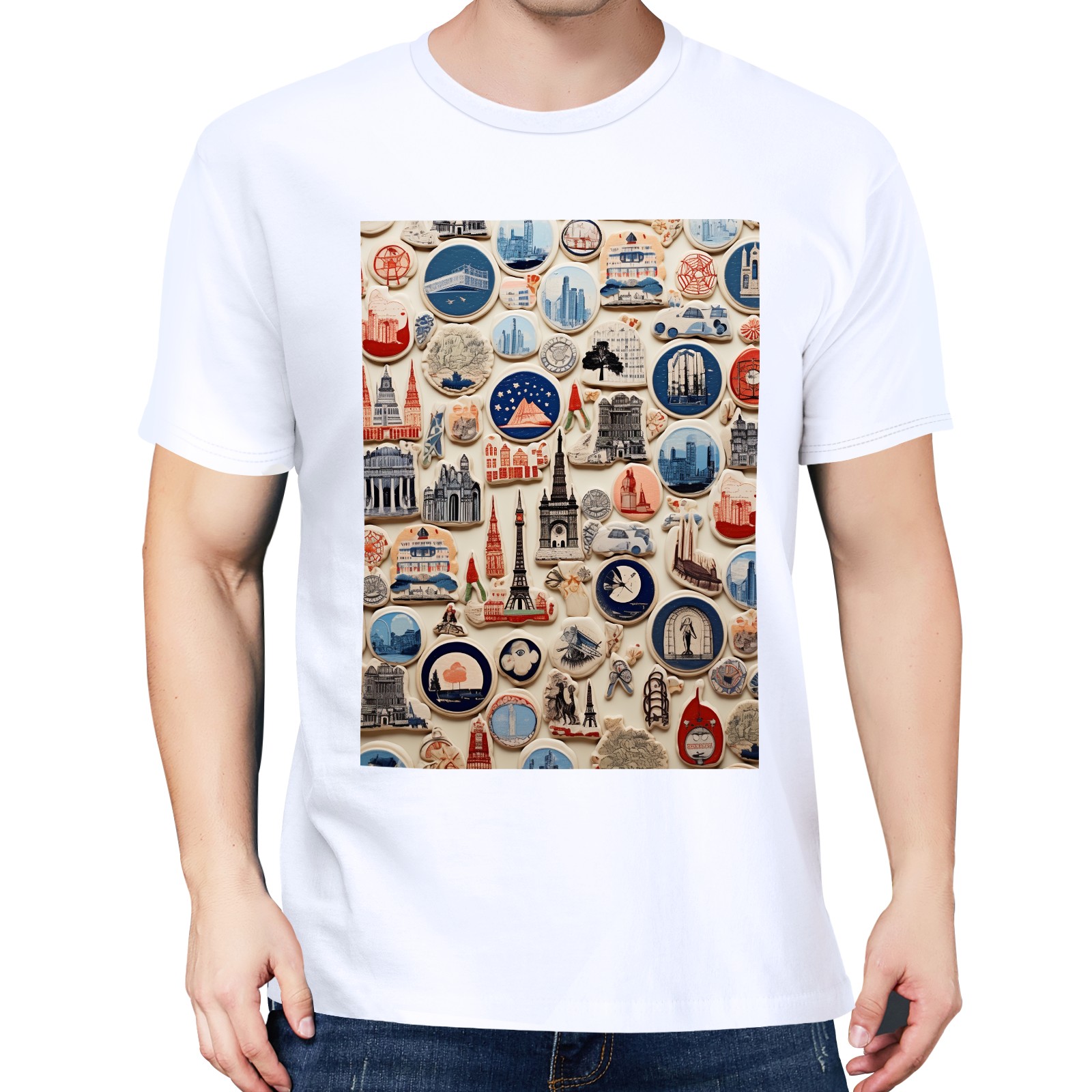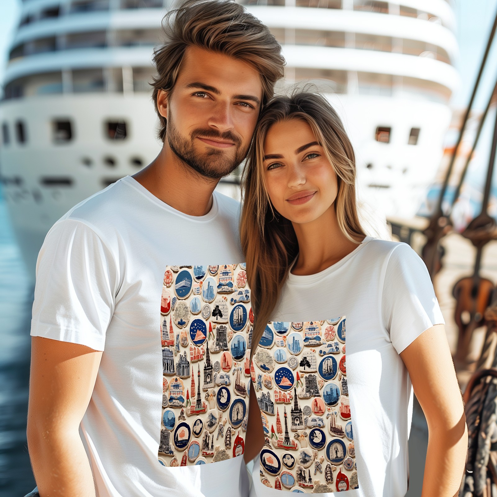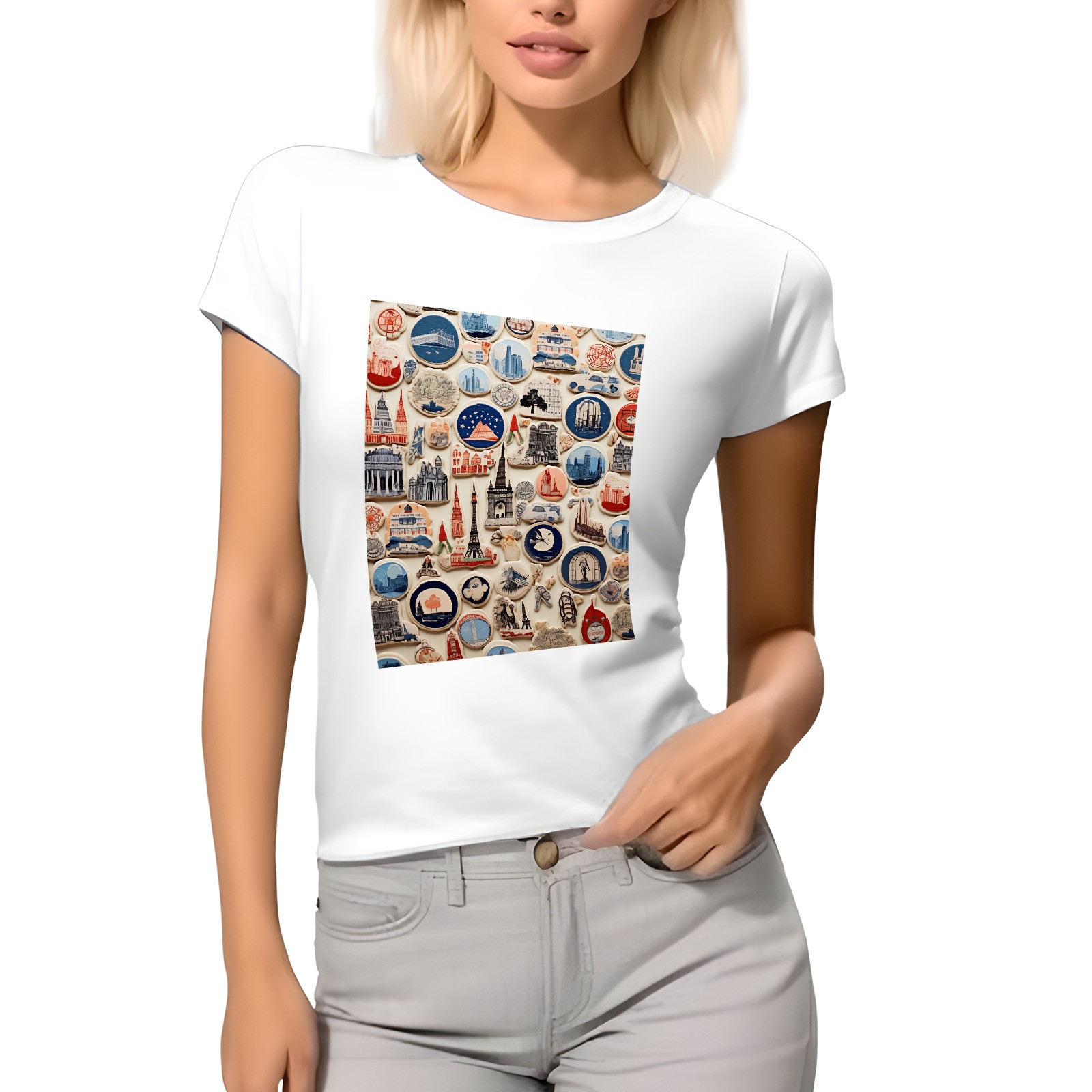 Basic Oversize Tees For WomenColorful Travel Sticker (2) Loose Boyfriend Shirts Casual Blouse round neck